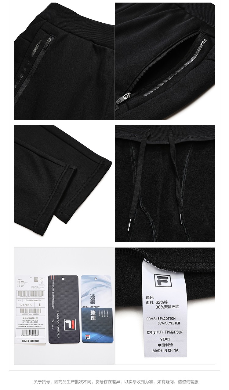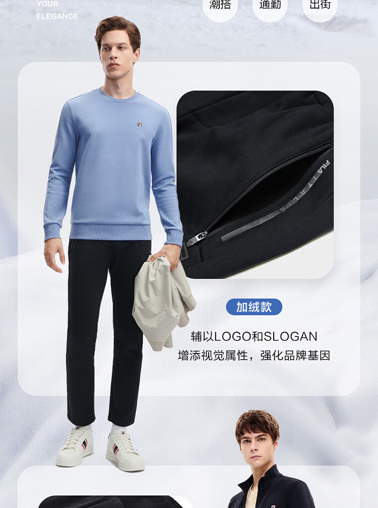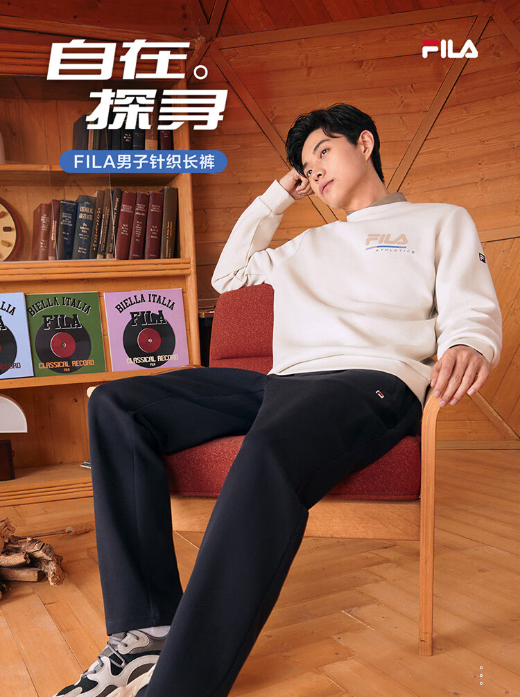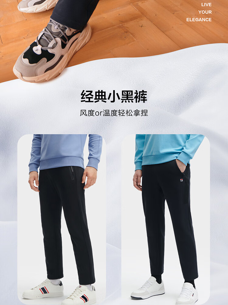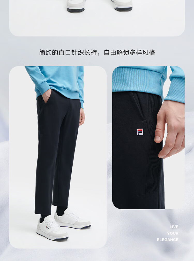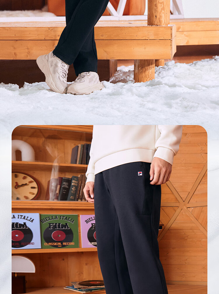 斐乐(FILA)官方冬季新款男子加绒保暖长裤针织直筒运动裤子百搭通勤休闲长裤 【加绒版】正黑色-BK L 175/84A