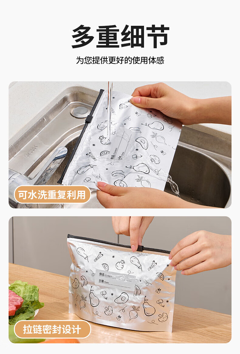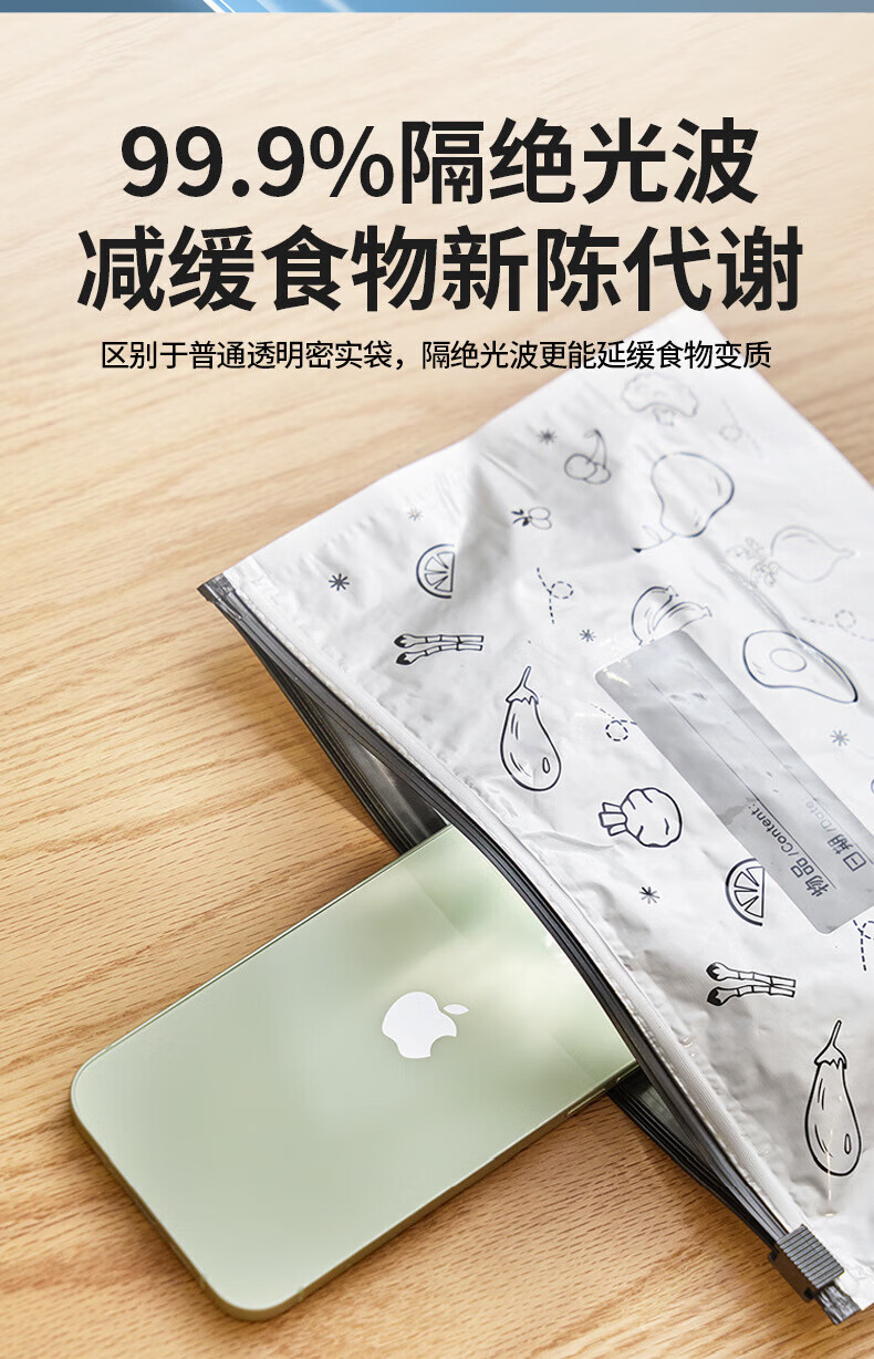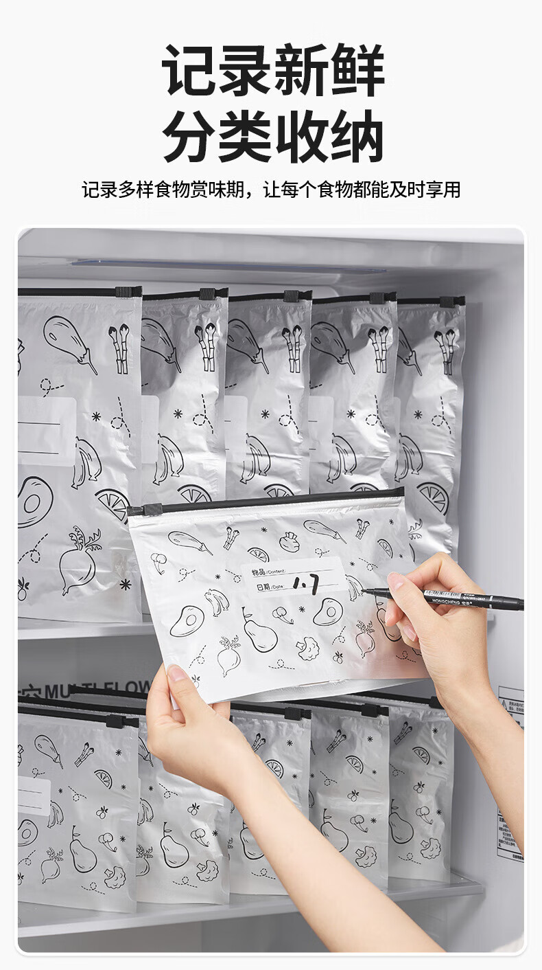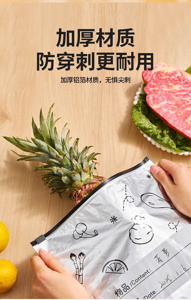 登比保鲜袋密封袋食品级拉链式封口铝膜密实袋冰箱冷冻专用收纳袋中号