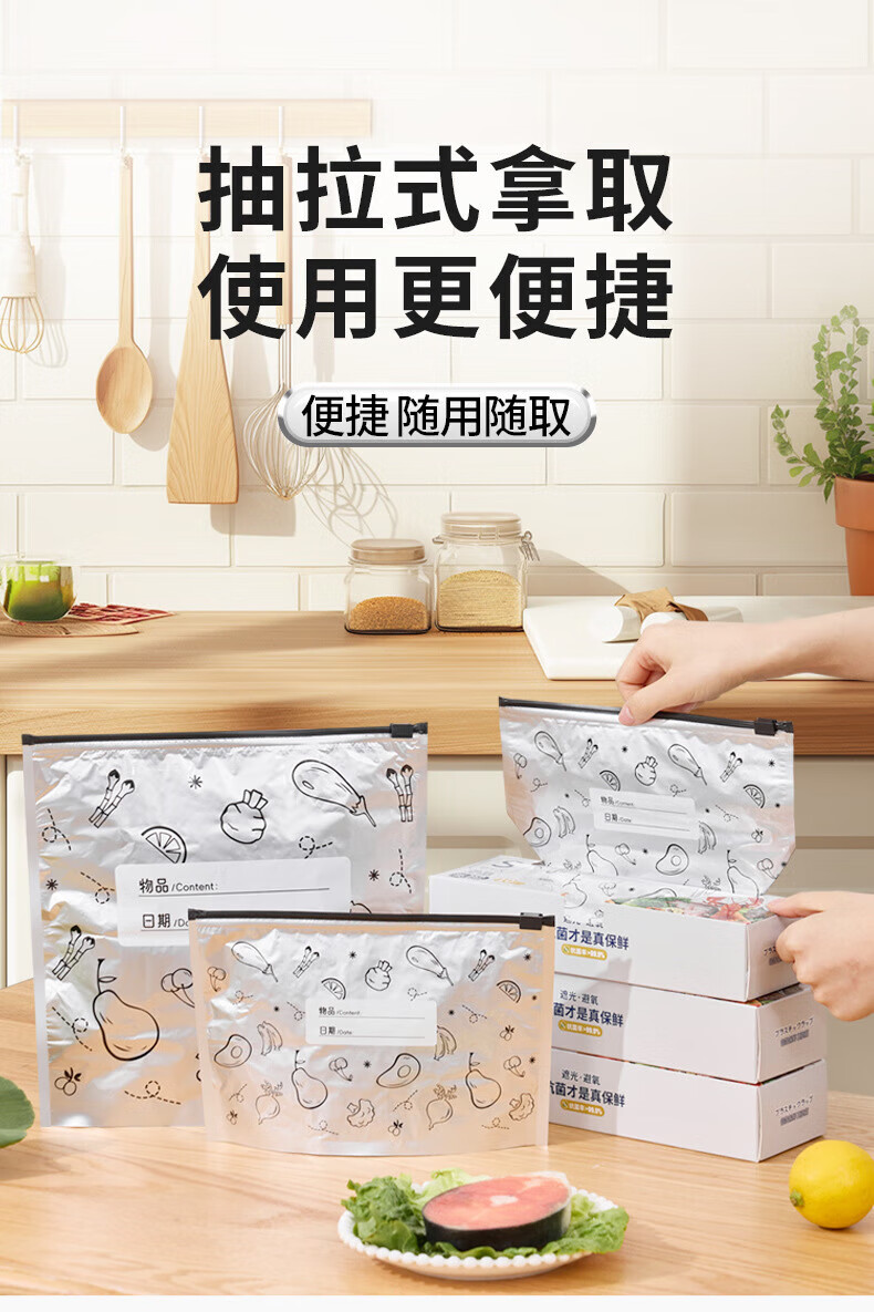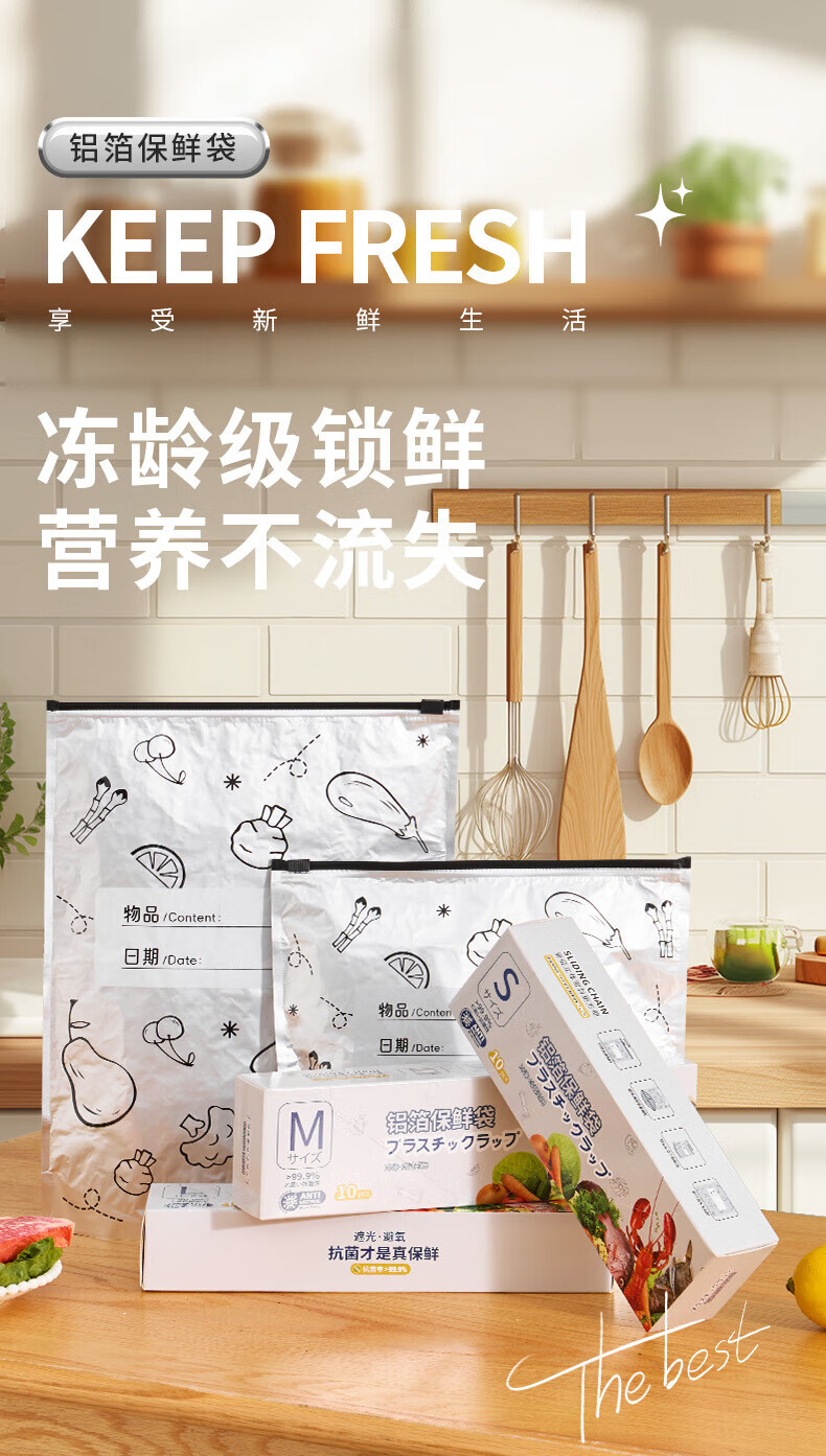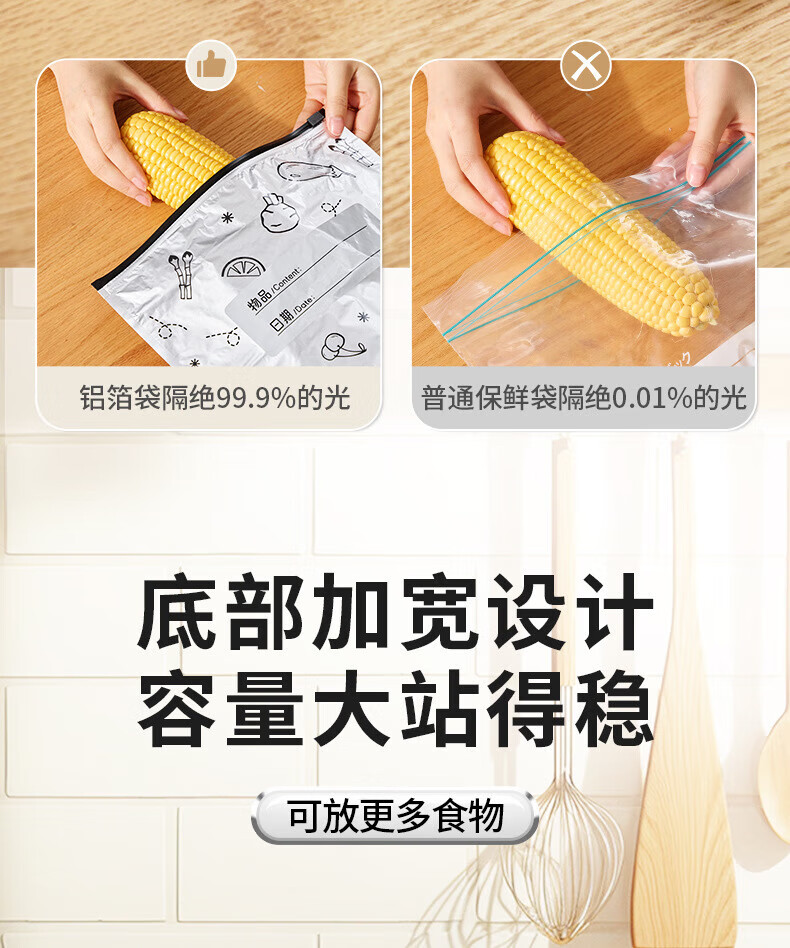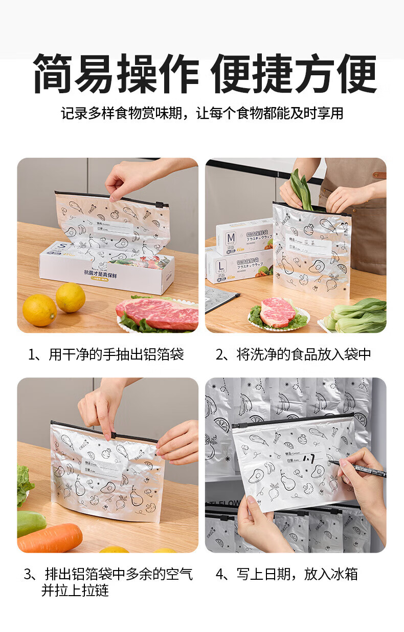 登比保鲜袋密封袋食品级拉链式封口铝膜密实袋冰箱冷冻专用收纳袋中号