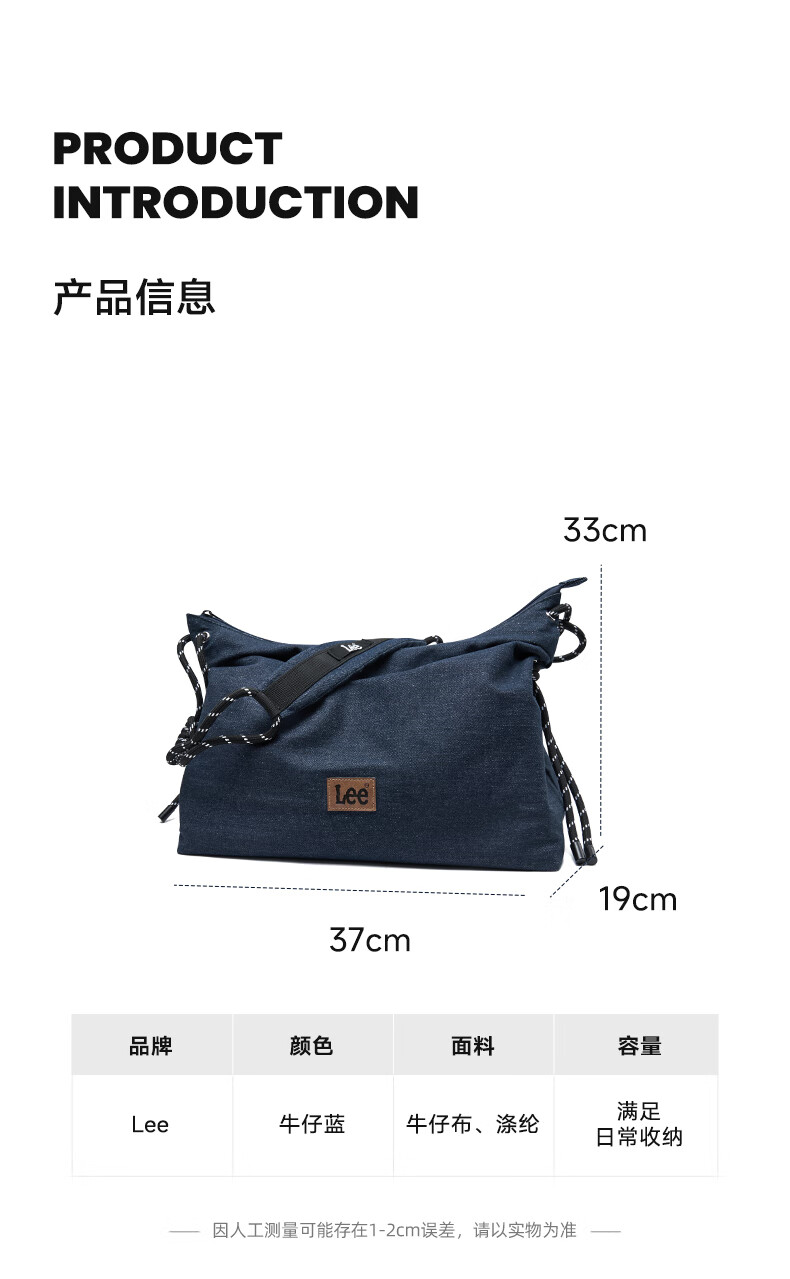 Lee单肩包女大容量潮牌斜挎包男上班通勤吐司包户外休闲邮差包