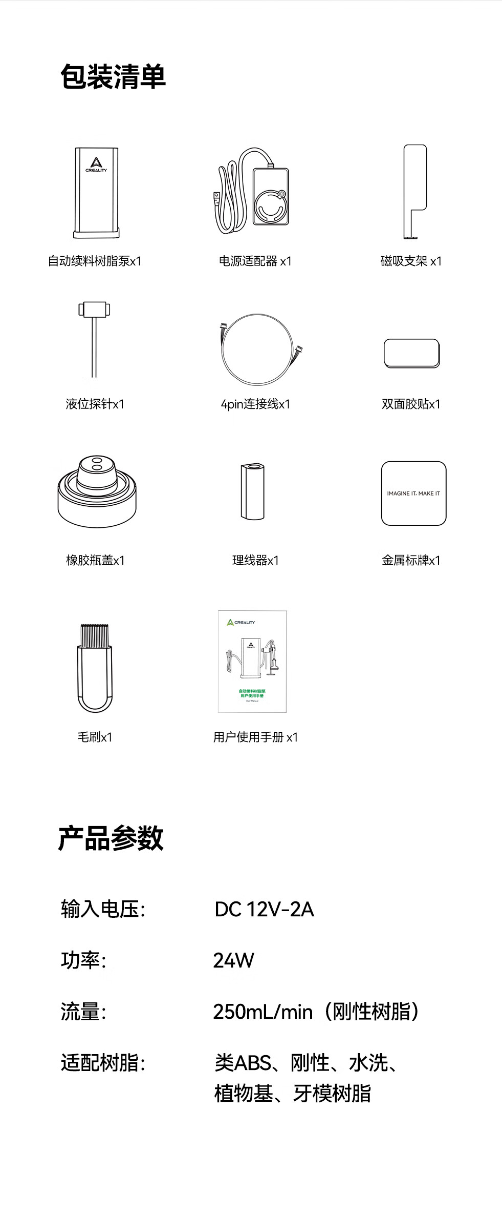 创想三维(Creality 3D)自动续料树脂泵(不适用于使用料槽倾斜剥离技术的光固化打印机)高效补料,干净退料 智能树脂补充 自动续料树脂泵 美规
