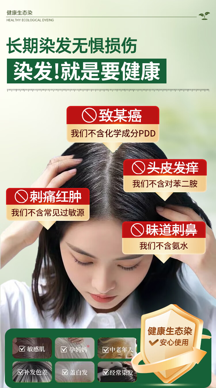 明字堂染发膏纯天然植物无刺激不沾头皮孕妇可用染发剂盖白头发黑茶色