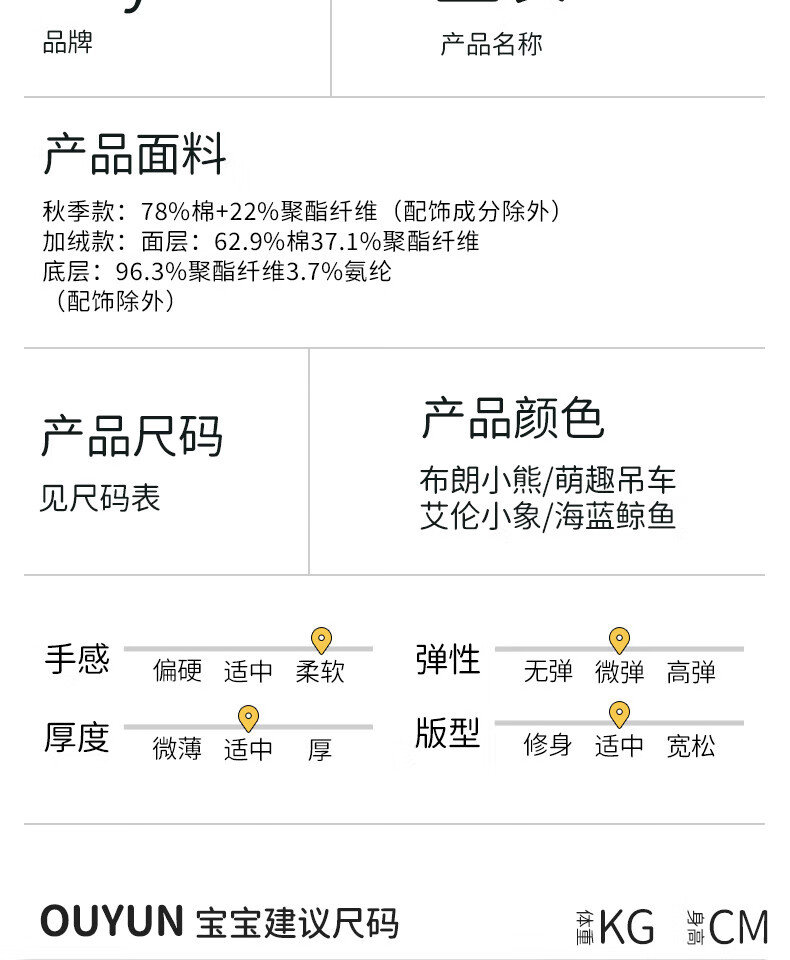欧孕(OUYUN)儿童卫衣春秋款2025年新款儿童秋装男孩宝宝冬季衣服 布朗小熊 (加绒款卫衣) 80cm