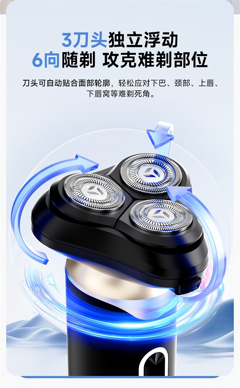 映趣电动剃须刀男士刮胡刀充电便携式三刀头轻便旋转式礼物胡须刀迷你生日送爸爸男友老公长辈须刨实用 黑金 普通装