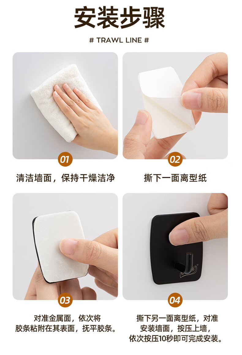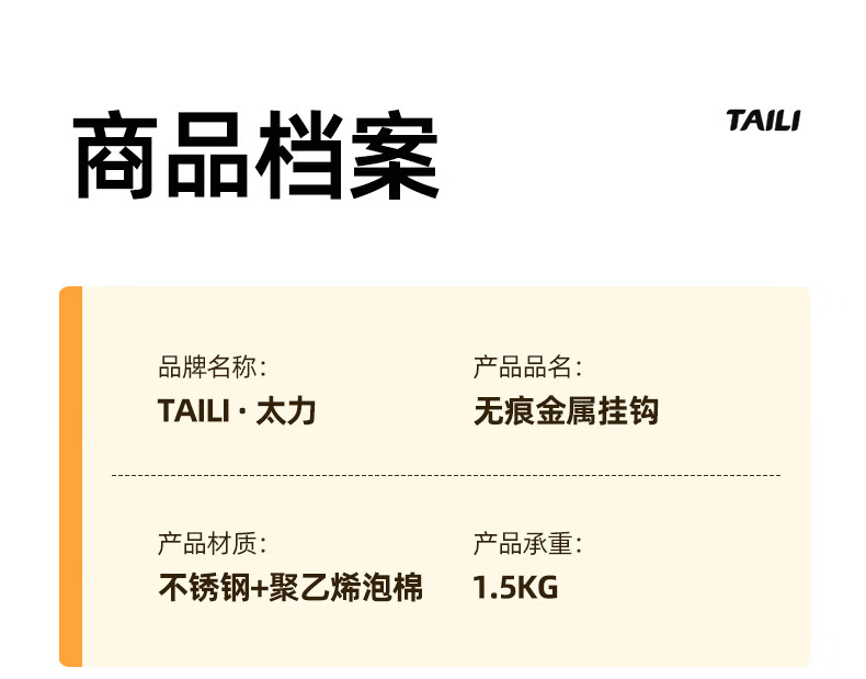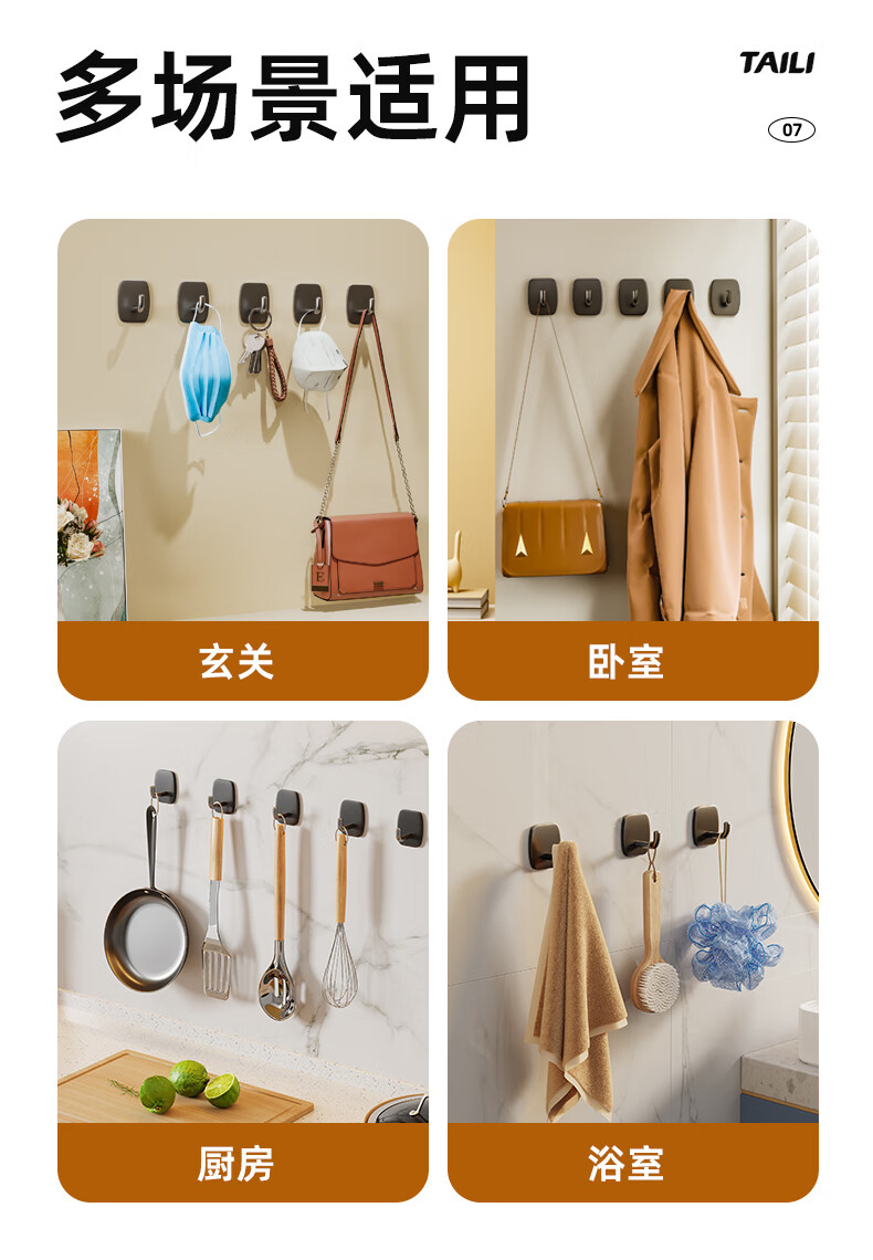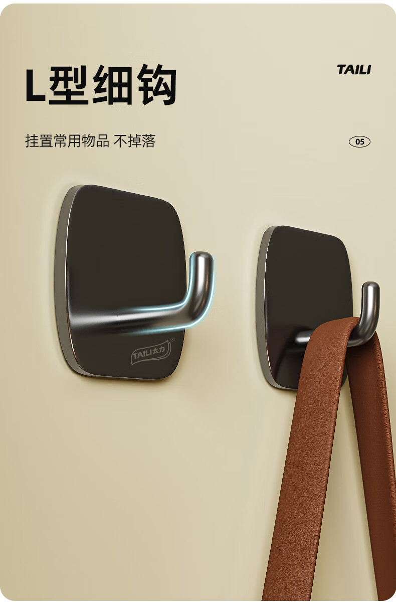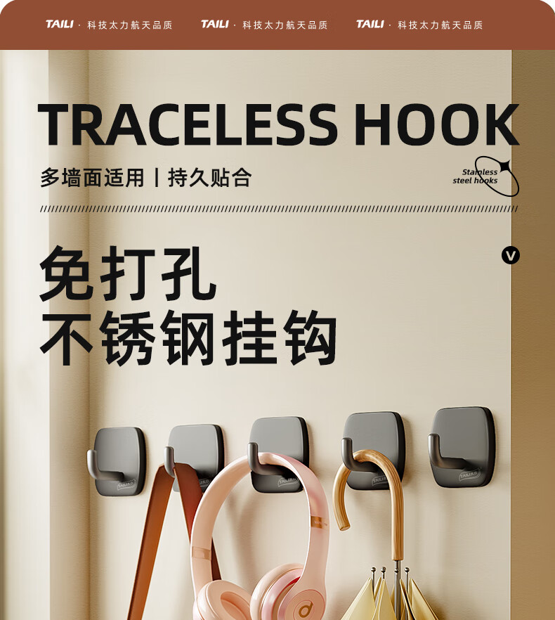 太力不锈钢无痕胶挂钩免打孔上墙强力粘钩挂钩厨房浴室 5个装 【不锈钢】无痕挂钩5个装