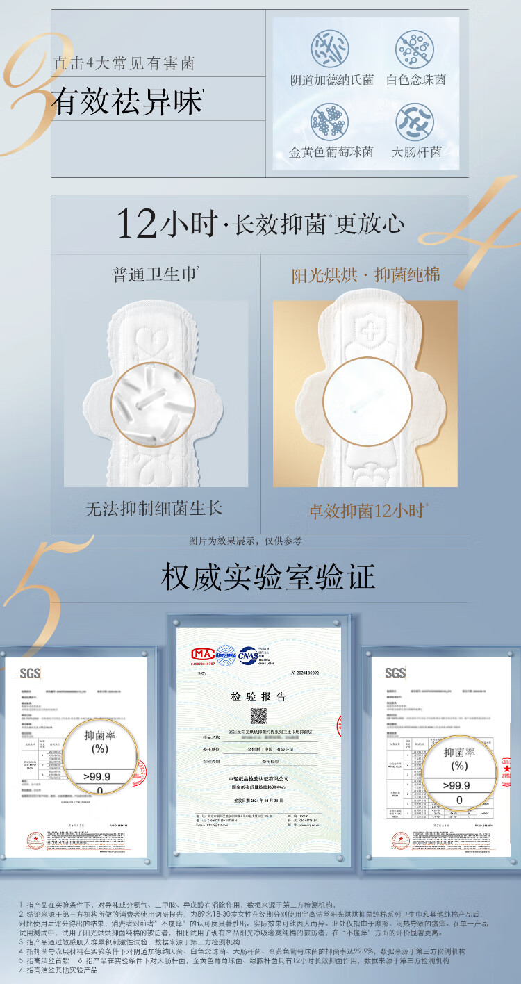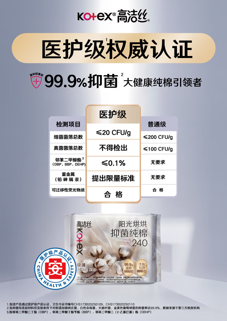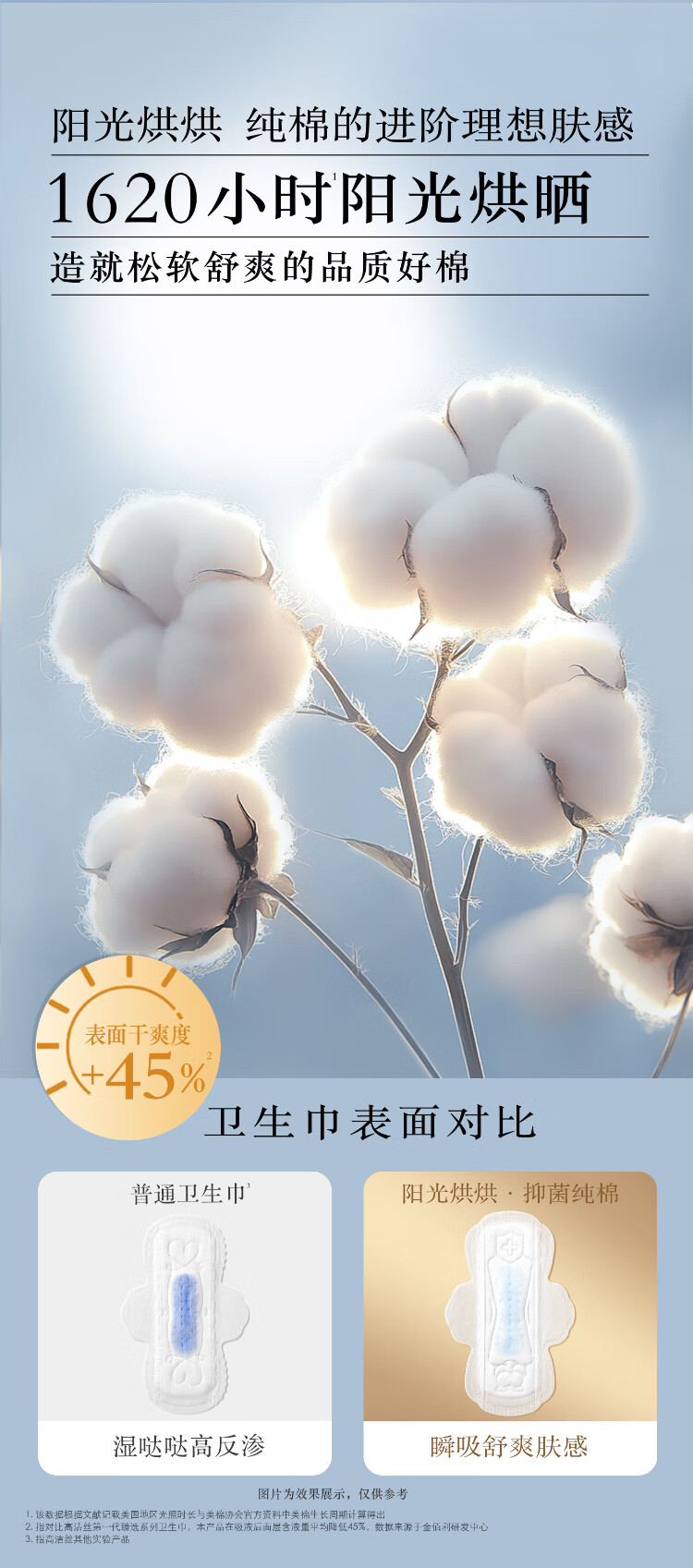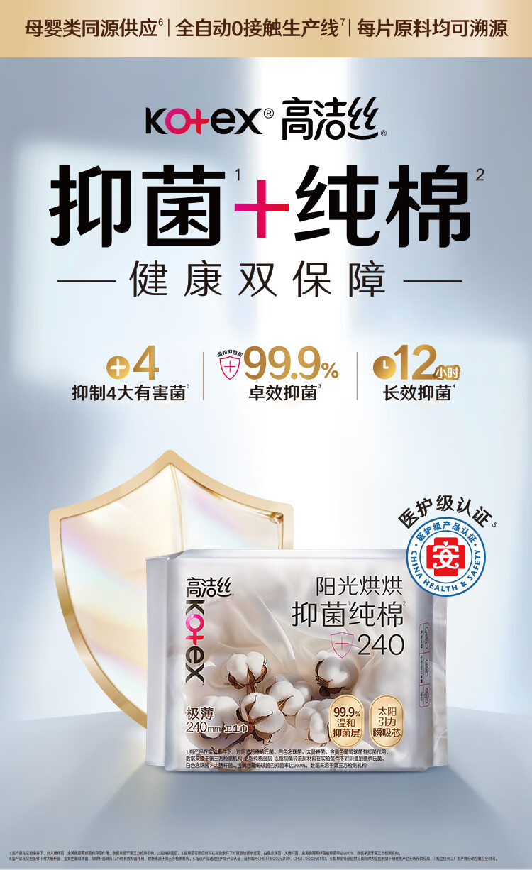 高洁丝【医护级抑菌纯棉+】阳光烘烘卫生巾240mm6片日用姨妈巾京东自营