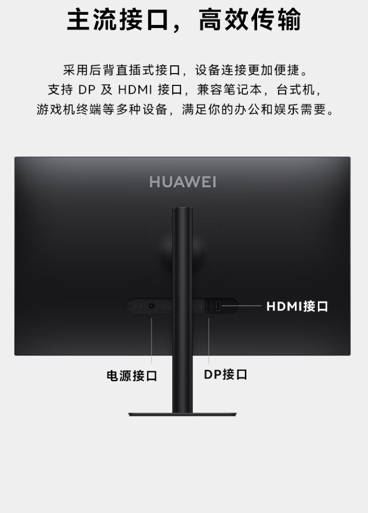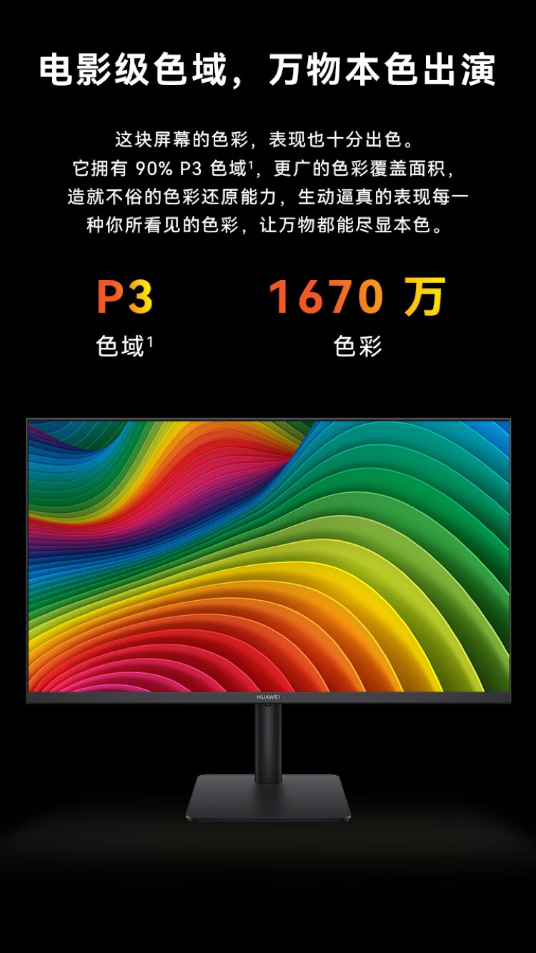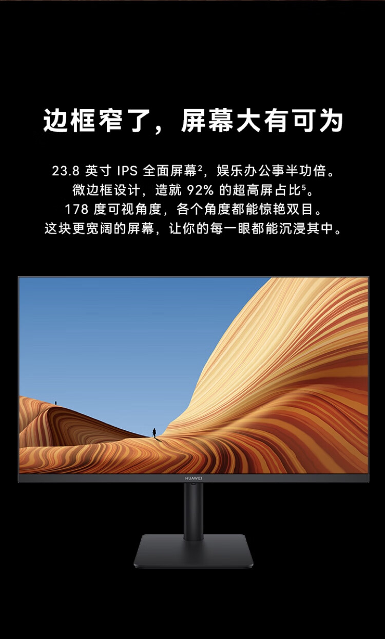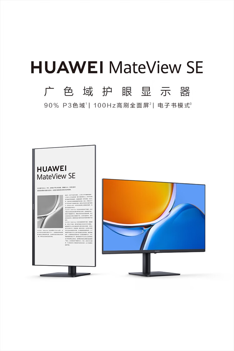 华为MateView SE 23.8英寸显示器 100Hz高刷 IPS全面屏 P3广色域 旋转升降壁挂 DP+HDMI 电脑办公