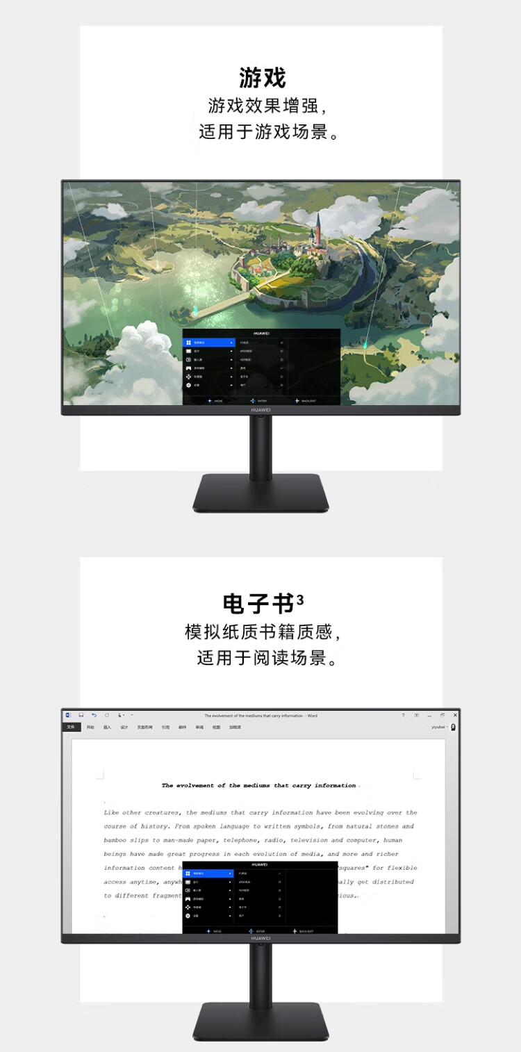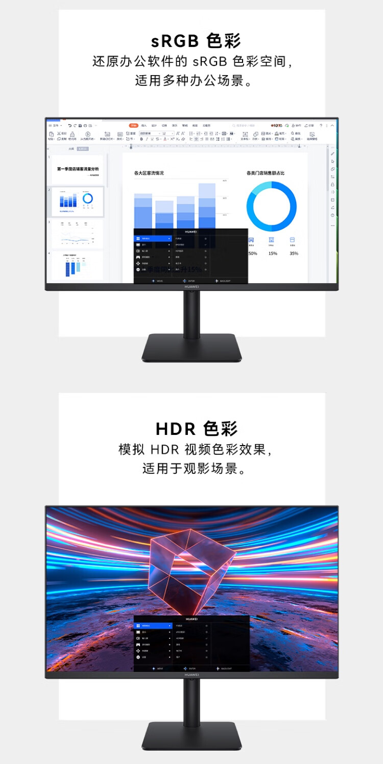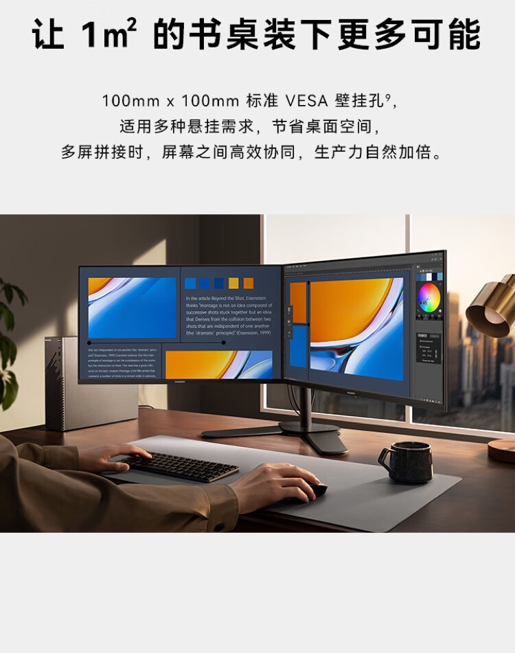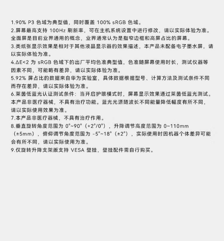 华为MateView SE 23.8英寸显示器 100Hz高刷 IPS全面屏 P3广色域 旋转升降壁挂 DP+HDMI 电脑办公