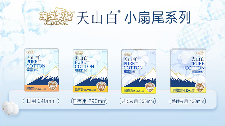 淘淘氧棉天山白纯棉消毒级日用卫生巾姨妈巾290mm6片京东自营