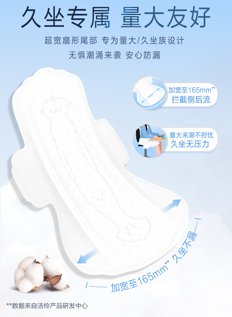 高洁丝【纯棉NO.1】阳光烘烘卫生巾420mm5片超长夜用姨妈巾京东自营旗舰
