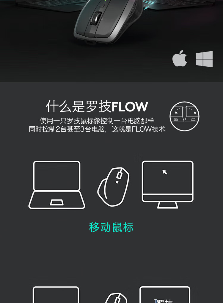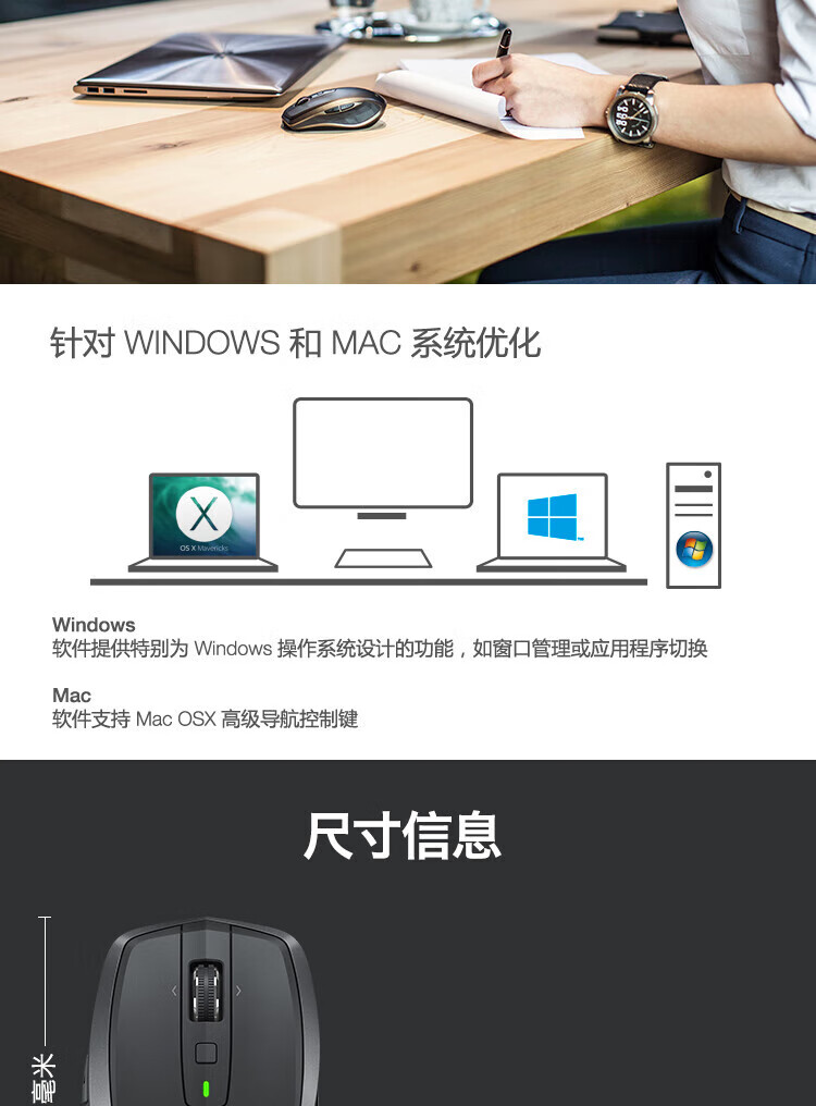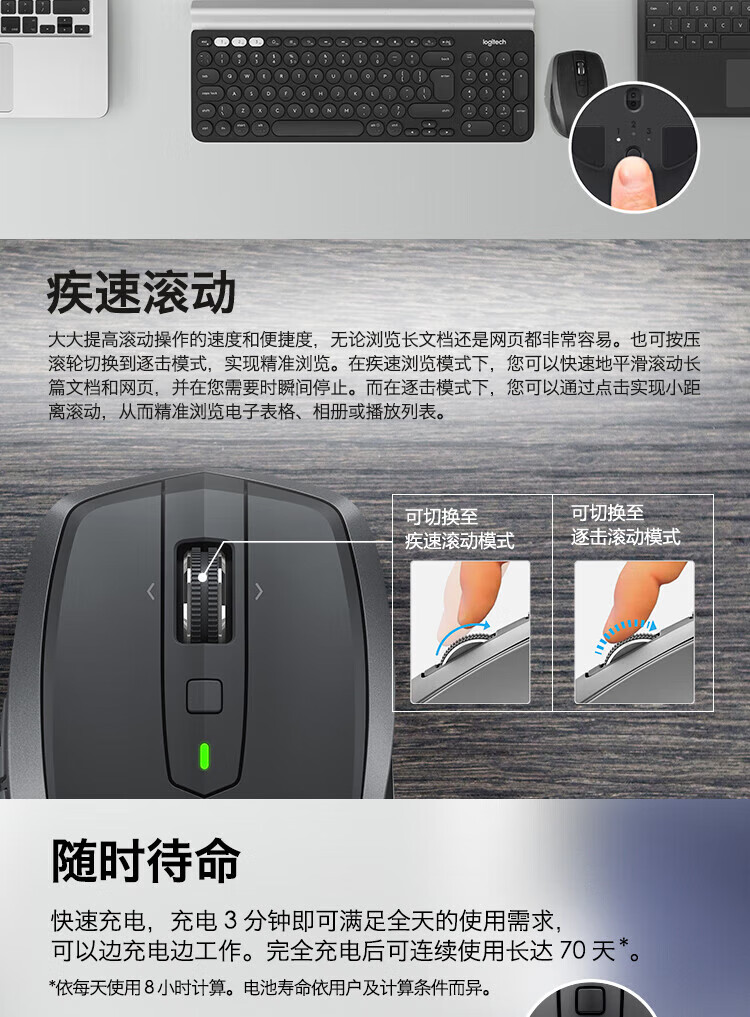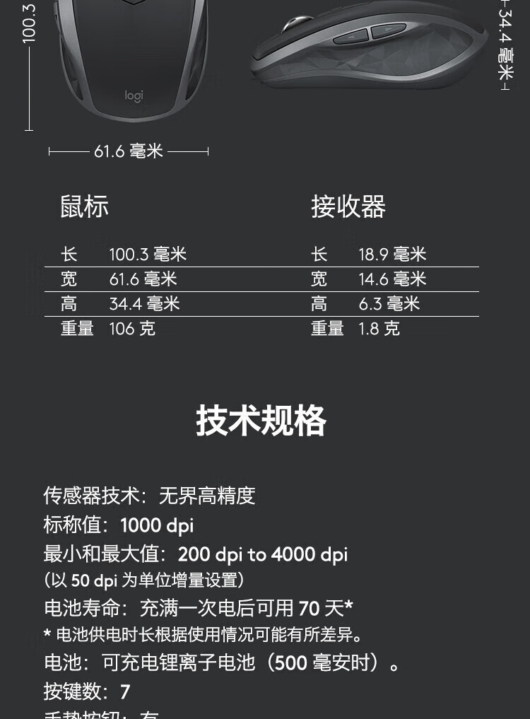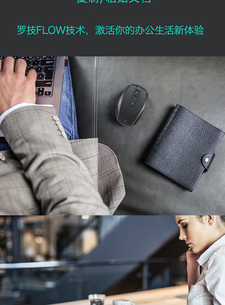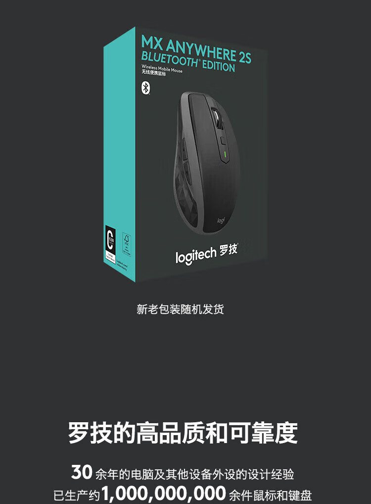 罗技(Logitech) 罗技大师系列MX Anywhere 2S无线蓝牙鼠标办公优联双模充电商务苹果MAC鼠标跨设备控制 Anywhere 2S黑