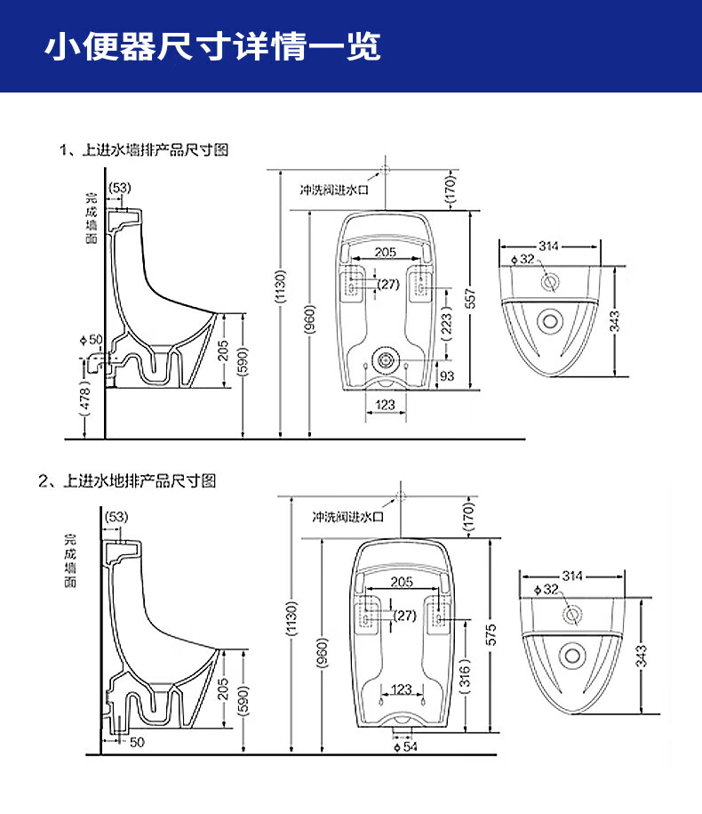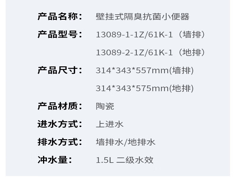 九牧(JOMOO)小便斗男士壁挂式墙排地排陶瓷小便池抗菌防臭感应一体防溅小便器 13089-2【地排】手按式小便斗