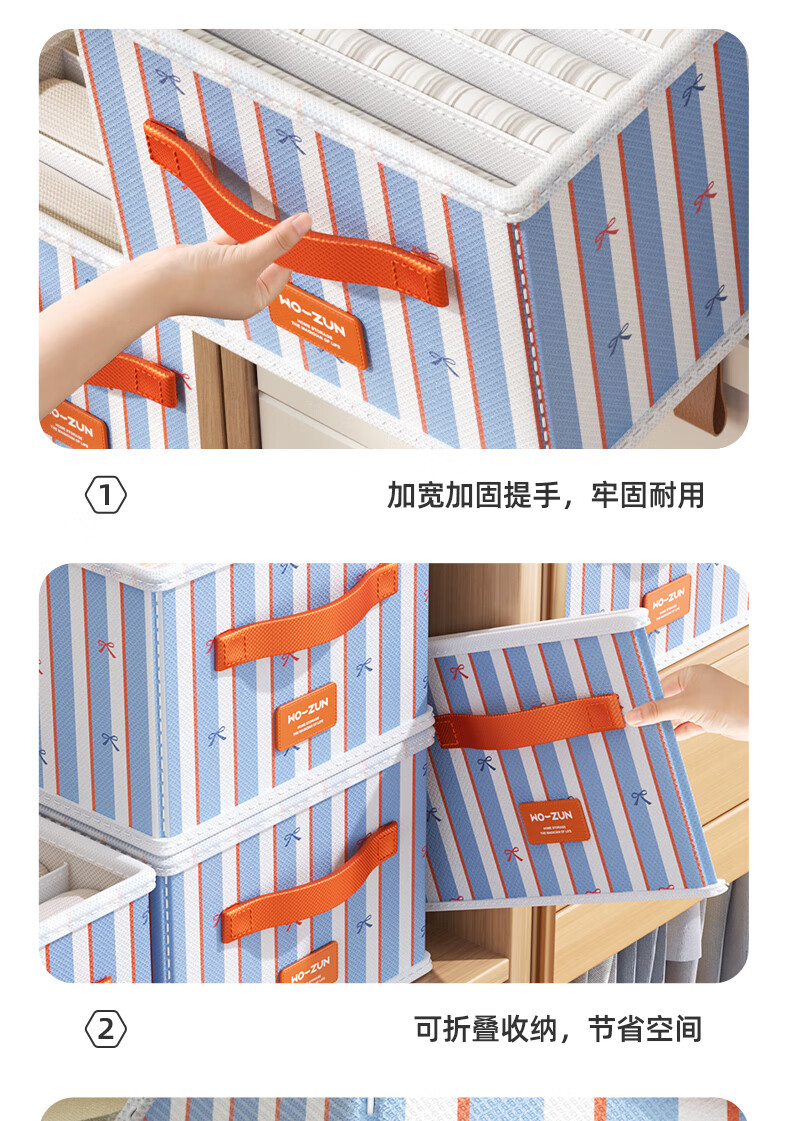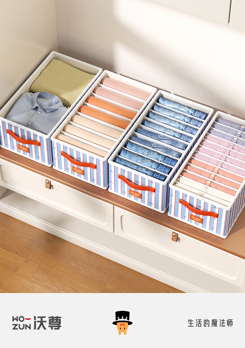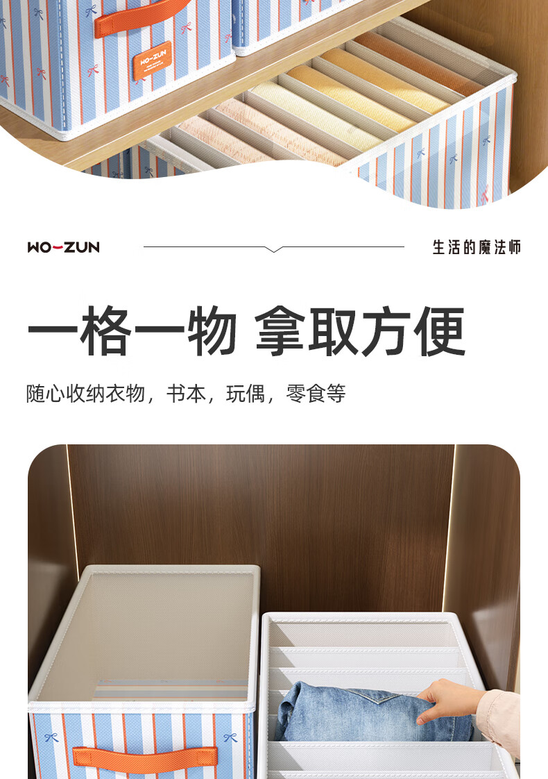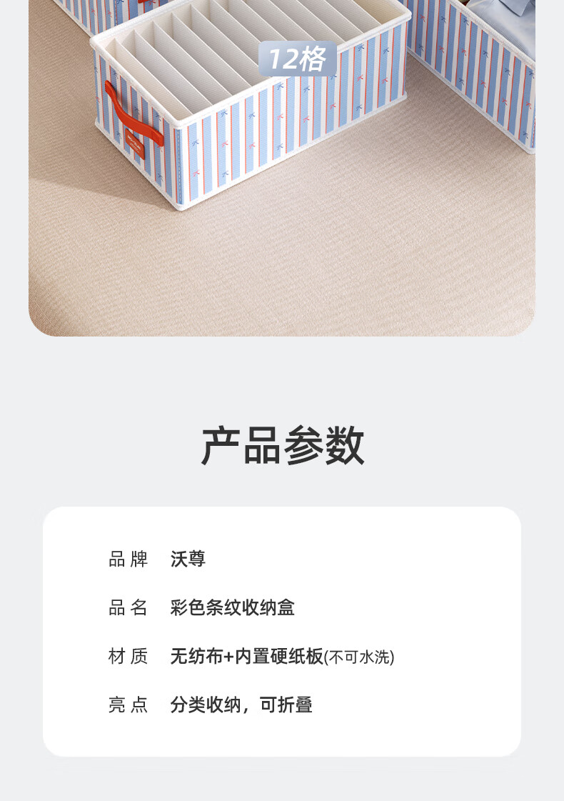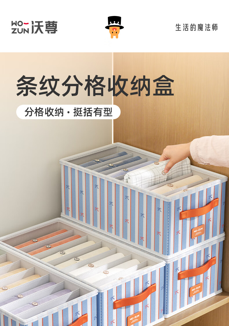 沃尊衣服收纳筐衣柜收纳神器整理盒衣服裤子分格四件套衣物布艺收纳盒 彩色条纹【12格】25*45*18cm 3个装【分格收纳 告别一抽全乱】