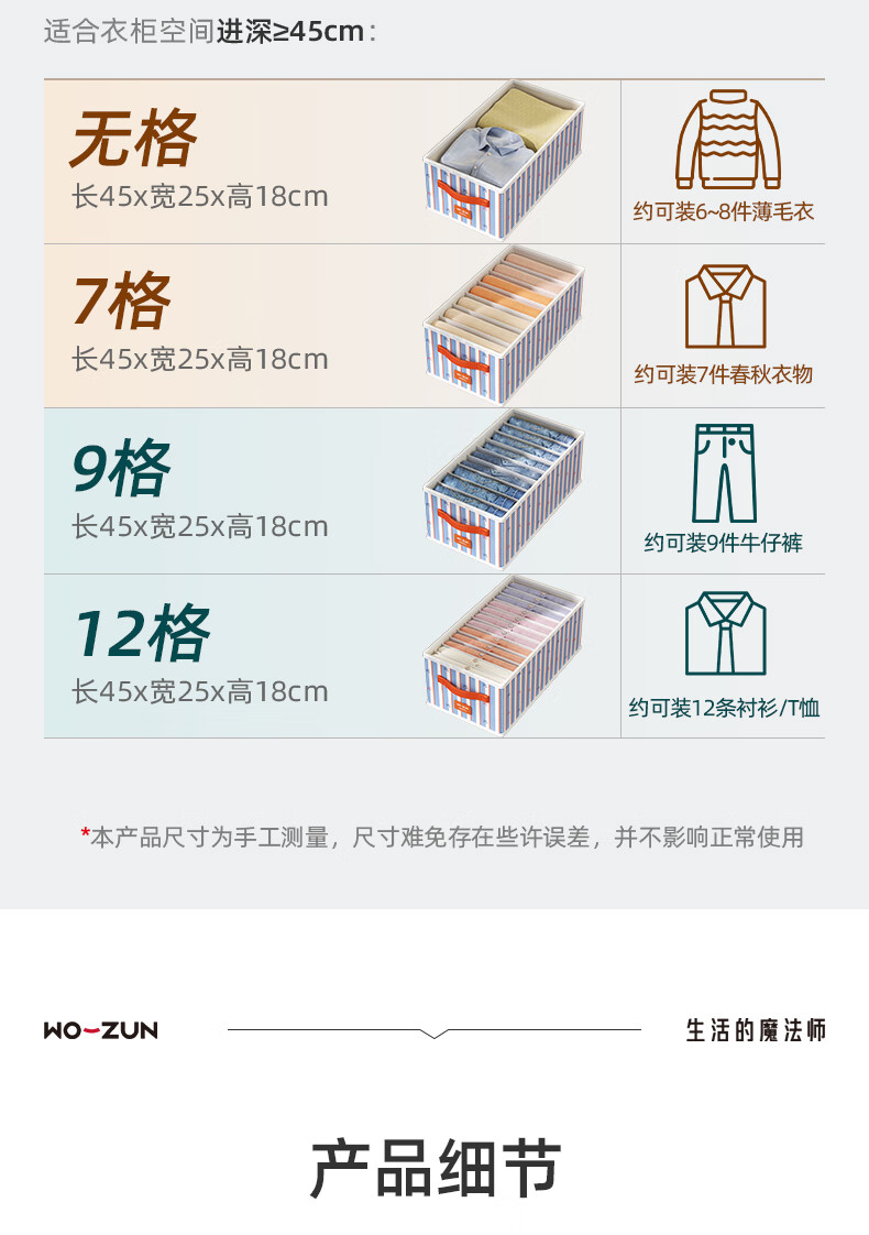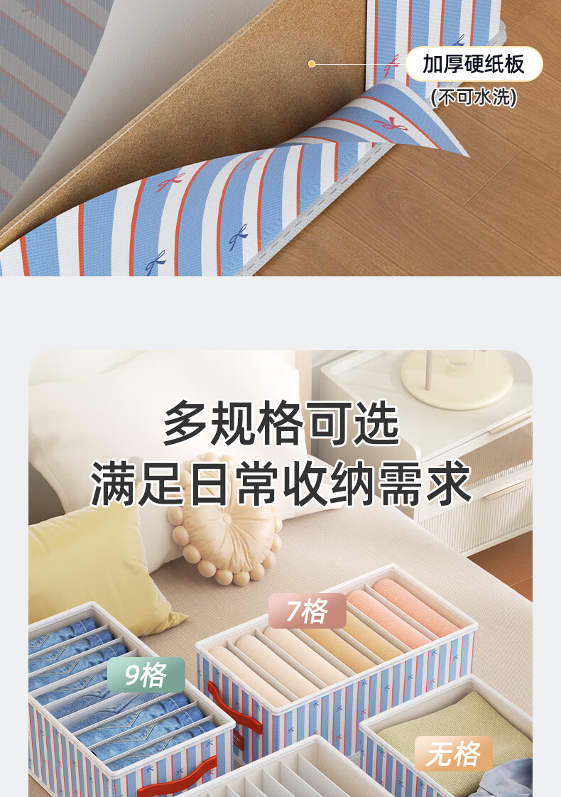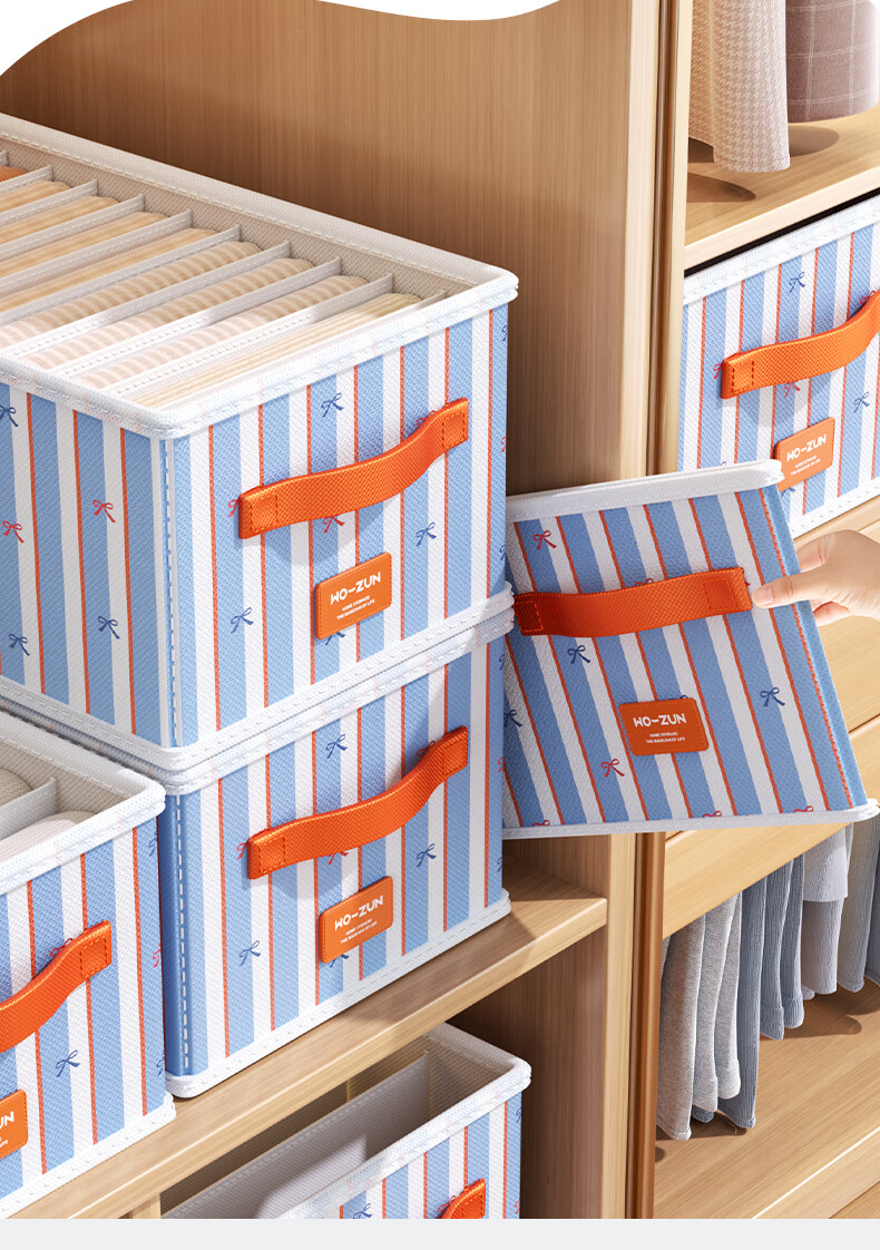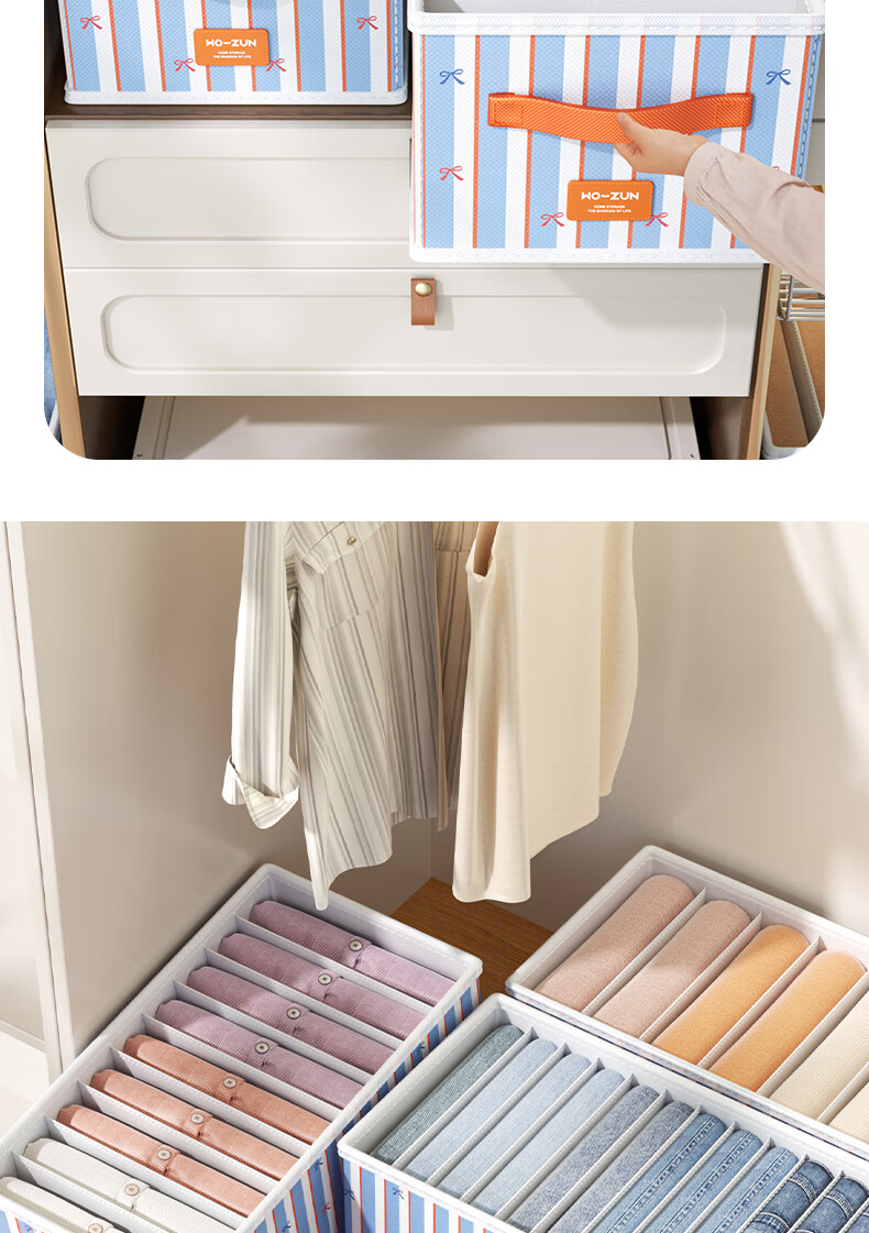 沃尊衣服收纳筐衣柜收纳神器整理盒衣服裤子分格四件套衣物布艺收纳盒 彩色条纹【12格】25*45*18cm 3个装【分格收纳 告别一抽全乱】