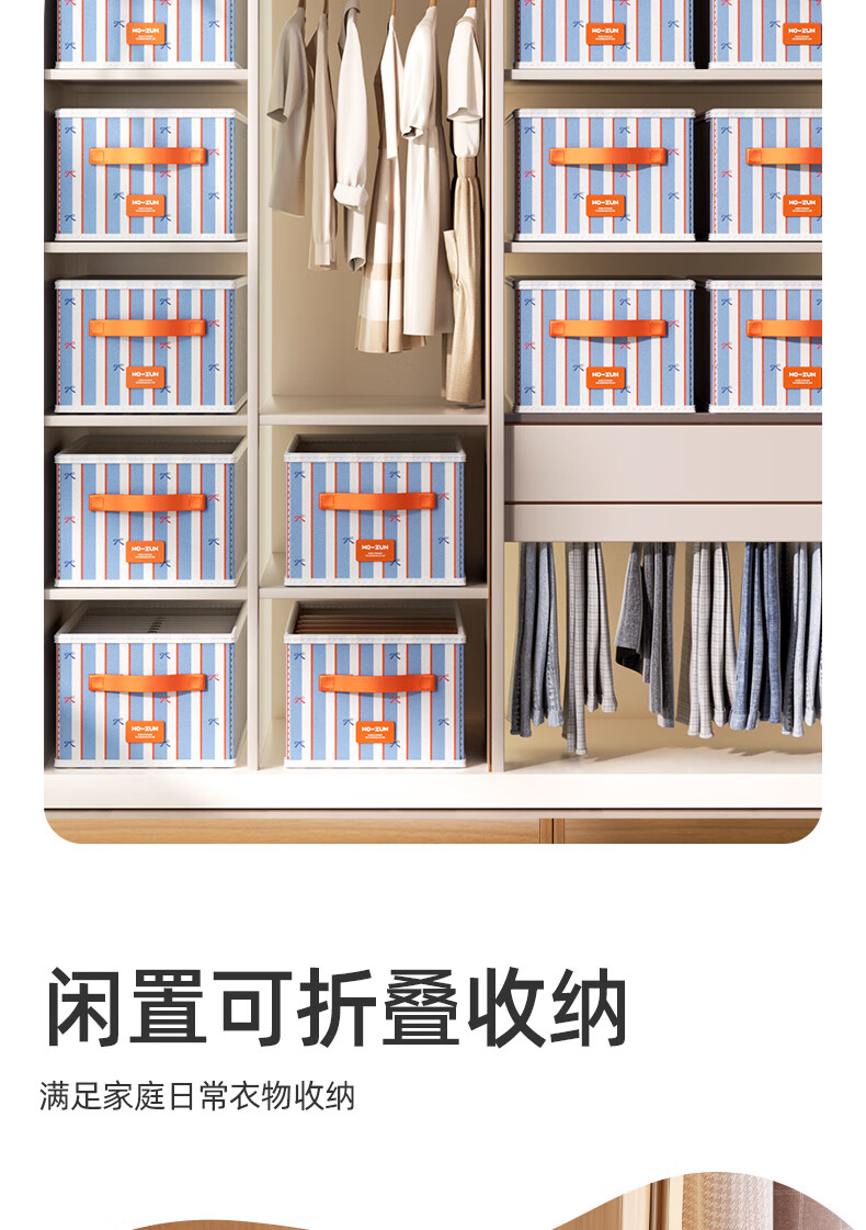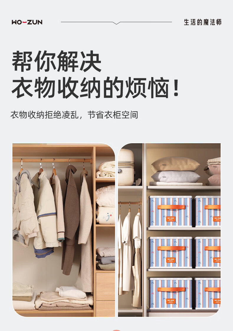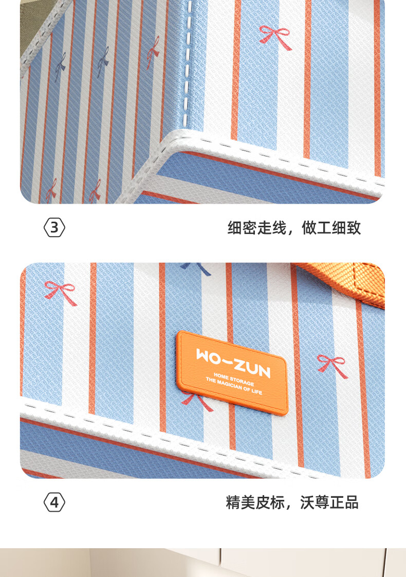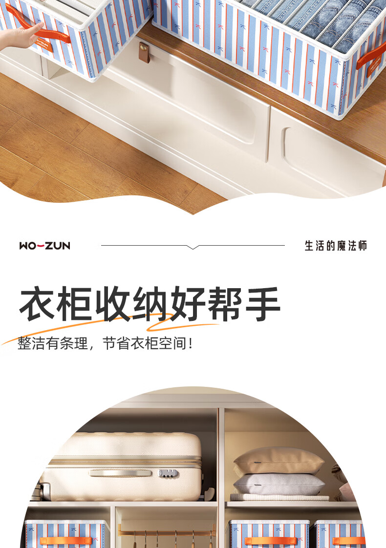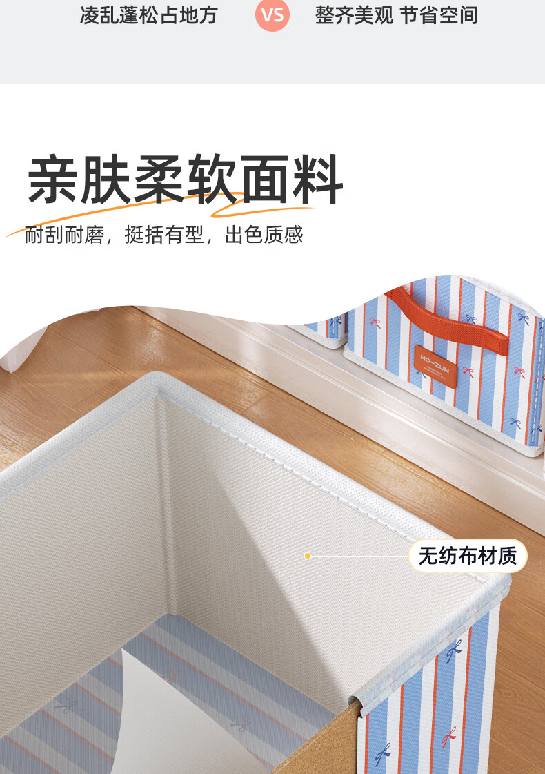 沃尊衣服收纳筐衣柜收纳神器整理盒衣服裤子分格四件套衣物布艺收纳盒 彩色条纹【12格】25*45*18cm 3个装【分格收纳 告别一抽全乱】