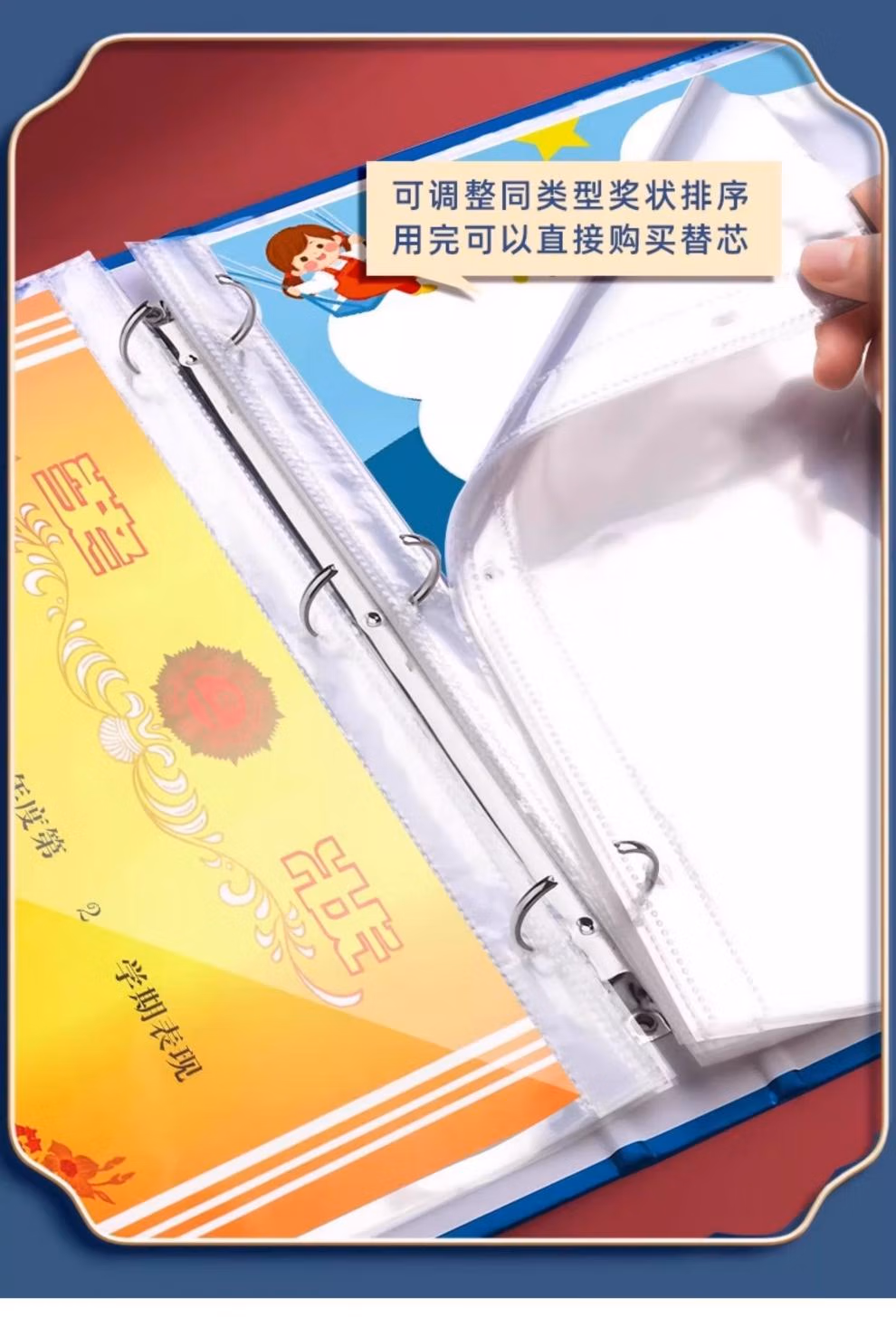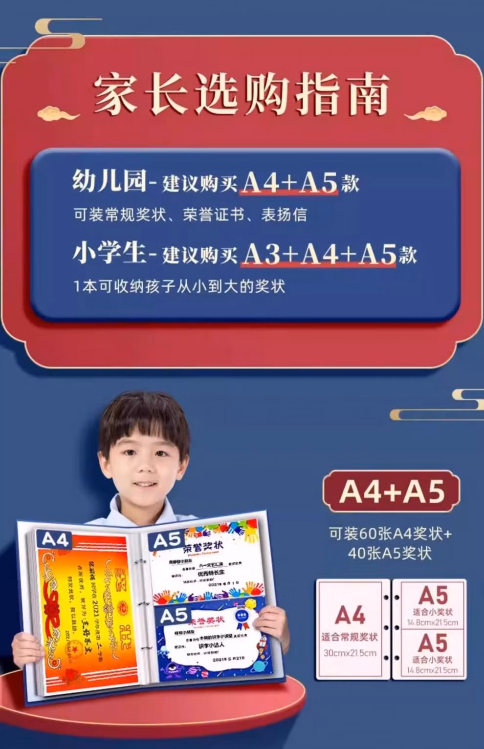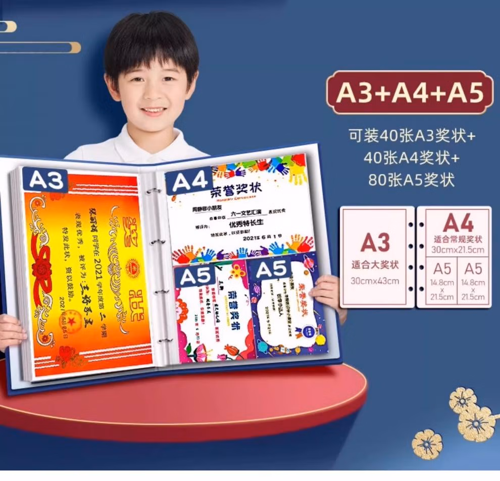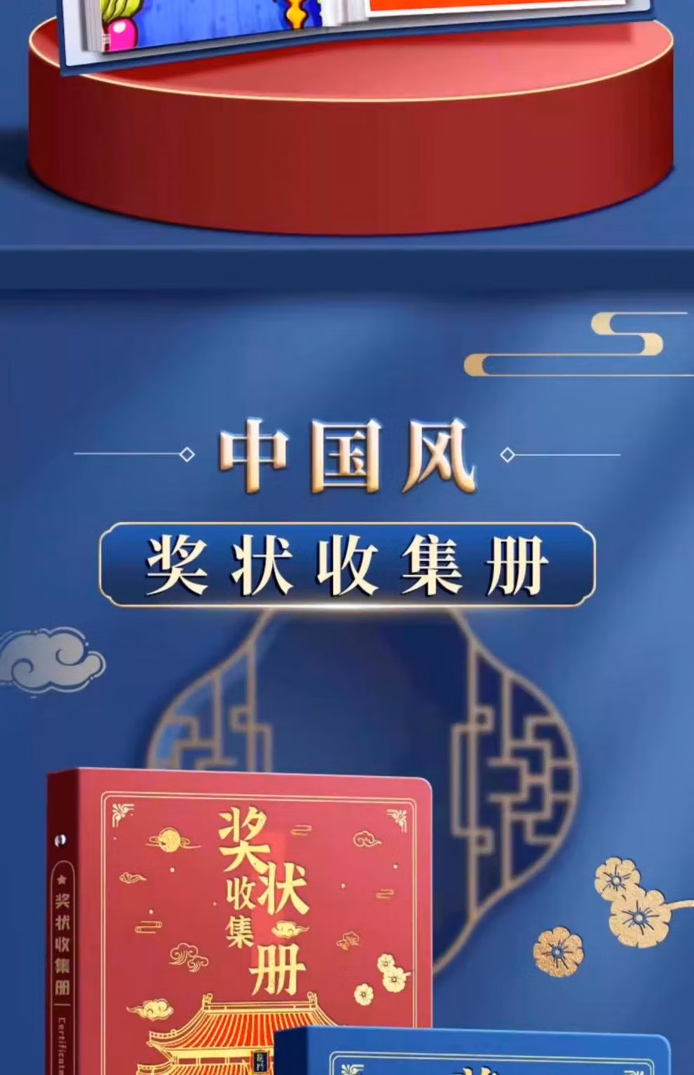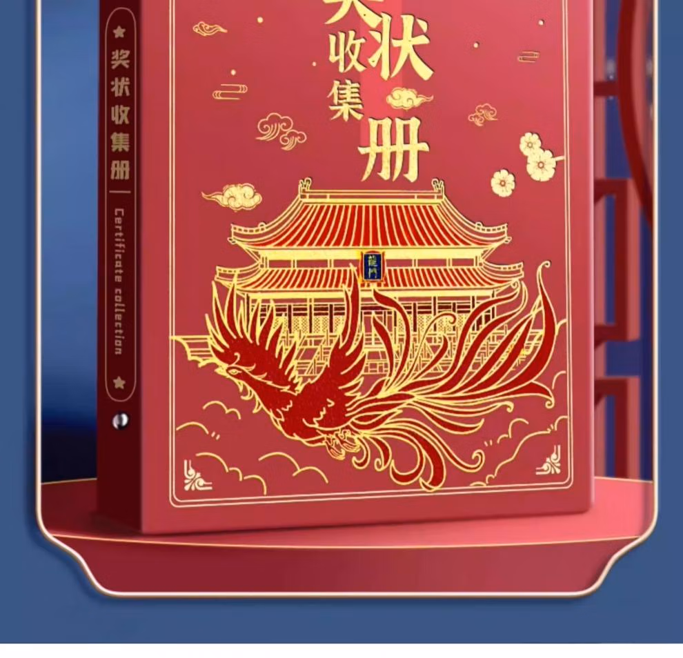DEATKN中国风奖状收集册2025新款可挂墙男孩女孩荣誉证书a3a4活页收纳册 中国风祥龙//A3+A4/装120张