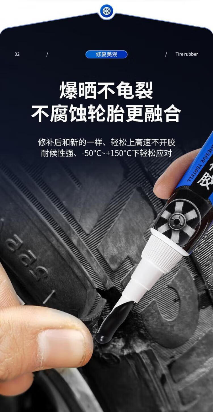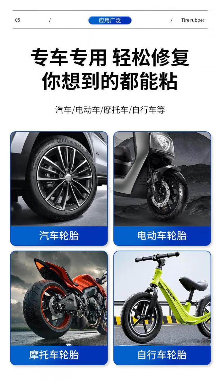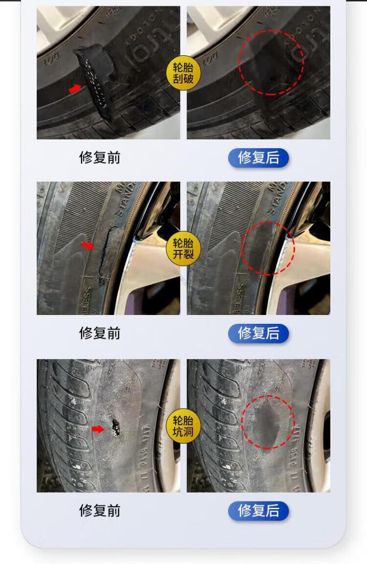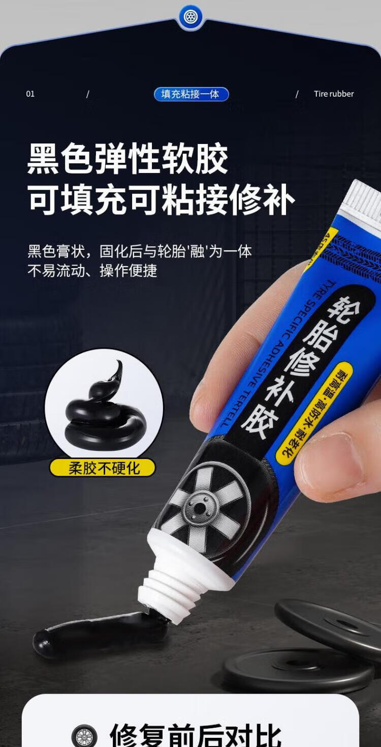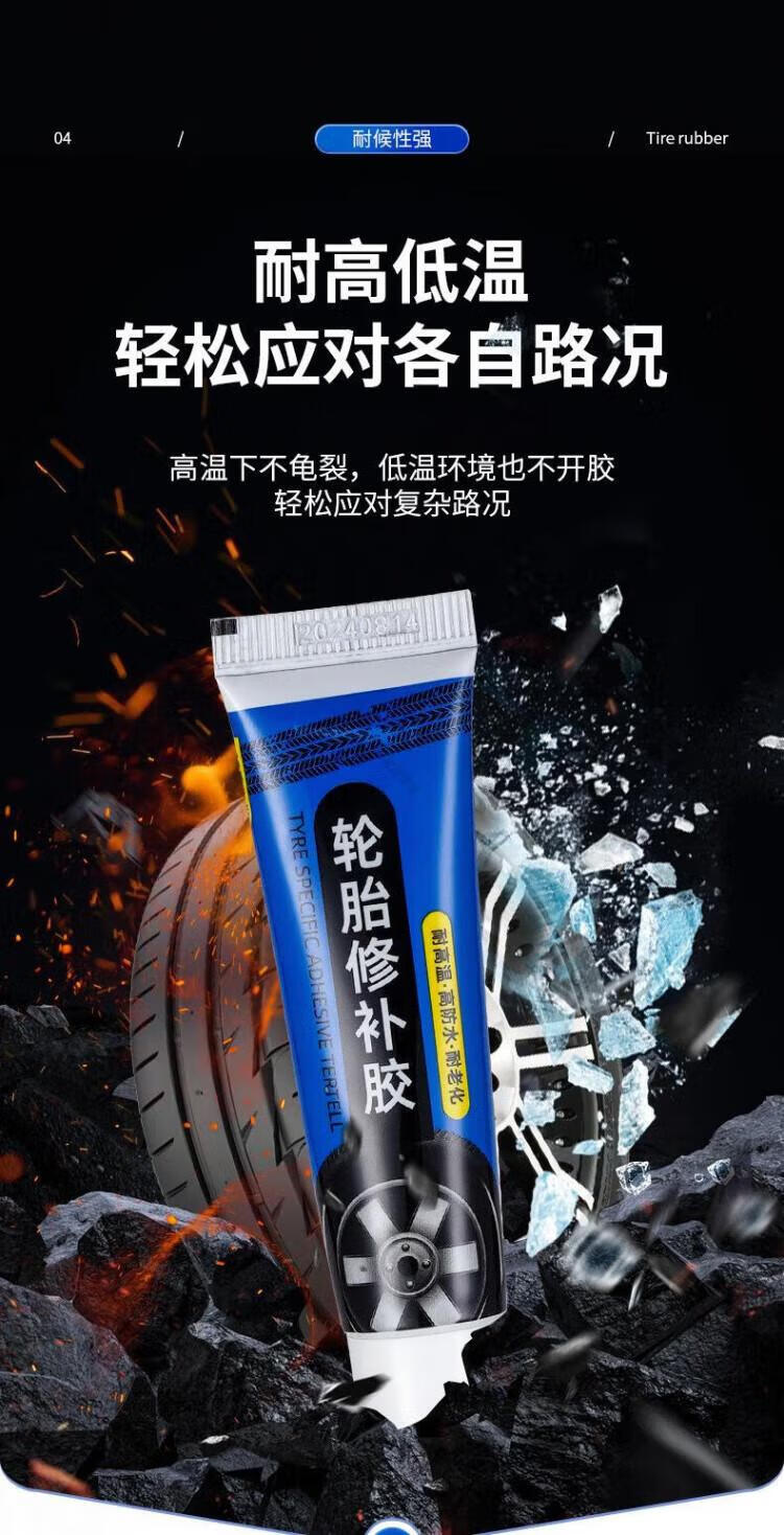 DEATKN德国汽车轮胎修补胶强力胶侧面外伤裂缝裂纹刮伤划破 轮胎修补胶填充型+1支装/送工具