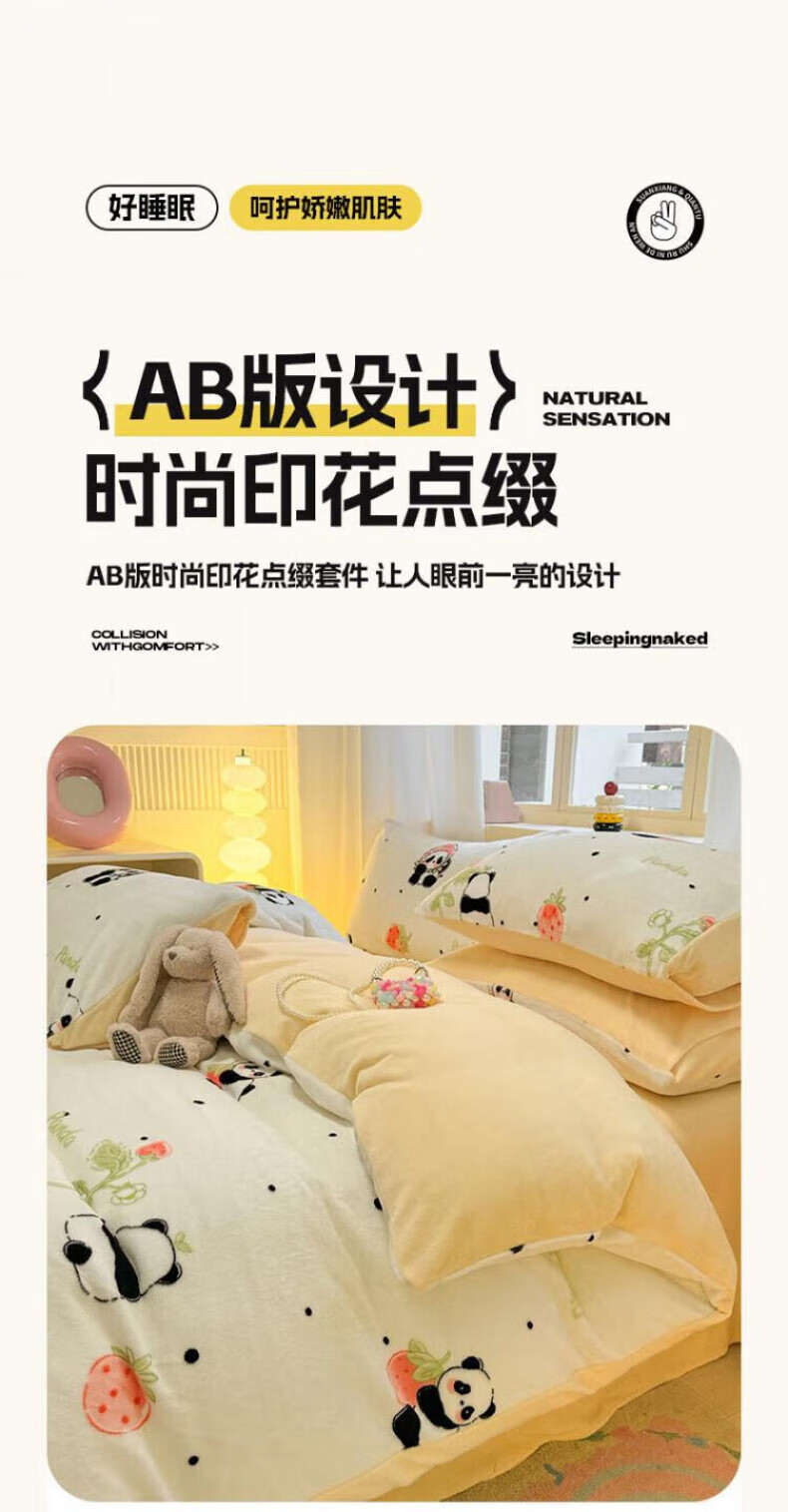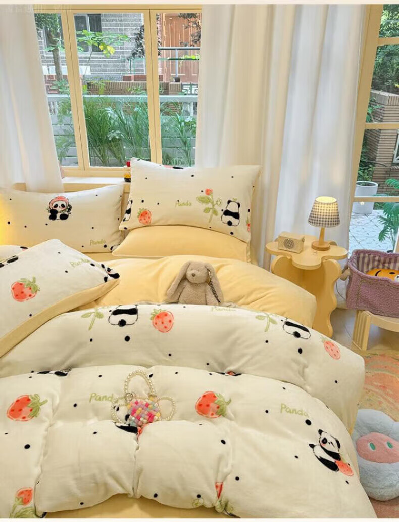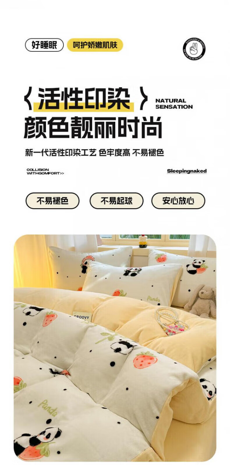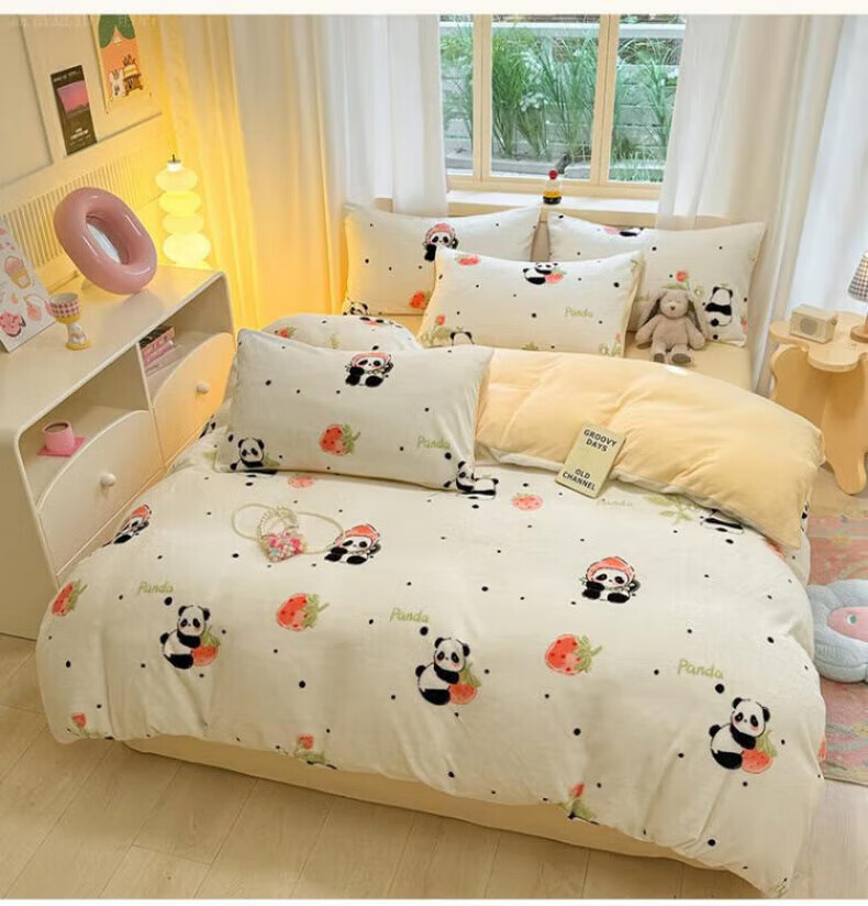 DEATKN德国高端冬季A类牛奶绒四件套双面珊瑚绒床笠加厚被罩加绒被 尤克里[可裸睡A类母婴级] 床单款 1.2m床三件套被套1.5*2.0m