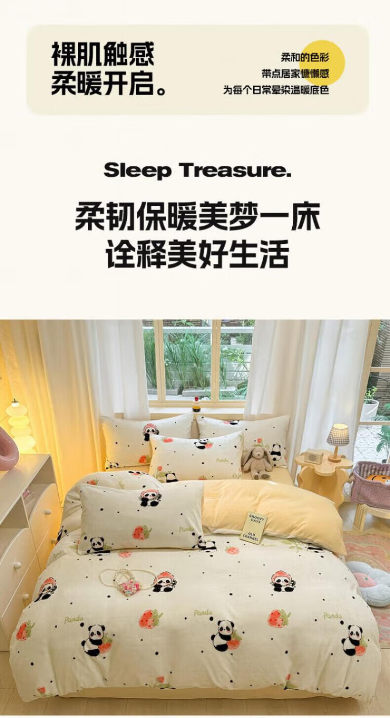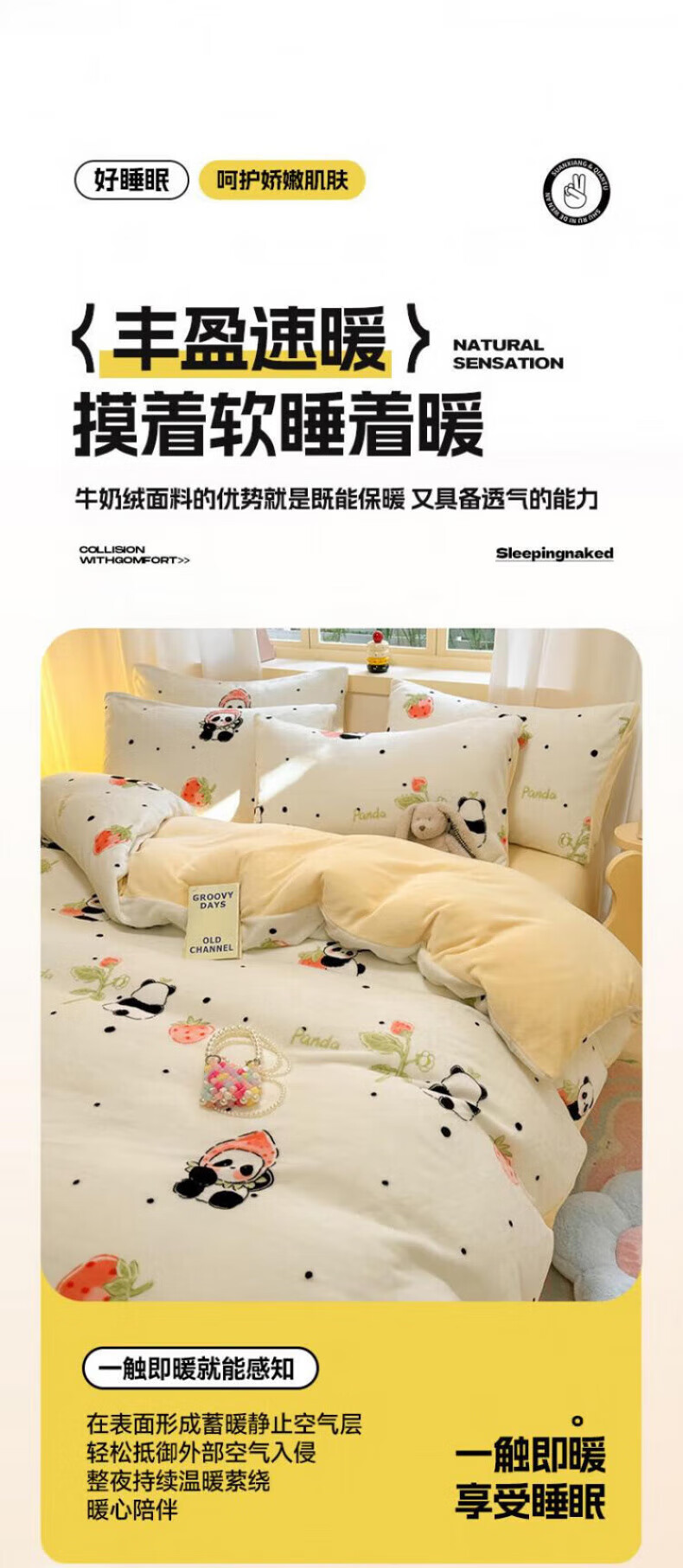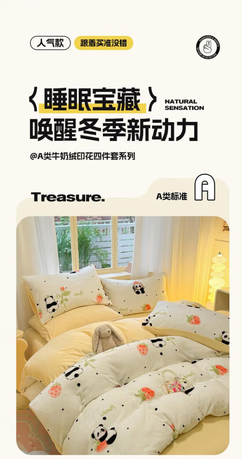 DEATKN德国高端冬季A类牛奶绒四件套双面珊瑚绒床笠加厚被罩加绒被 尤克里[可裸睡A类母婴级] 床单款 1.2m床三件套被套1.5*2.0m