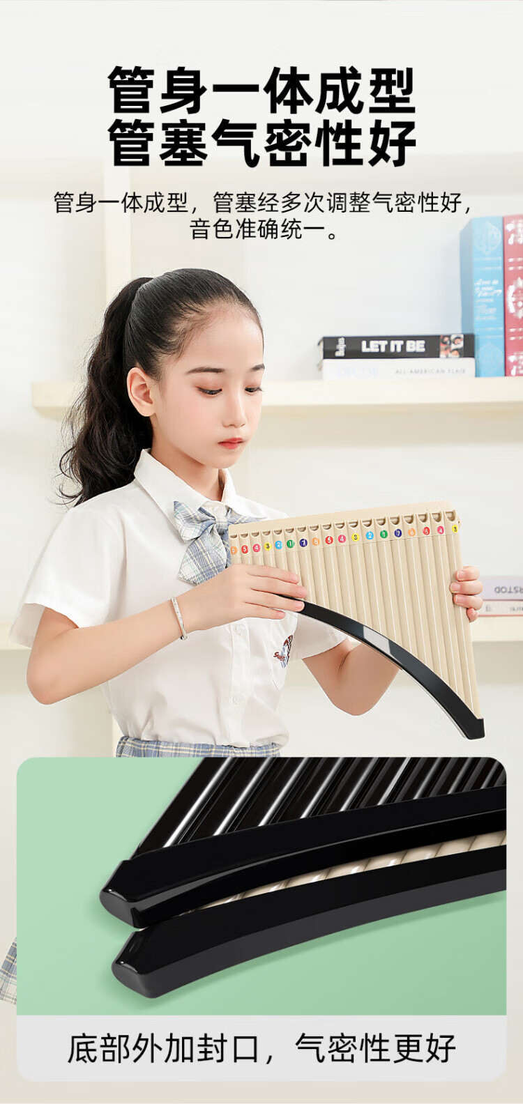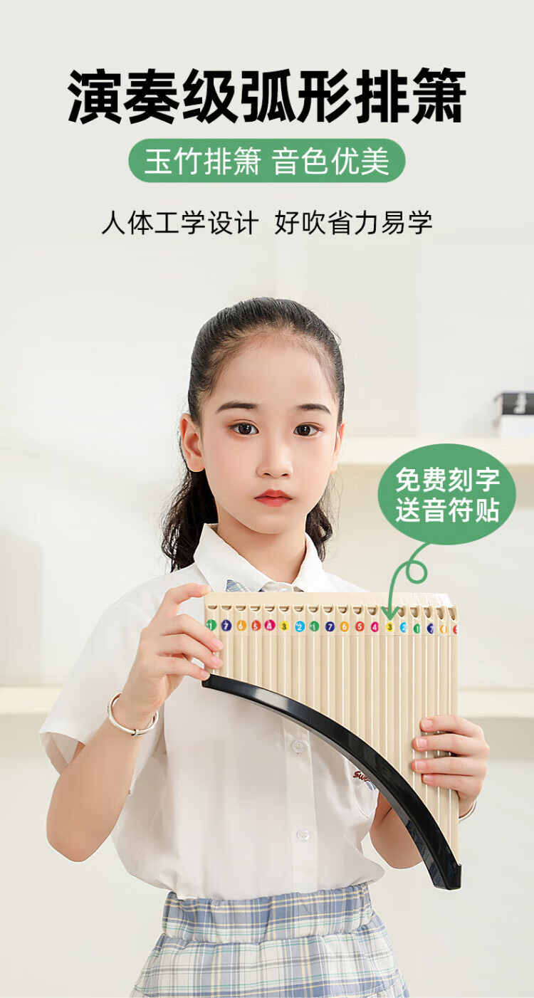 DEATKN德国玉竹排箫18管C调小学生演奏级民族乐器初学儿童课堂专用排笛 【开学】18管C调米色+礼包
