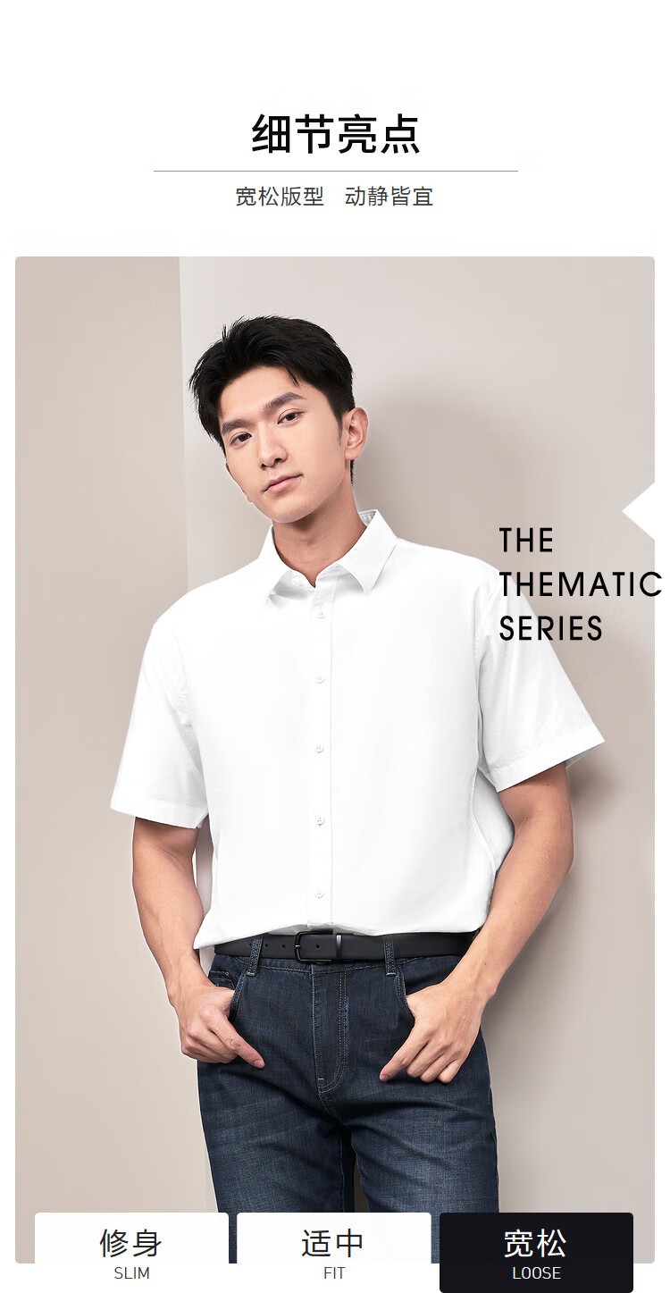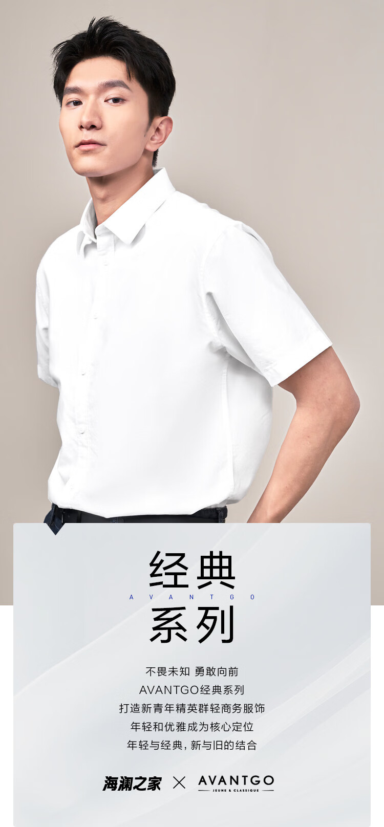 海澜之家HLA海澜之家短袖衬衫男夏季轻商务经典系列纯棉时尚衬衫男