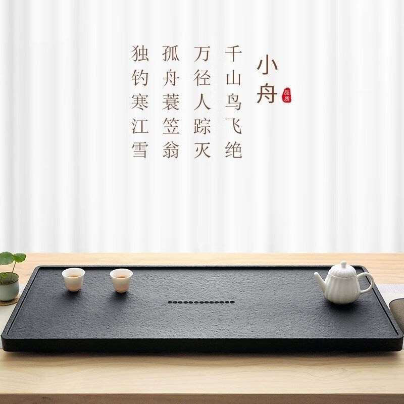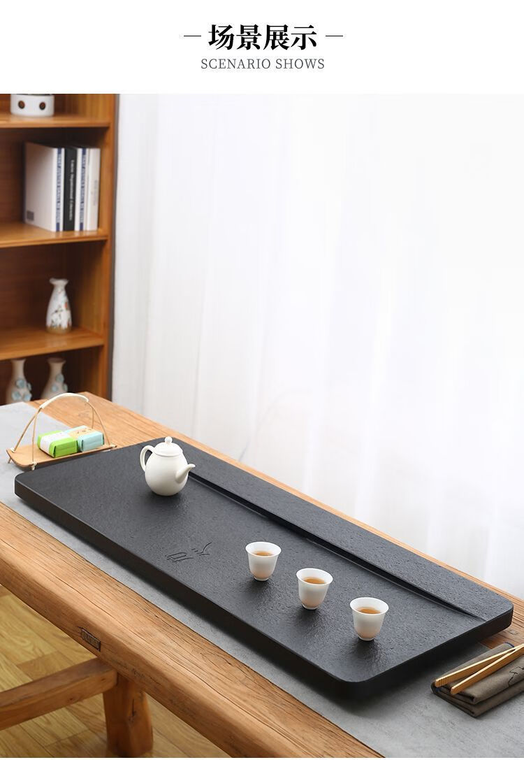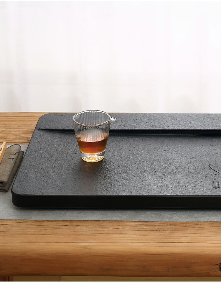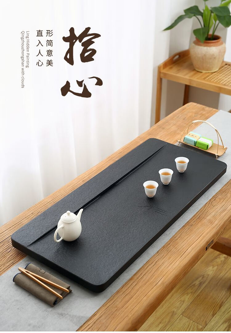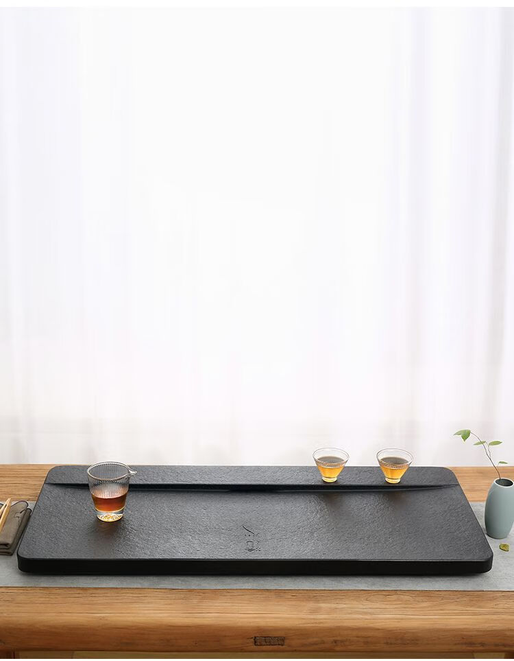 咏夏整块天然乌金石简约现代茶盘家用办公石材排水茶台茶具托盘大茶海 乌金石+赠送套 20*15加厚3公分