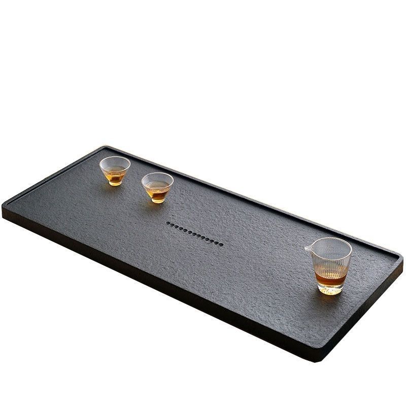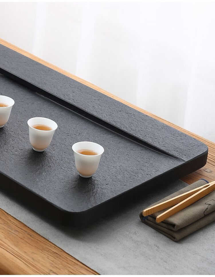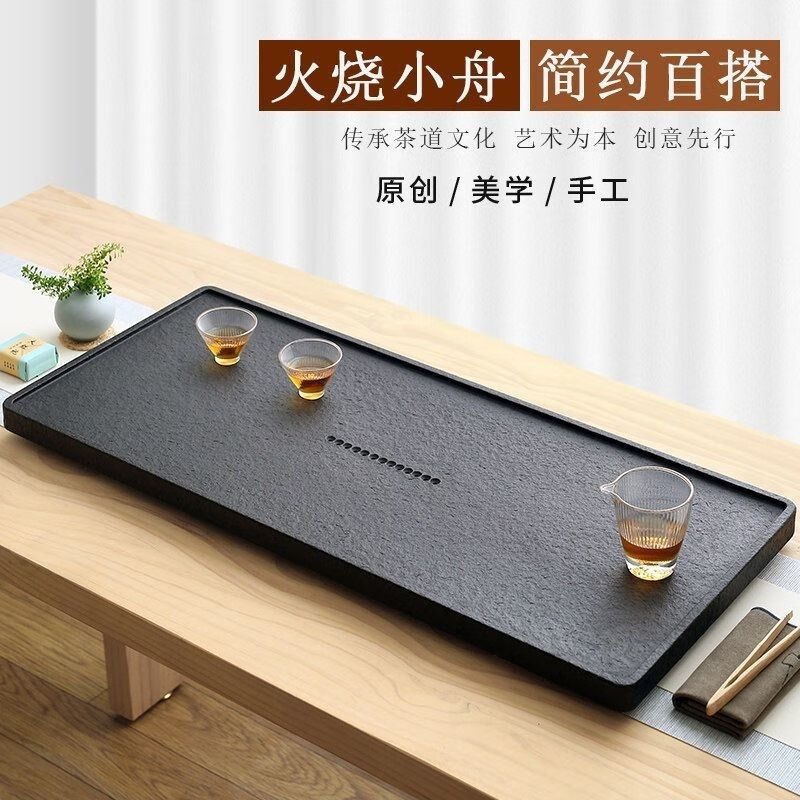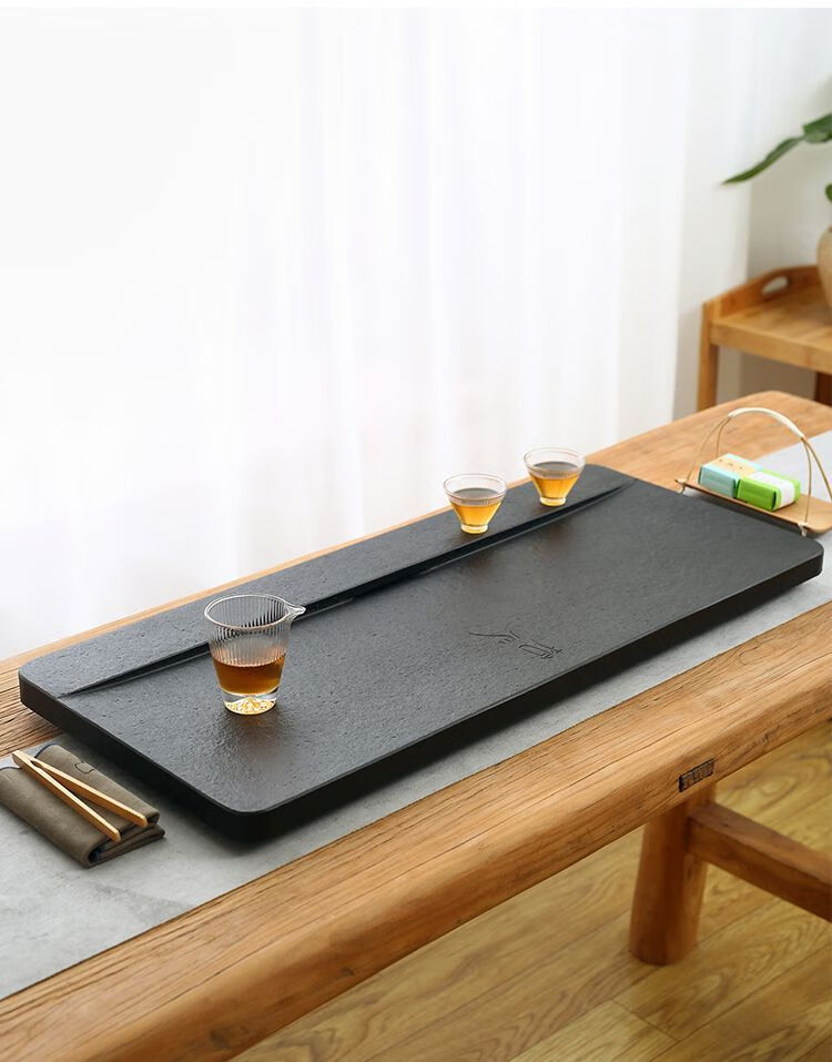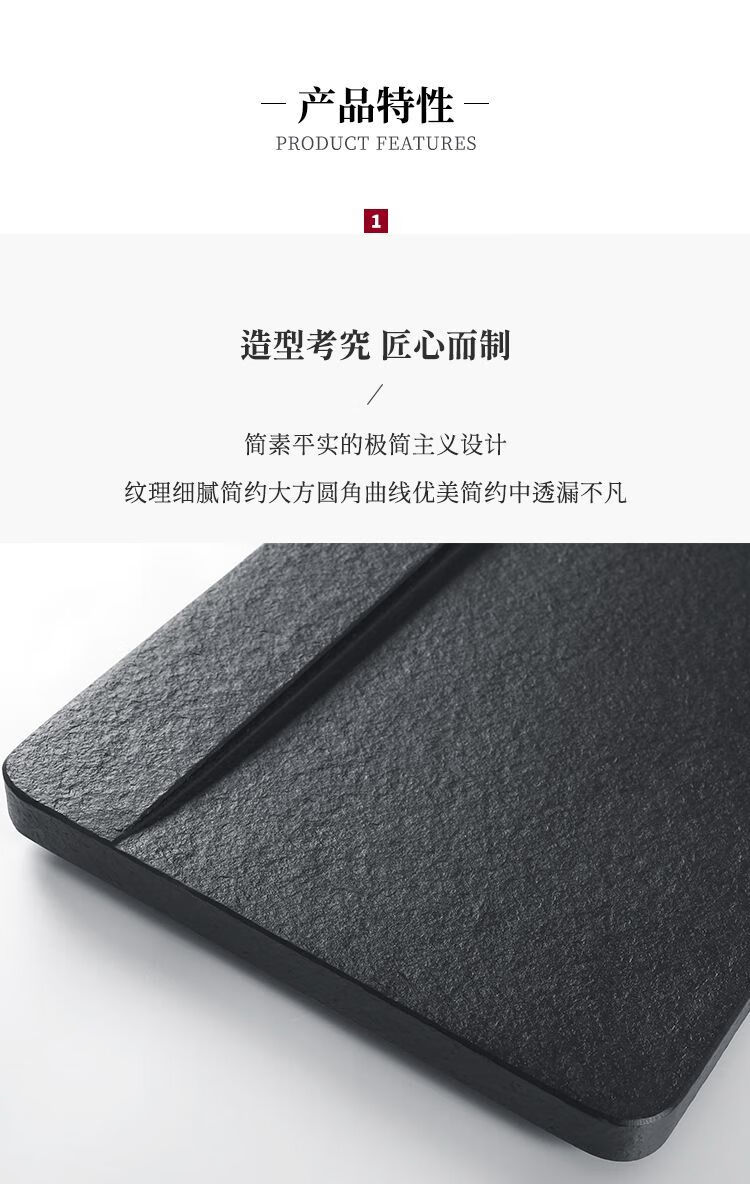咏夏整块天然乌金石简约现代茶盘家用办公石材排水茶台茶具托盘大茶海 乌金石+赠送套 20*15加厚3公分