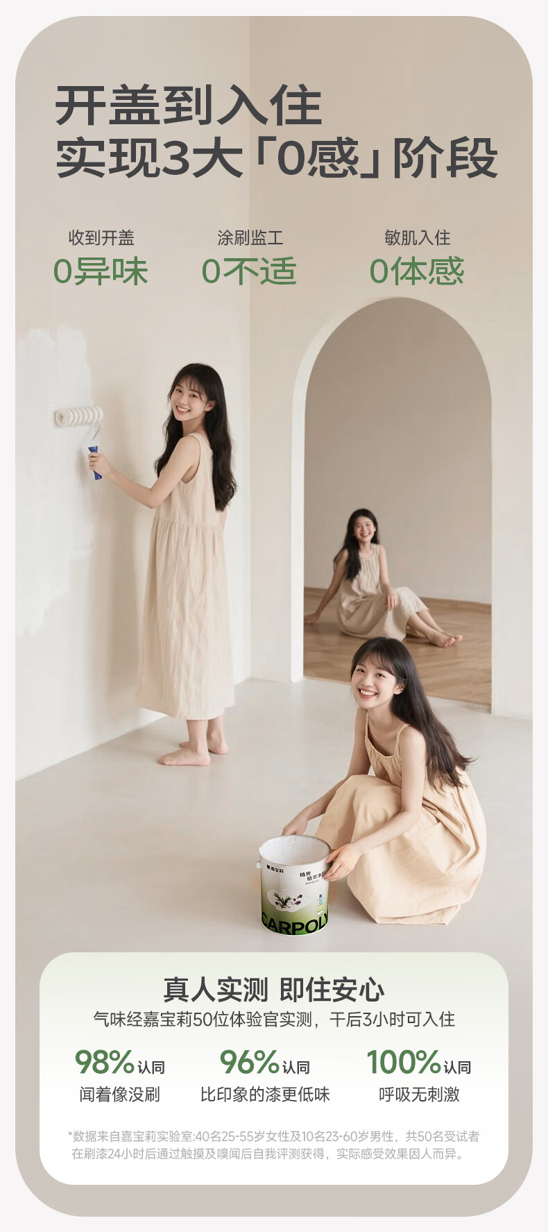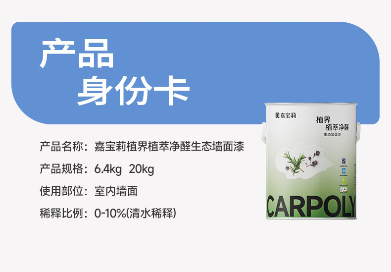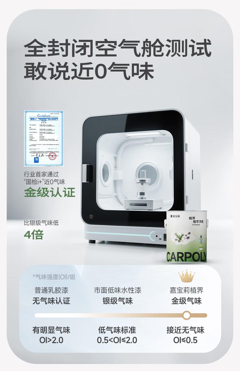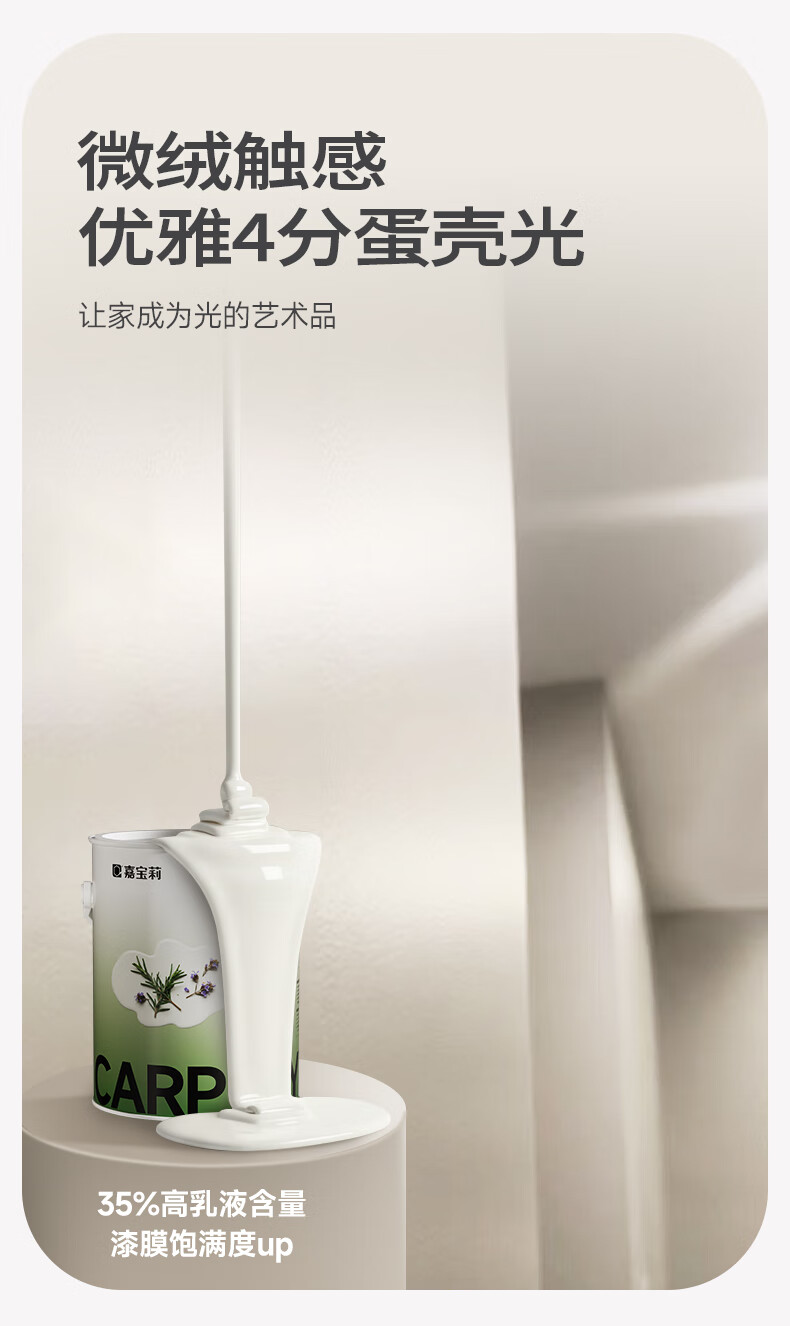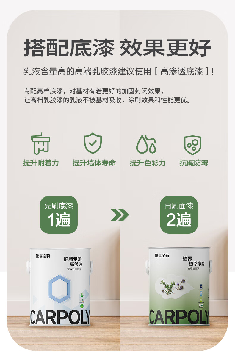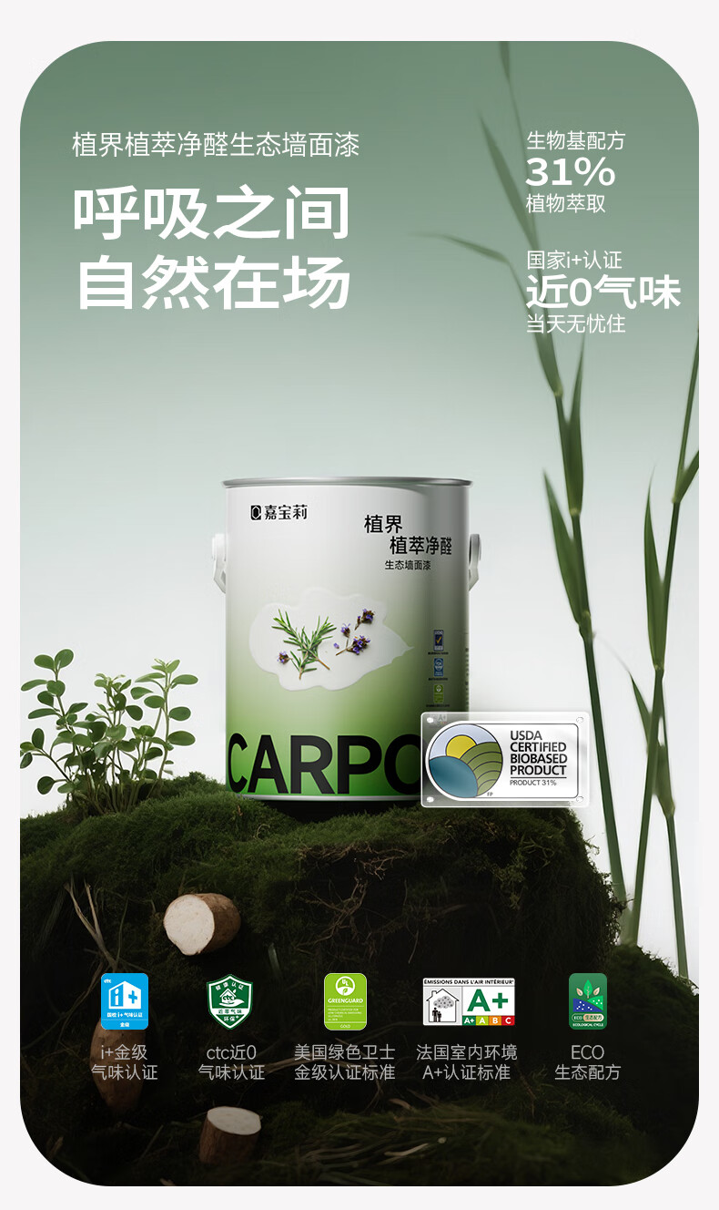嘉宝莉(CARPOLY)植界生态漆净醛乳胶漆墙面漆净味多效白漆抗甲醛调色内墙家用自刷 【生物基-蛋壳光】底面套装60kg