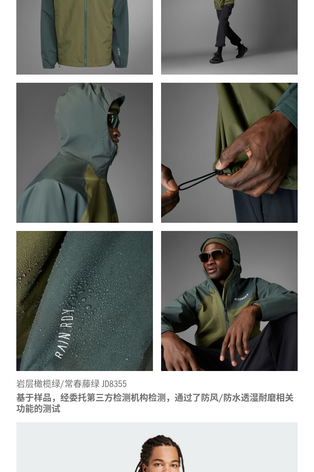 adidas防水防风透湿透汽户外运动连帽冲锋衣男阿迪达斯官方TERREX 黑色 L