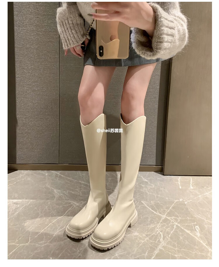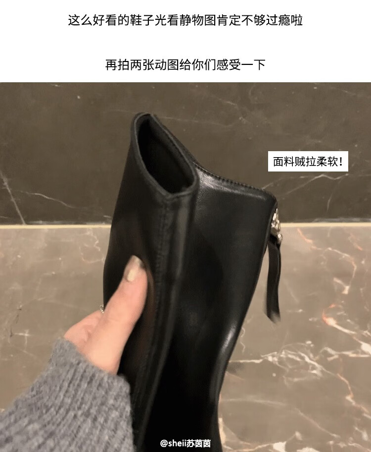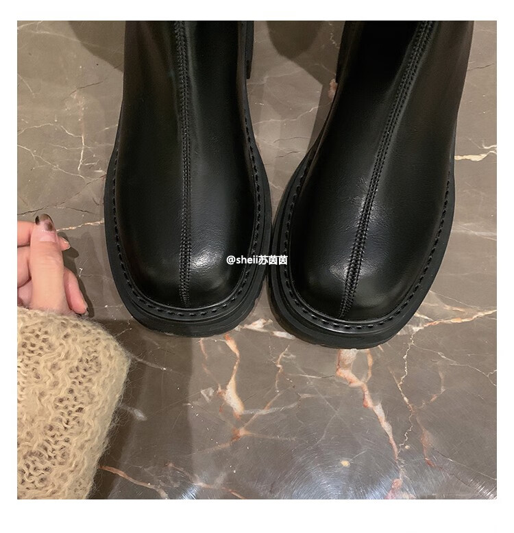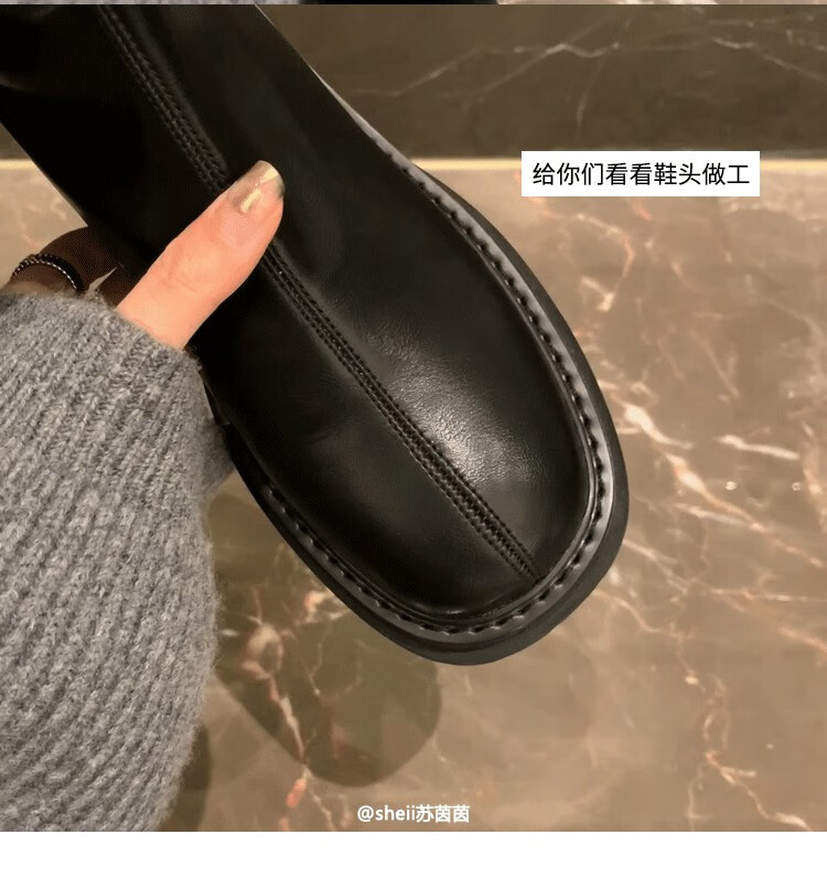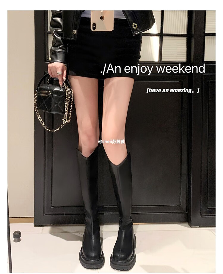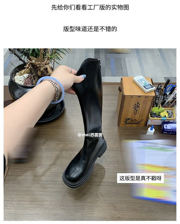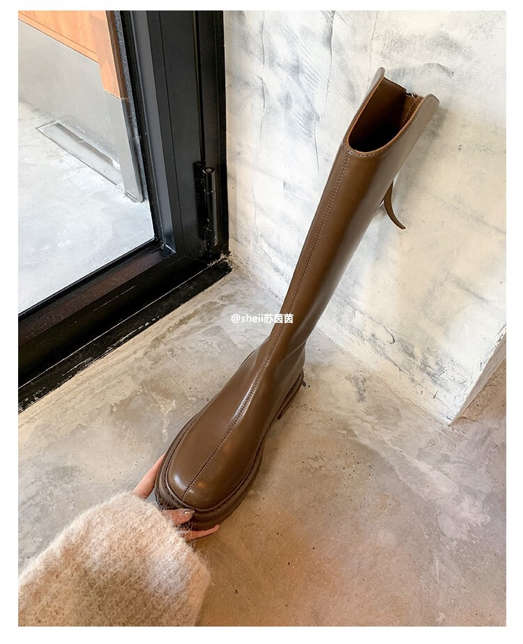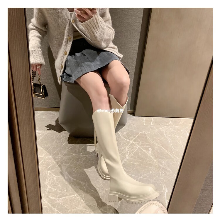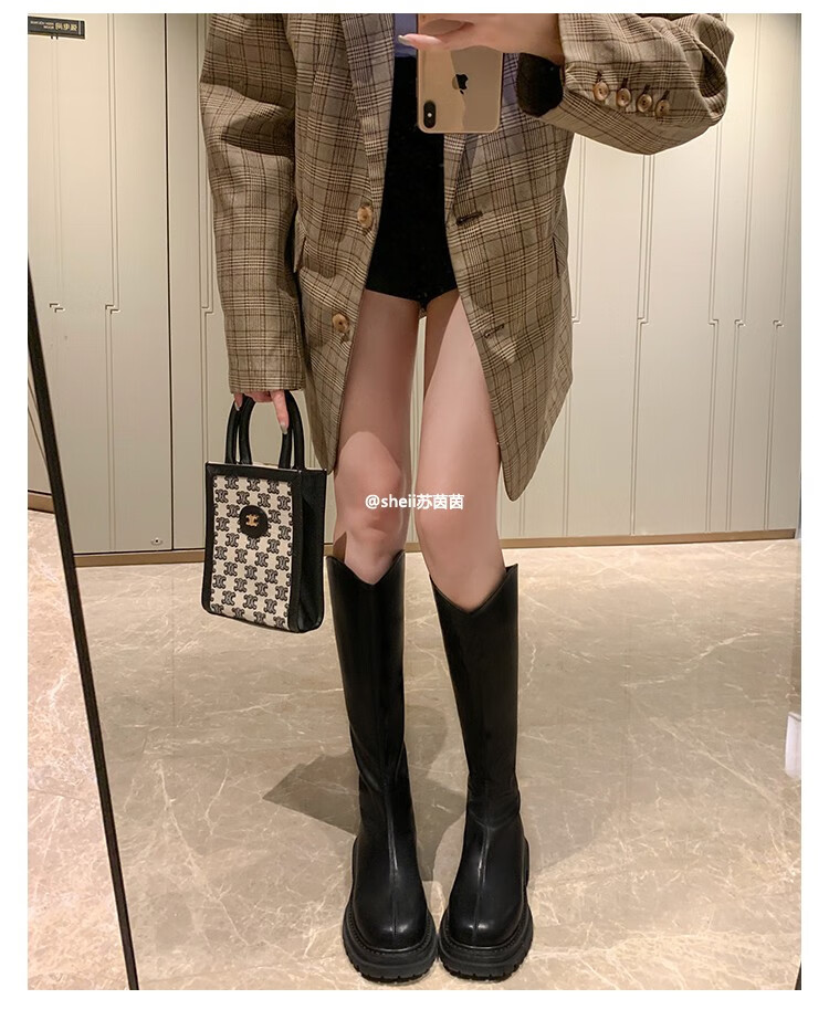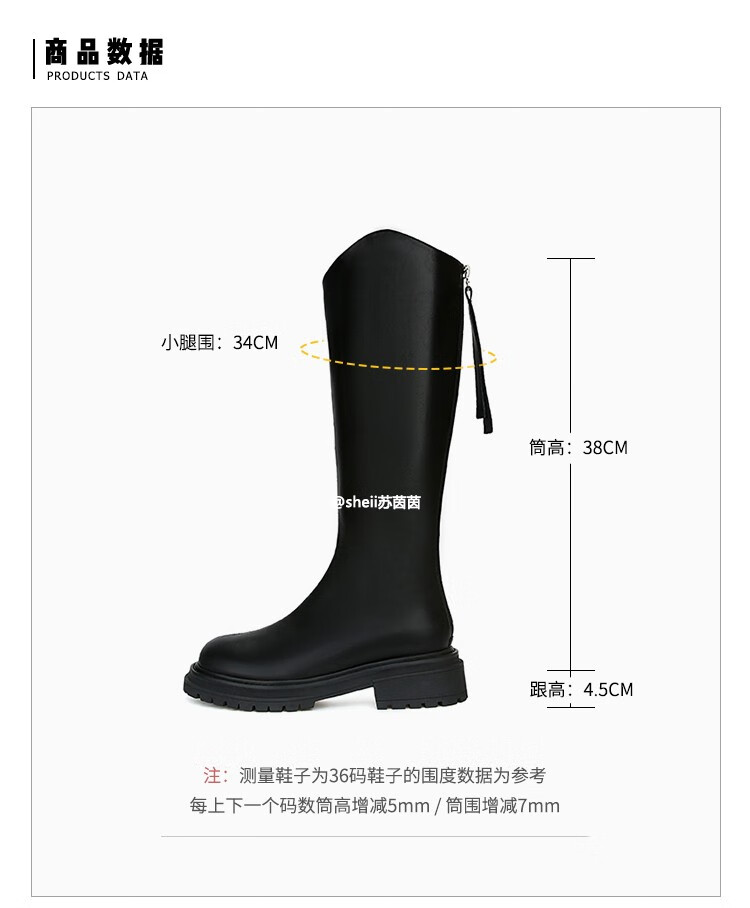 苏茵茵【蒋依依同款】女靴V口长筒靴粗跟高筒骑士靴加绒靴子女长靴冬季 黑色(单里) 37