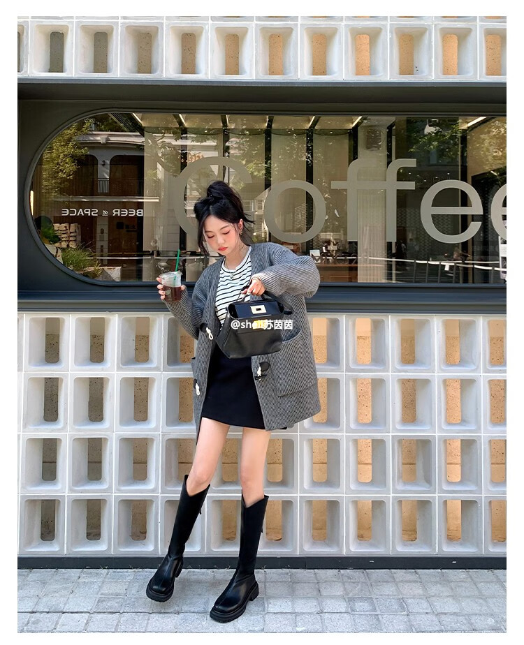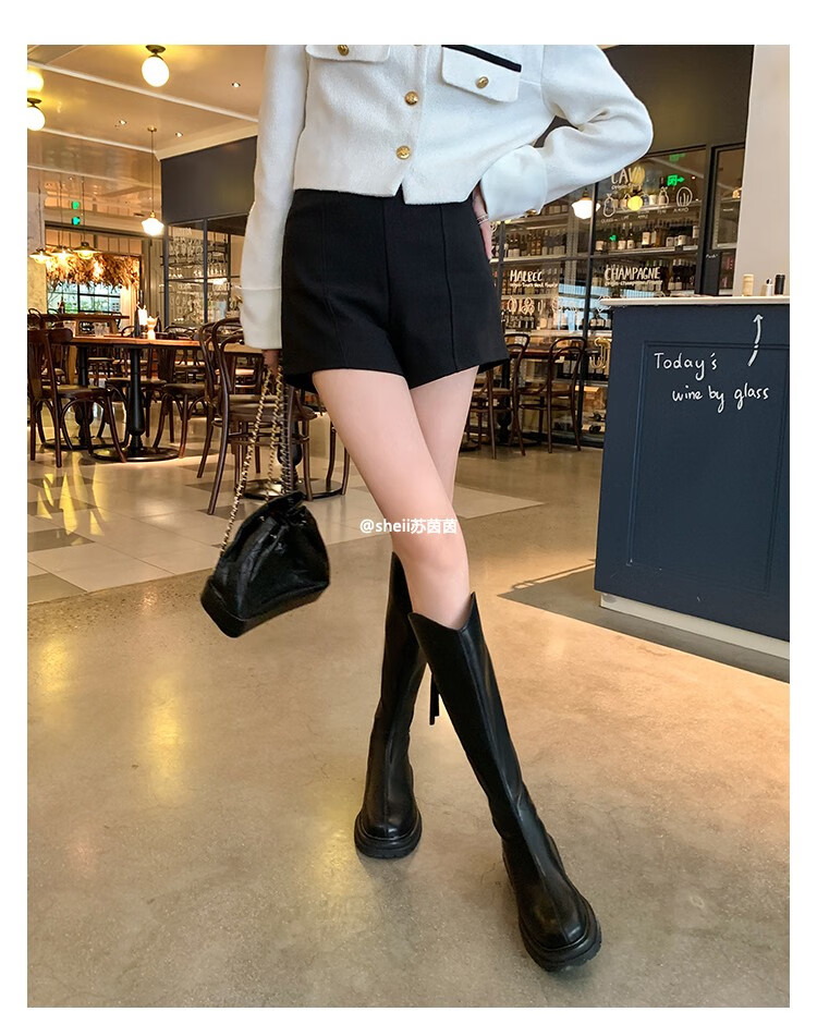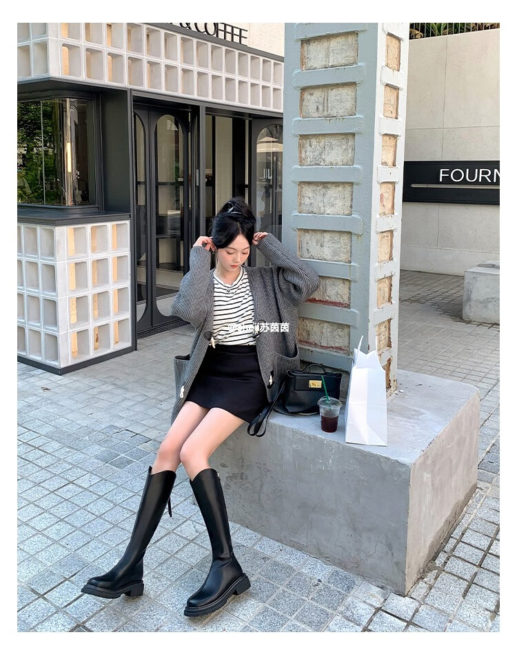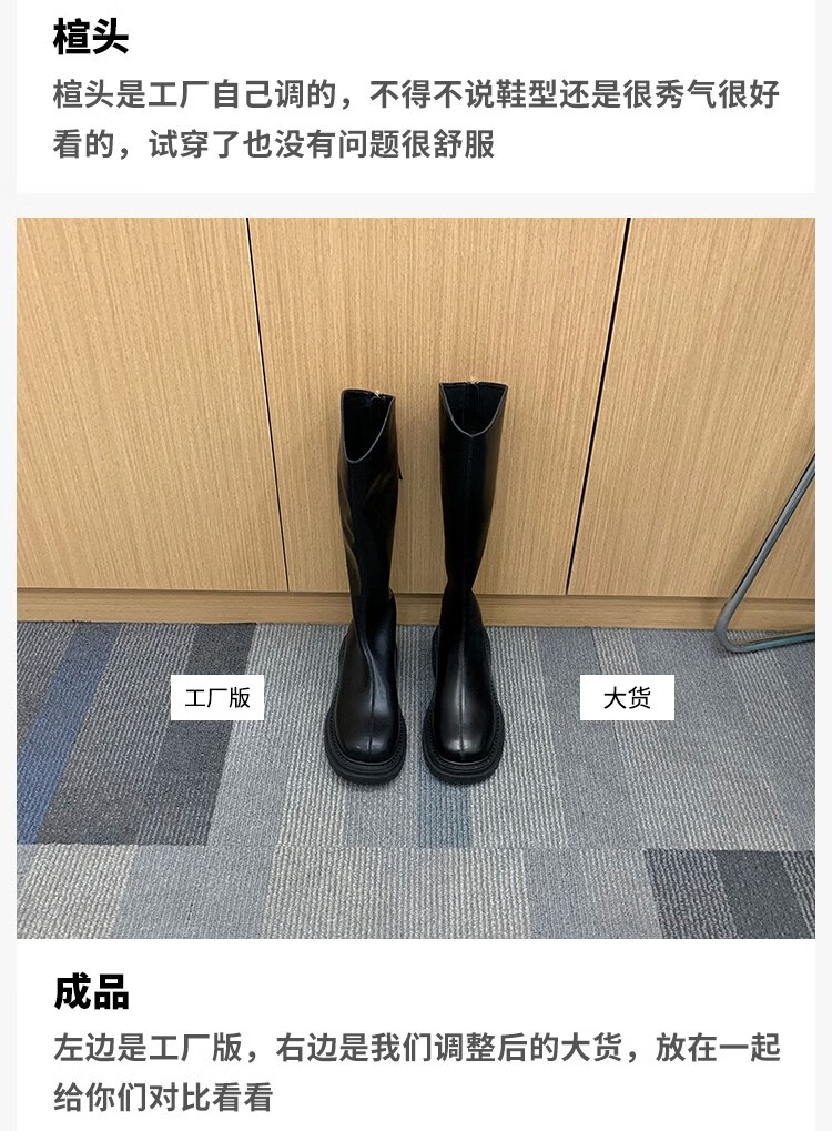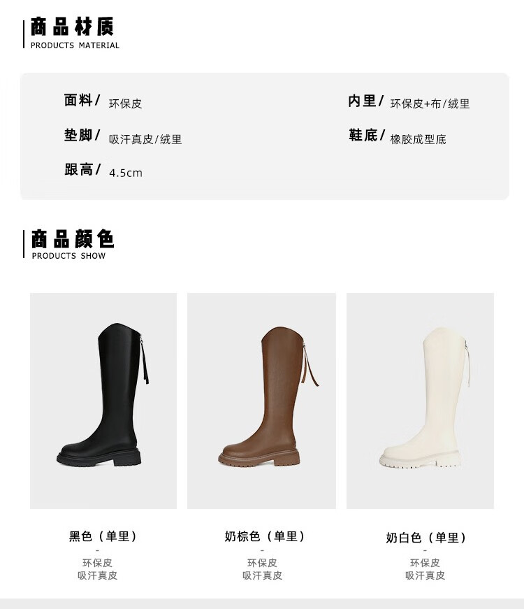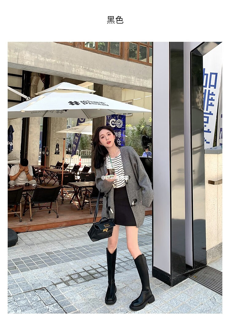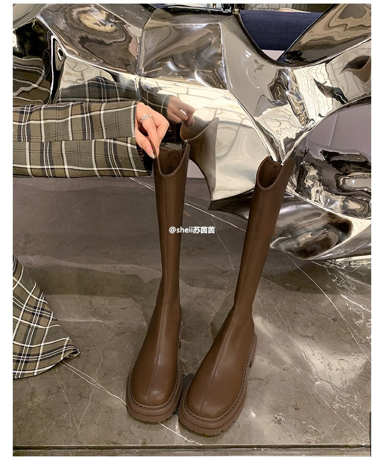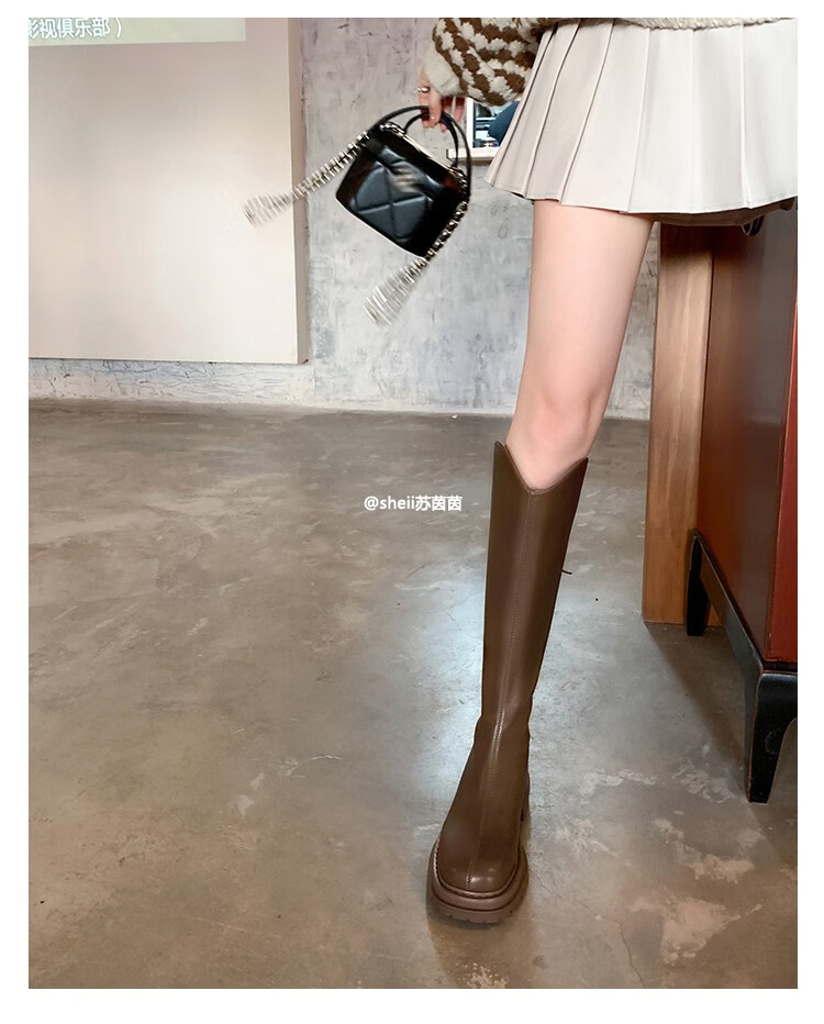 苏茵茵【蒋依依同款】女靴V口长筒靴粗跟高筒骑士靴加绒靴子女长靴冬季 黑色(单里) 37