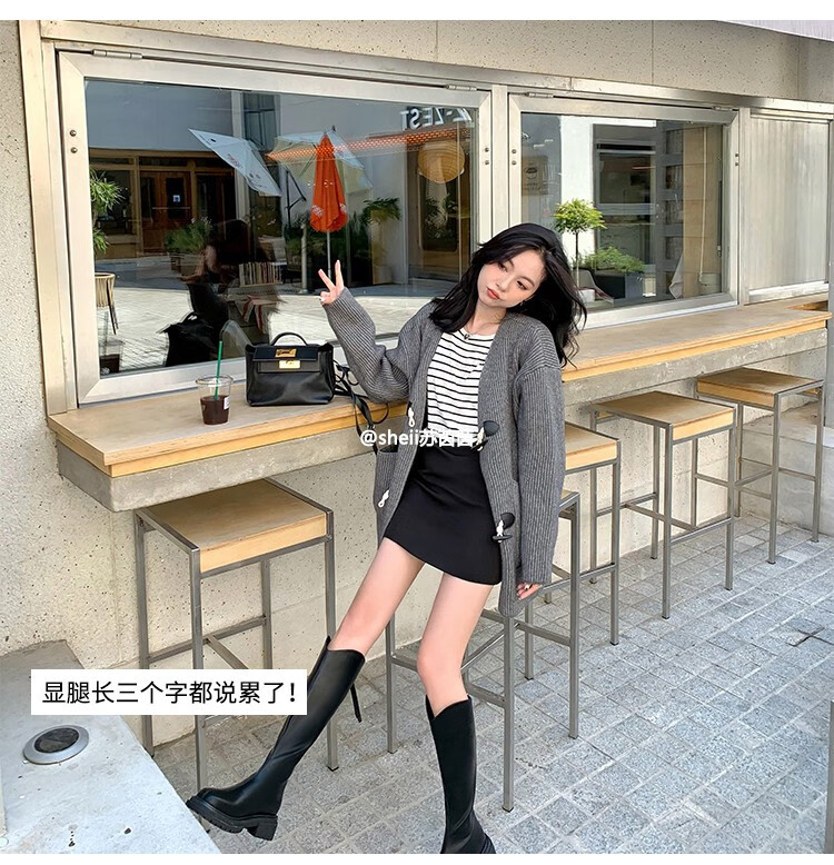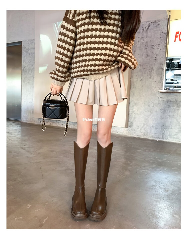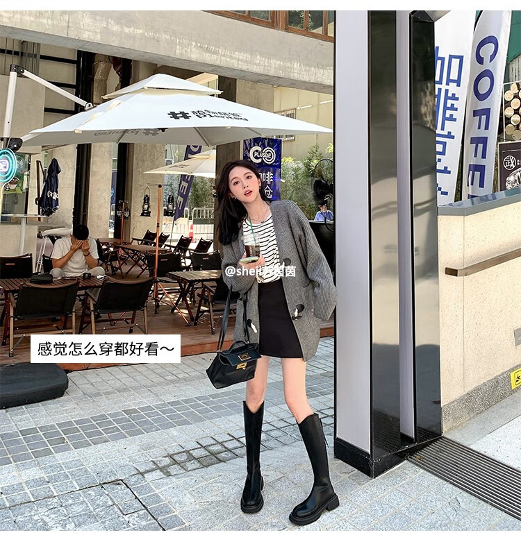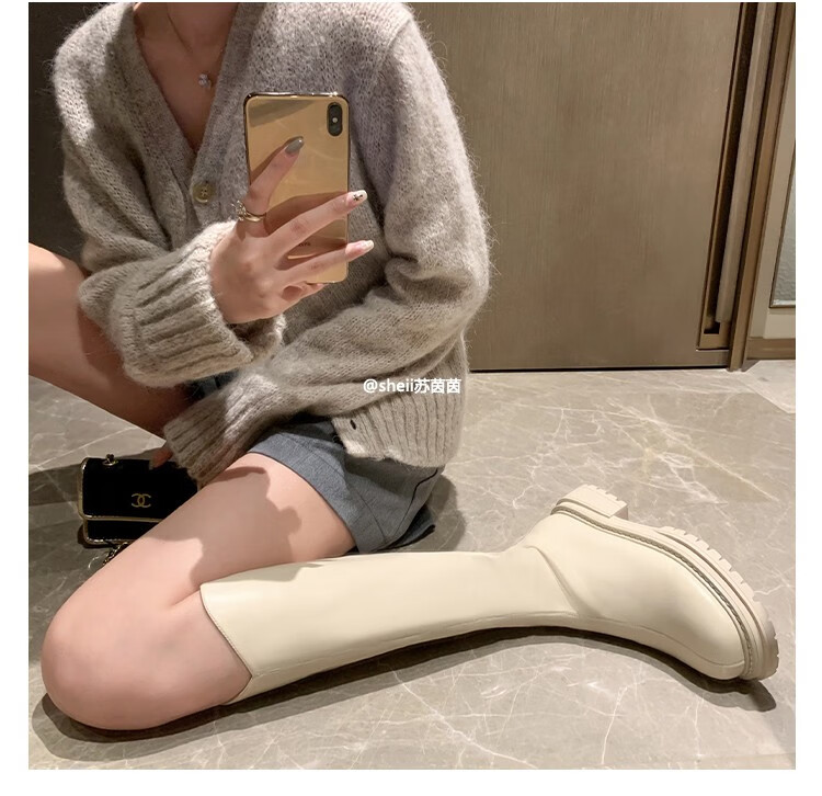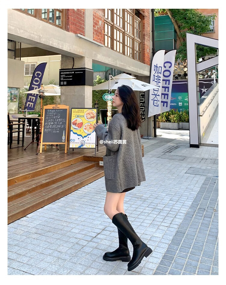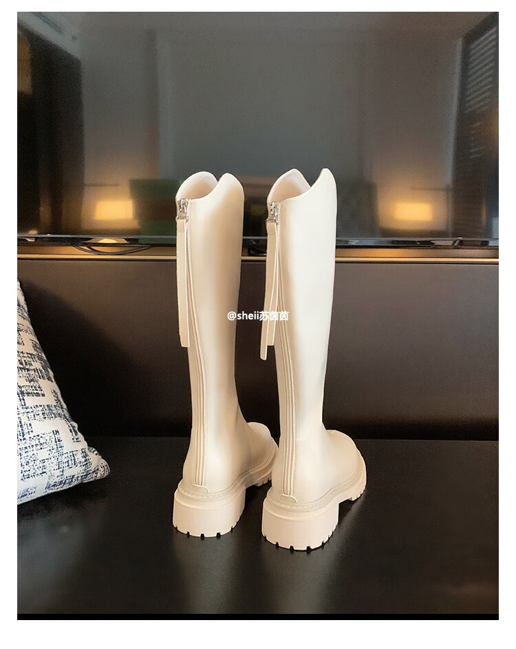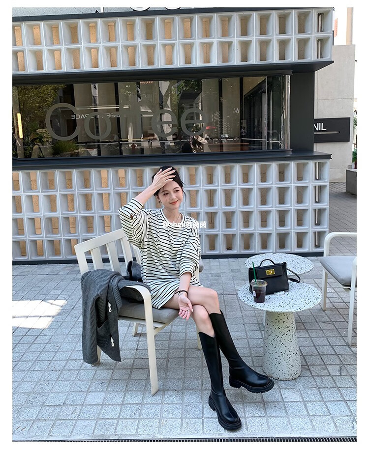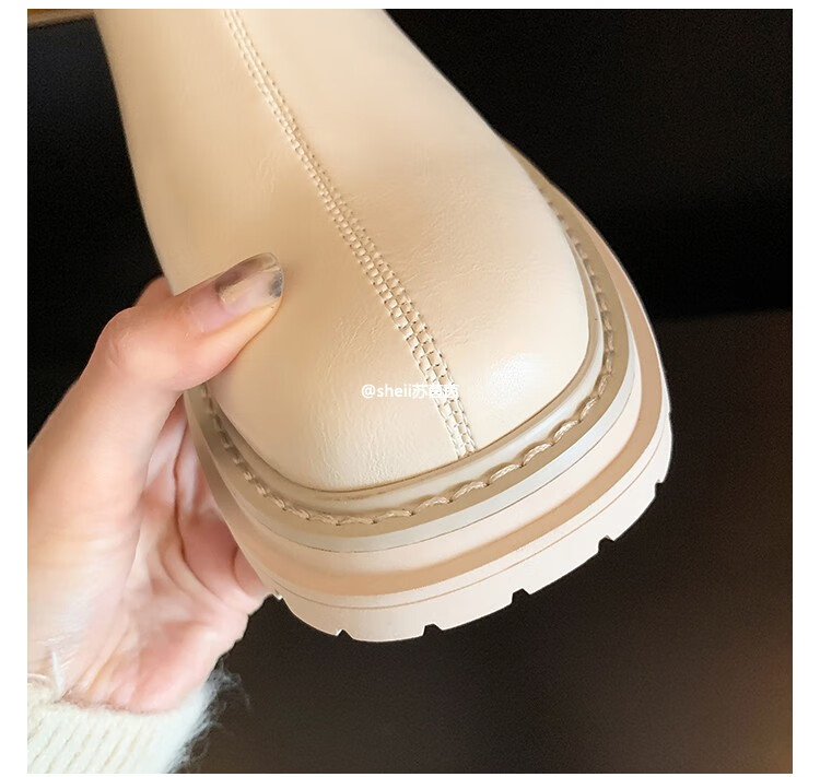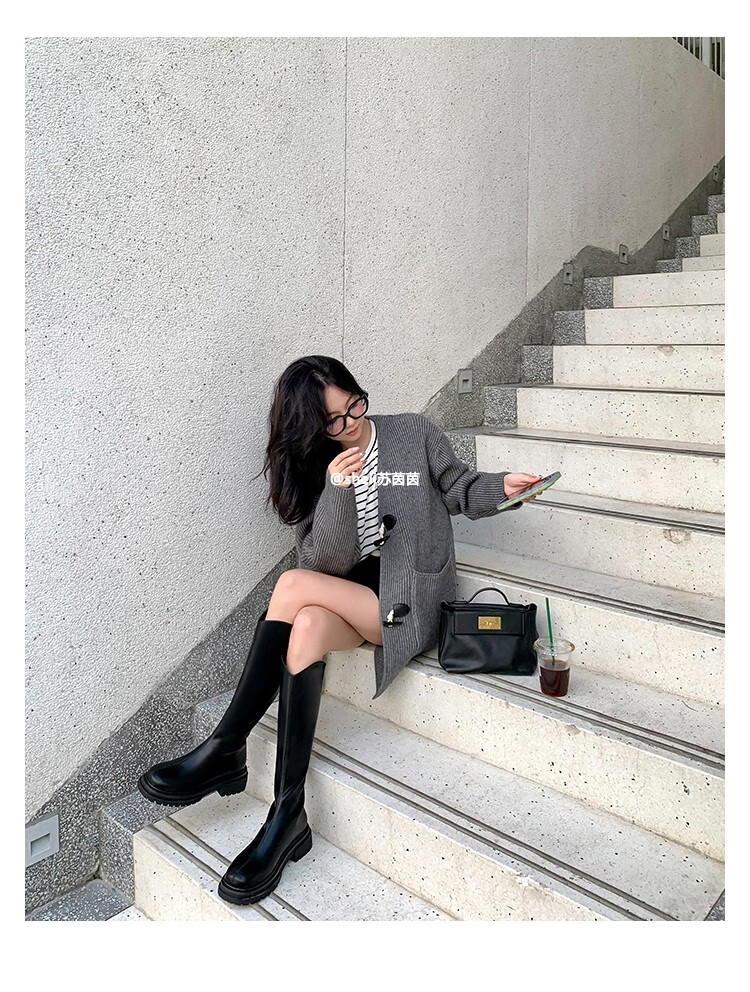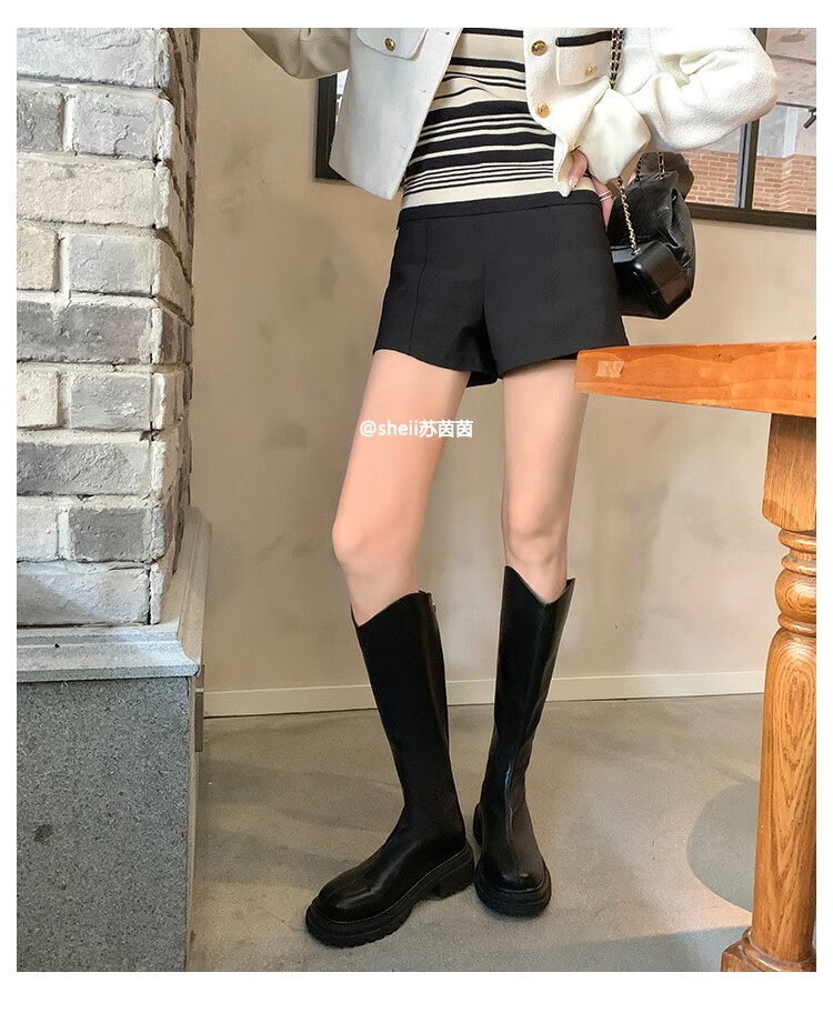 苏茵茵【蒋依依同款】女靴V口长筒靴粗跟高筒骑士靴加绒靴子女长靴冬季 黑色(单里) 37