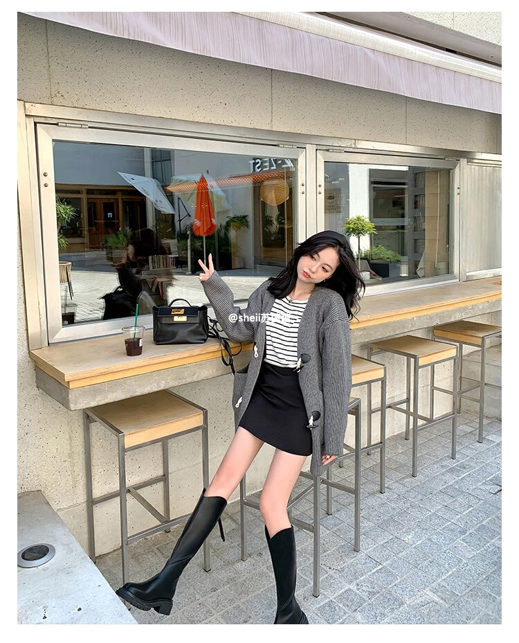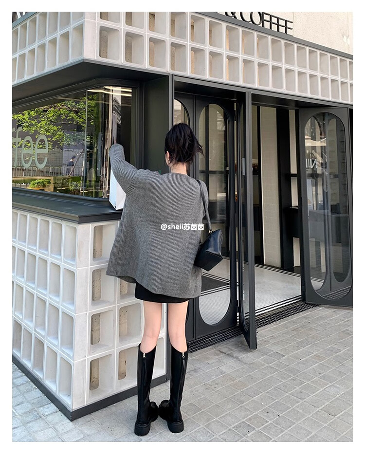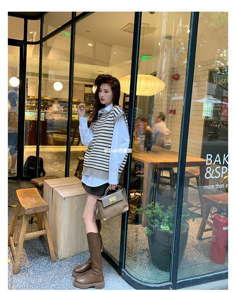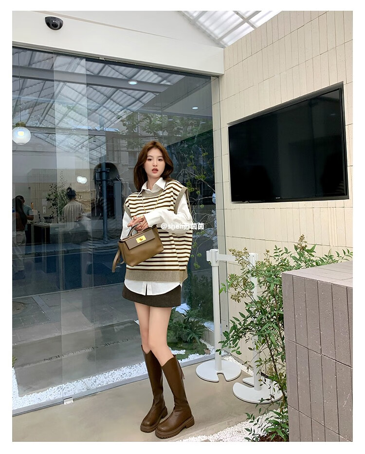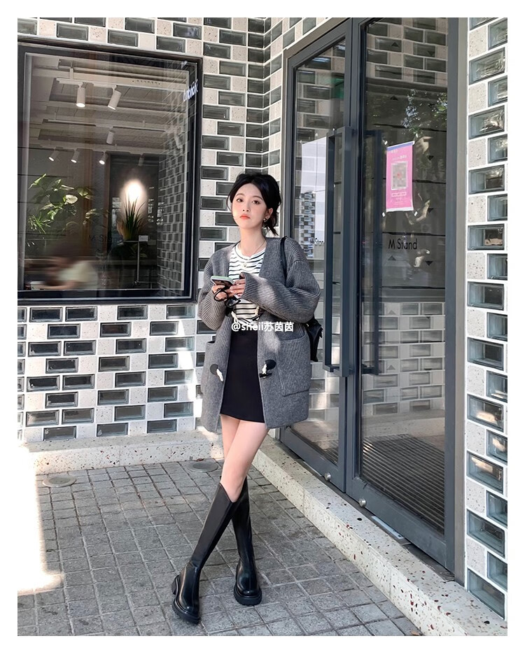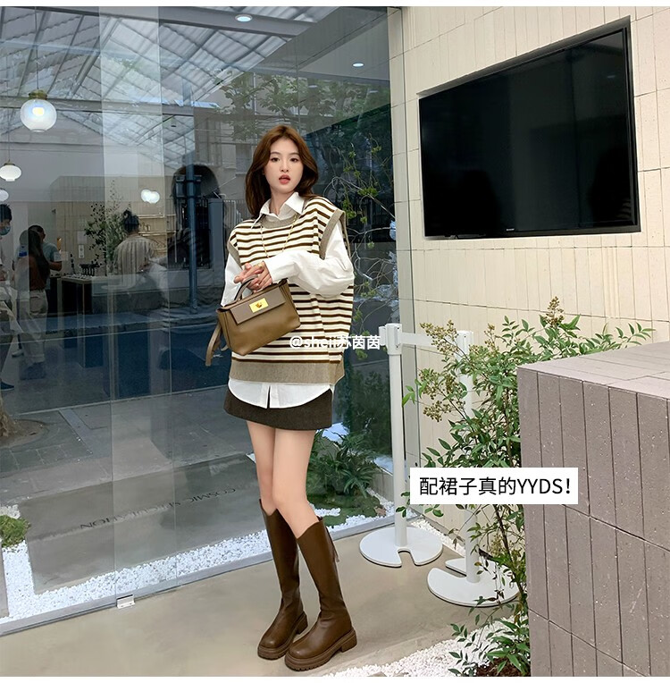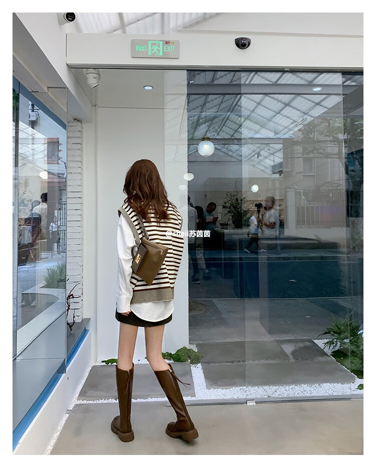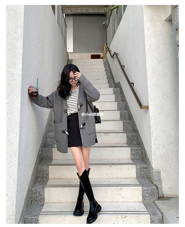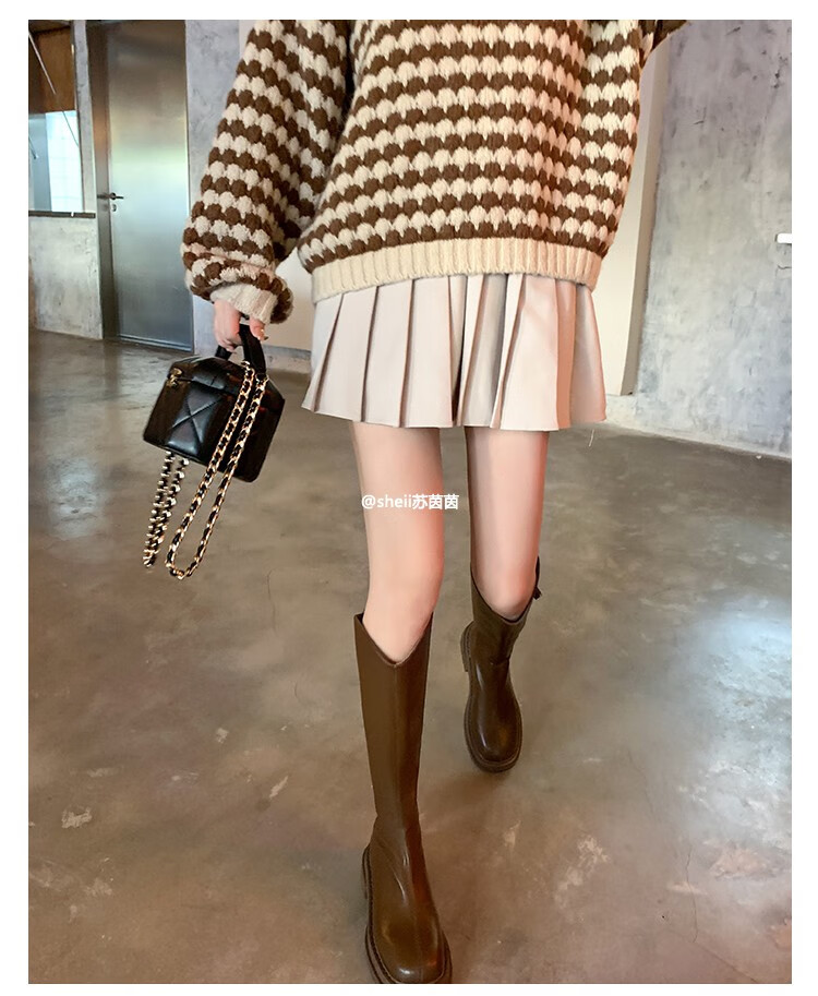 苏茵茵【蒋依依同款】女靴V口长筒靴粗跟高筒骑士靴加绒靴子女长靴冬季 黑色(单里) 37