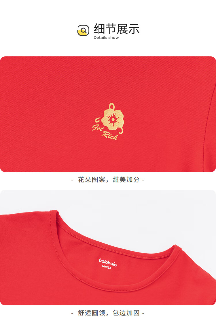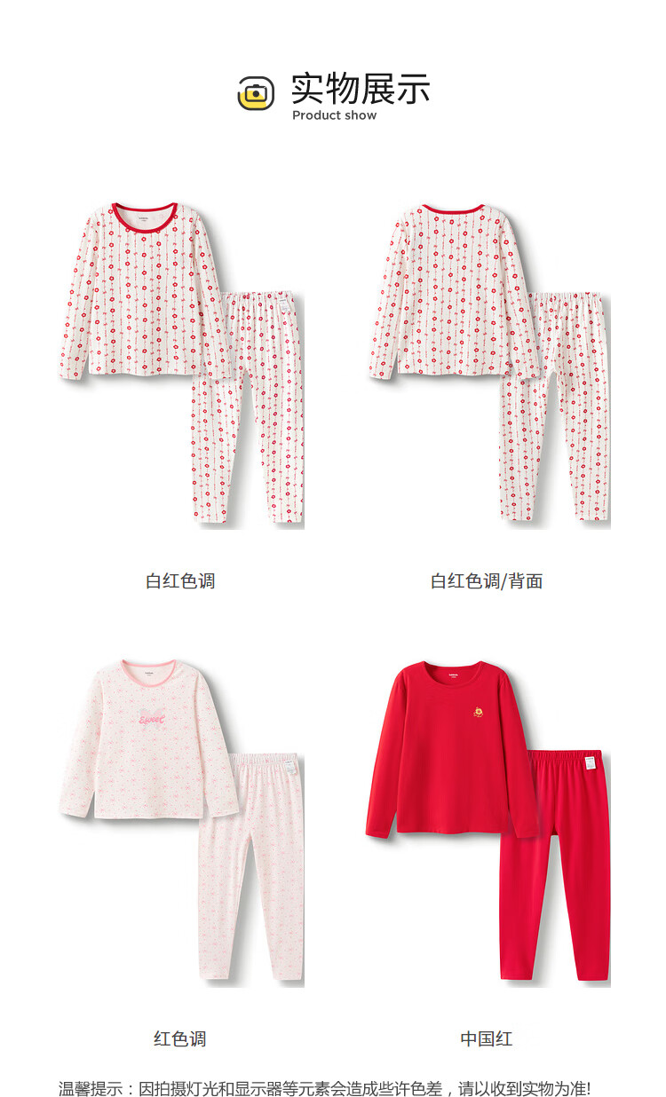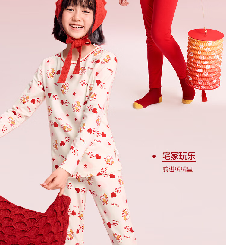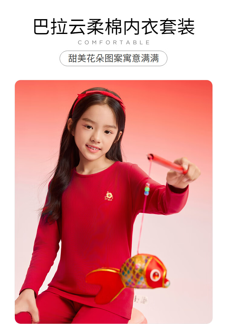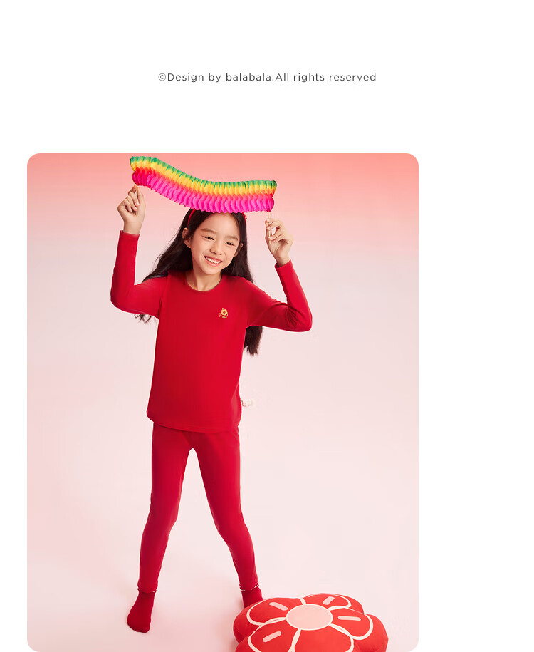 巴拉巴拉儿童秋衣秋裤套装蛇年女童保暖内衣本命年红色睡衣潮209125169004