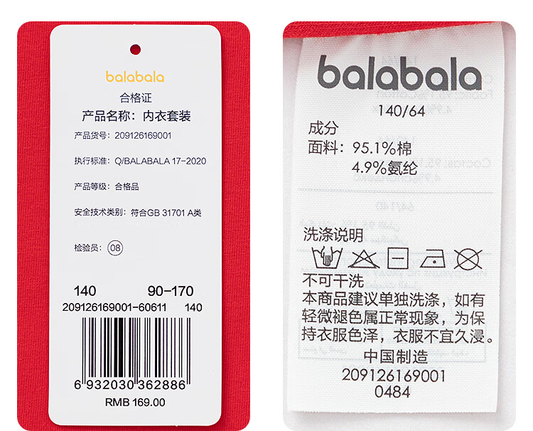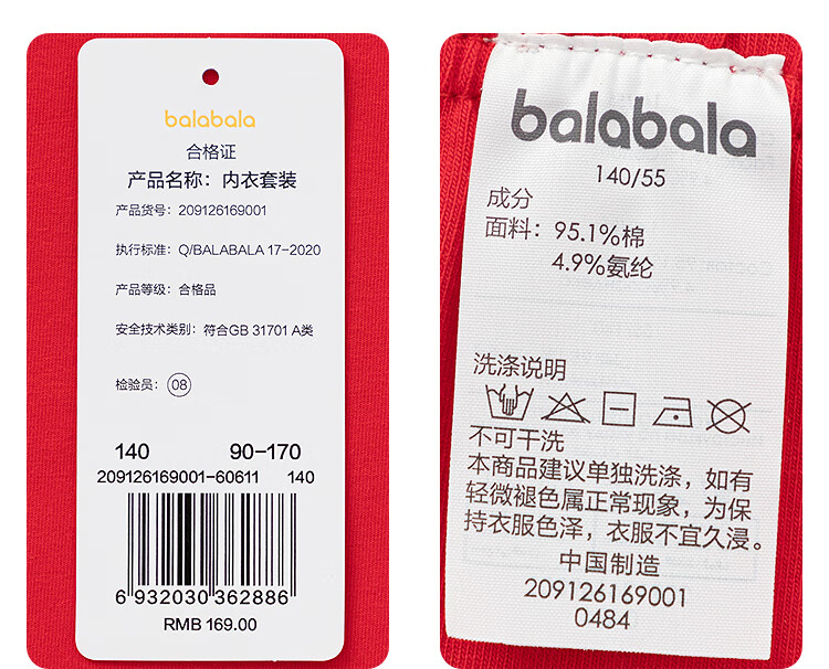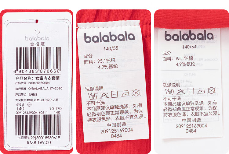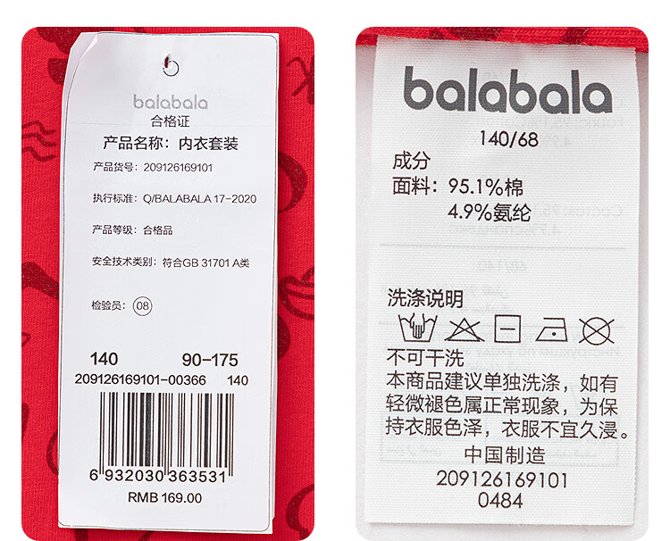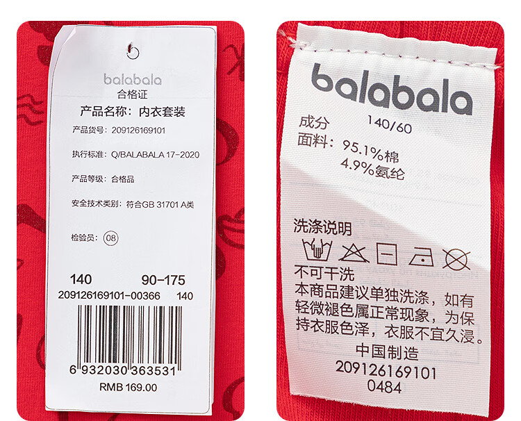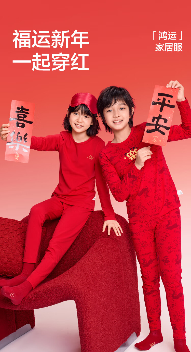巴拉巴拉儿童秋衣秋裤套装蛇年女童保暖内衣本命年红色睡衣潮209125169004