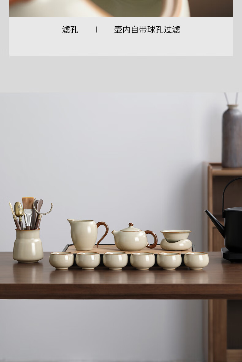 尚言坊汝窑功夫茶具整套高档家用陶瓷泡茶壶茶杯器具全套装乔迁生日礼物