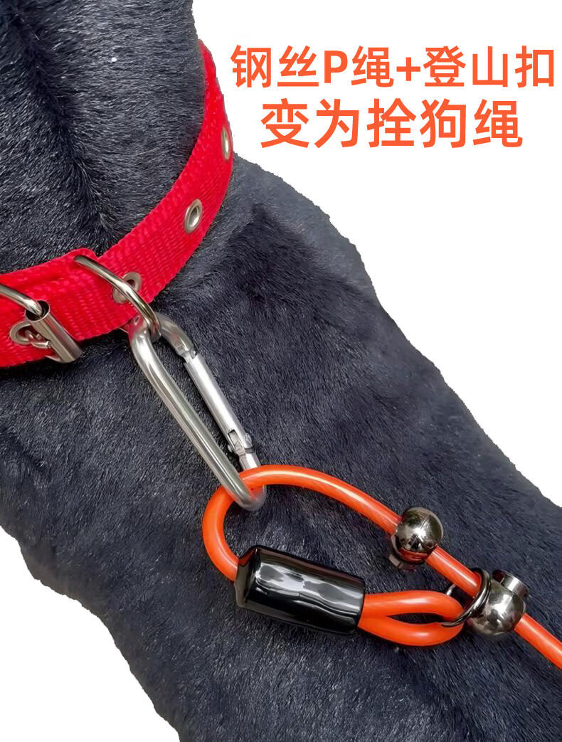 斯派科狗狗铁链牵引绳P绳防爆冲防水防咬断钢丝P链改拴狗绳遛大狗训犬绳 升级万向轮泡棉手柄--黑色 绳粗5mm*绳长150cm【建议5-150斤】