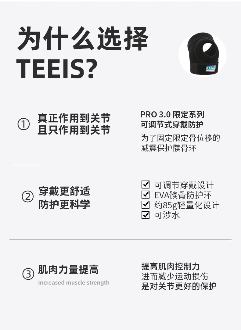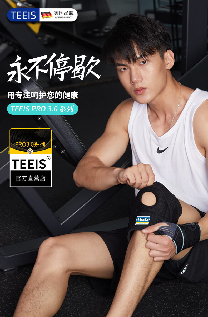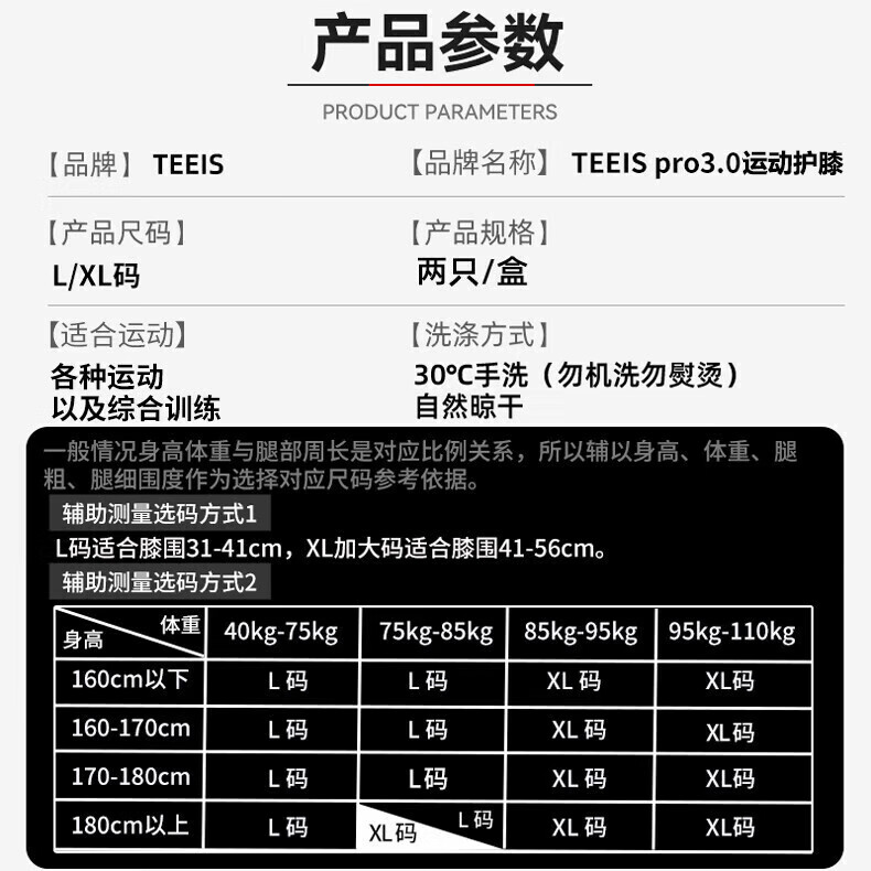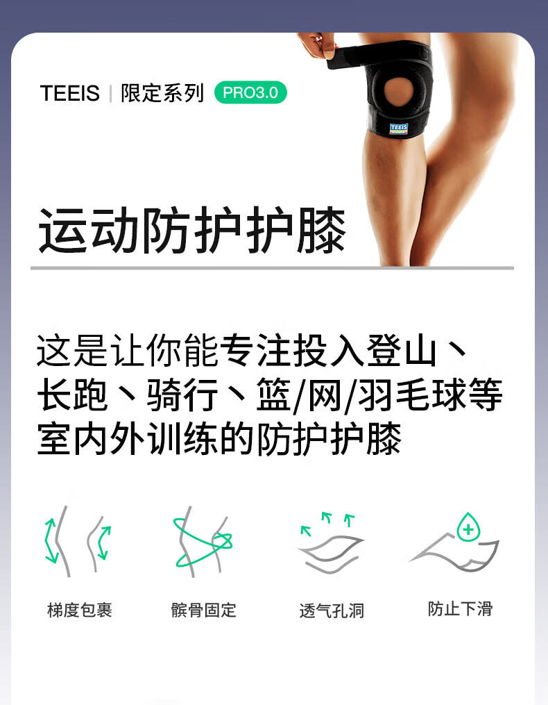 TEEIS德国护膝男士专用膝盖运动女医用半月板韧带髌骨损伤爬登山羽毛球 可调节专业护膝 PRO3.0系列 标准码丨 适合80-170斤丨两只装