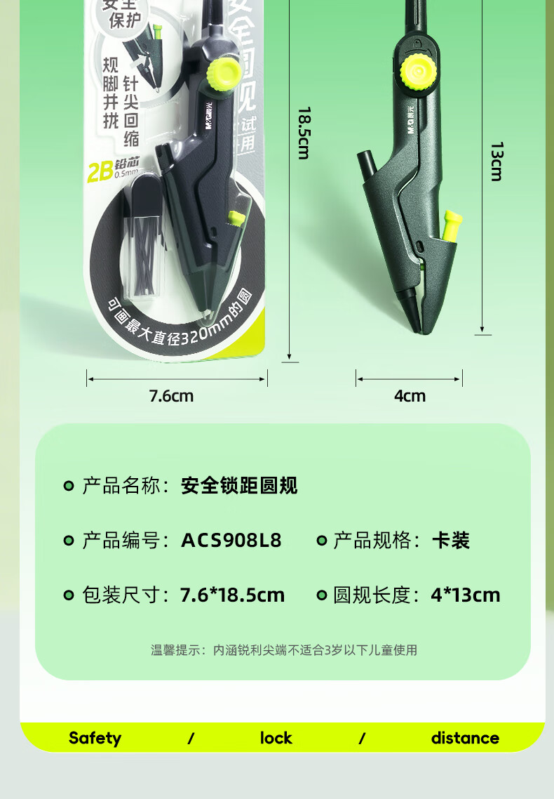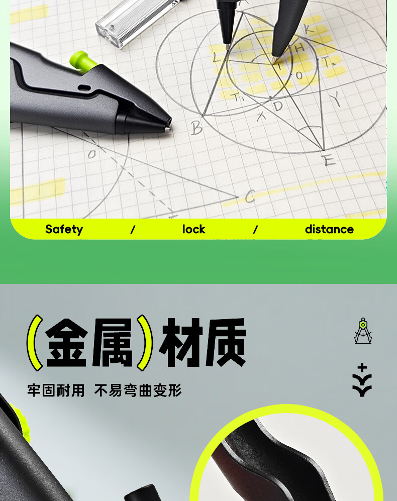 晨光(M&G)锁距圆规6年级专用专业绘图耐用学生中考高考初高中通用0.5 【新款锁距圆规】1个+4件套套尺+100根替芯