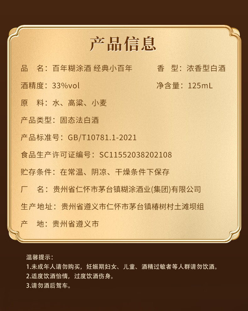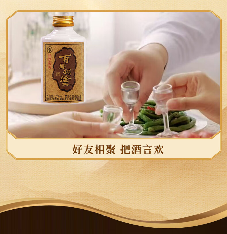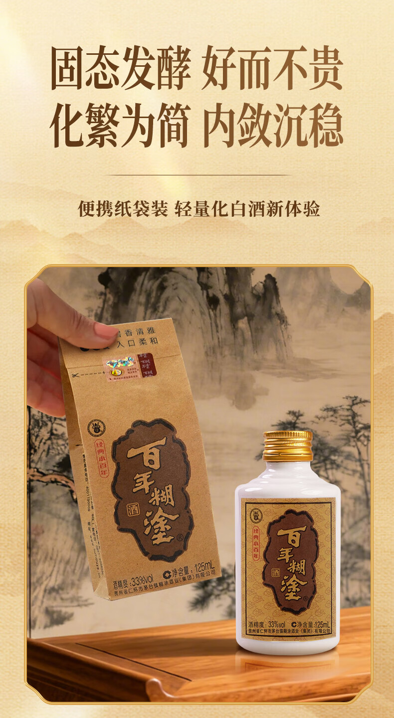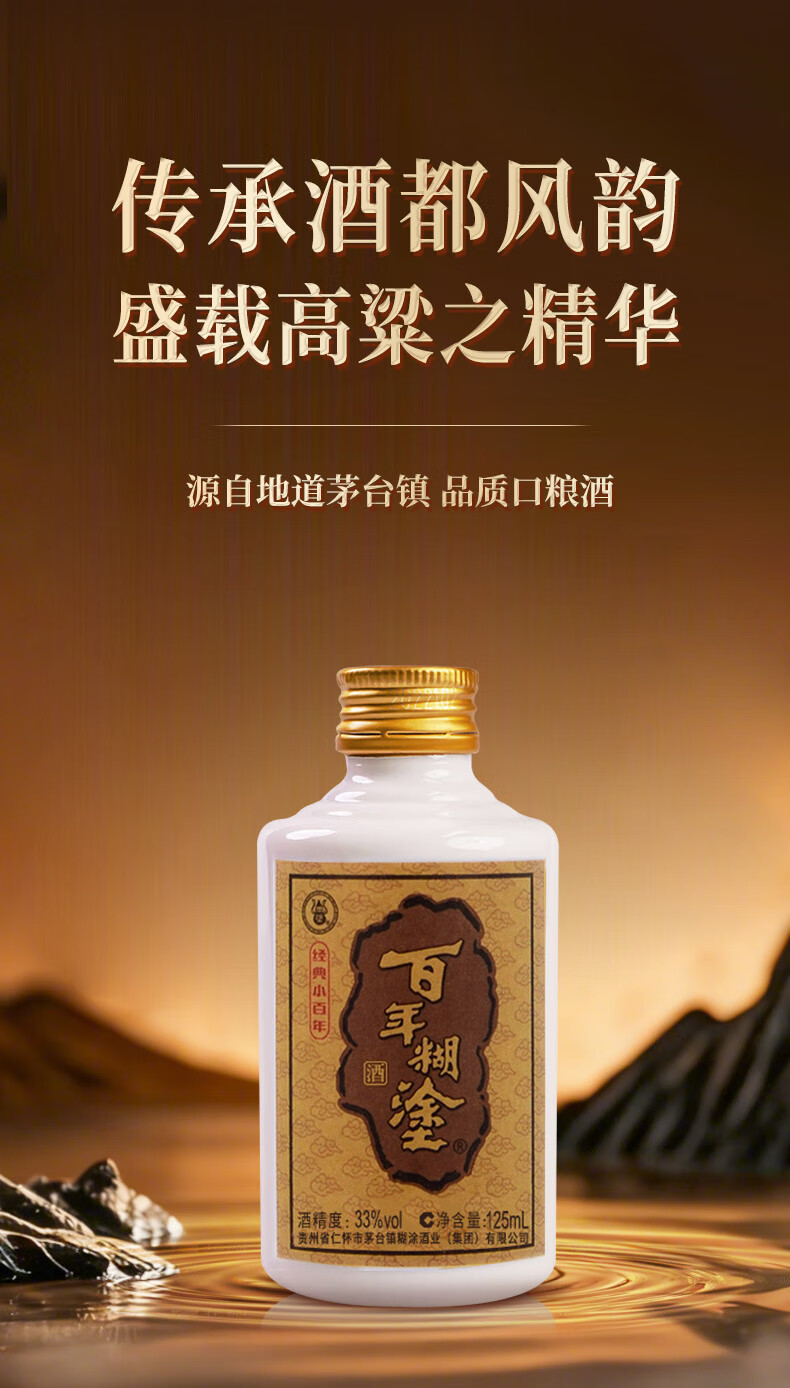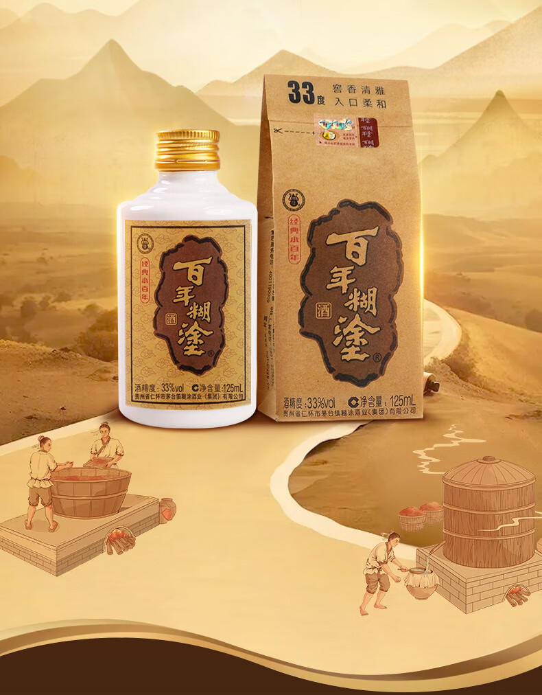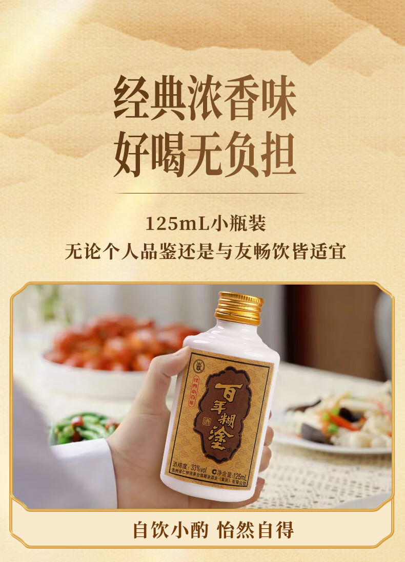 百年糊涂经典小百年 33度浓香型白酒 贵州名酒 粮食酒 小酒 送礼热门商品 33度 125mL 24瓶 咨询下单有福利