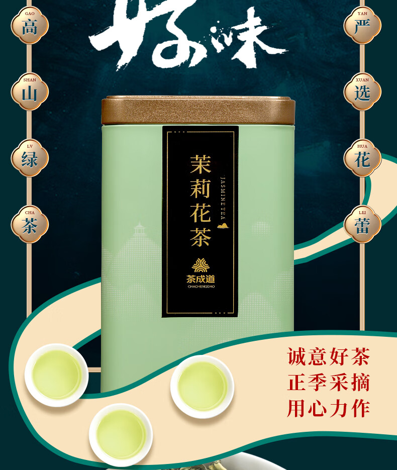 茶成道茉莉花茶茉莉绿茶茉莉香螺 2025年新茶叶 花香浓郁 铁罐装 【200克】100克*2罐