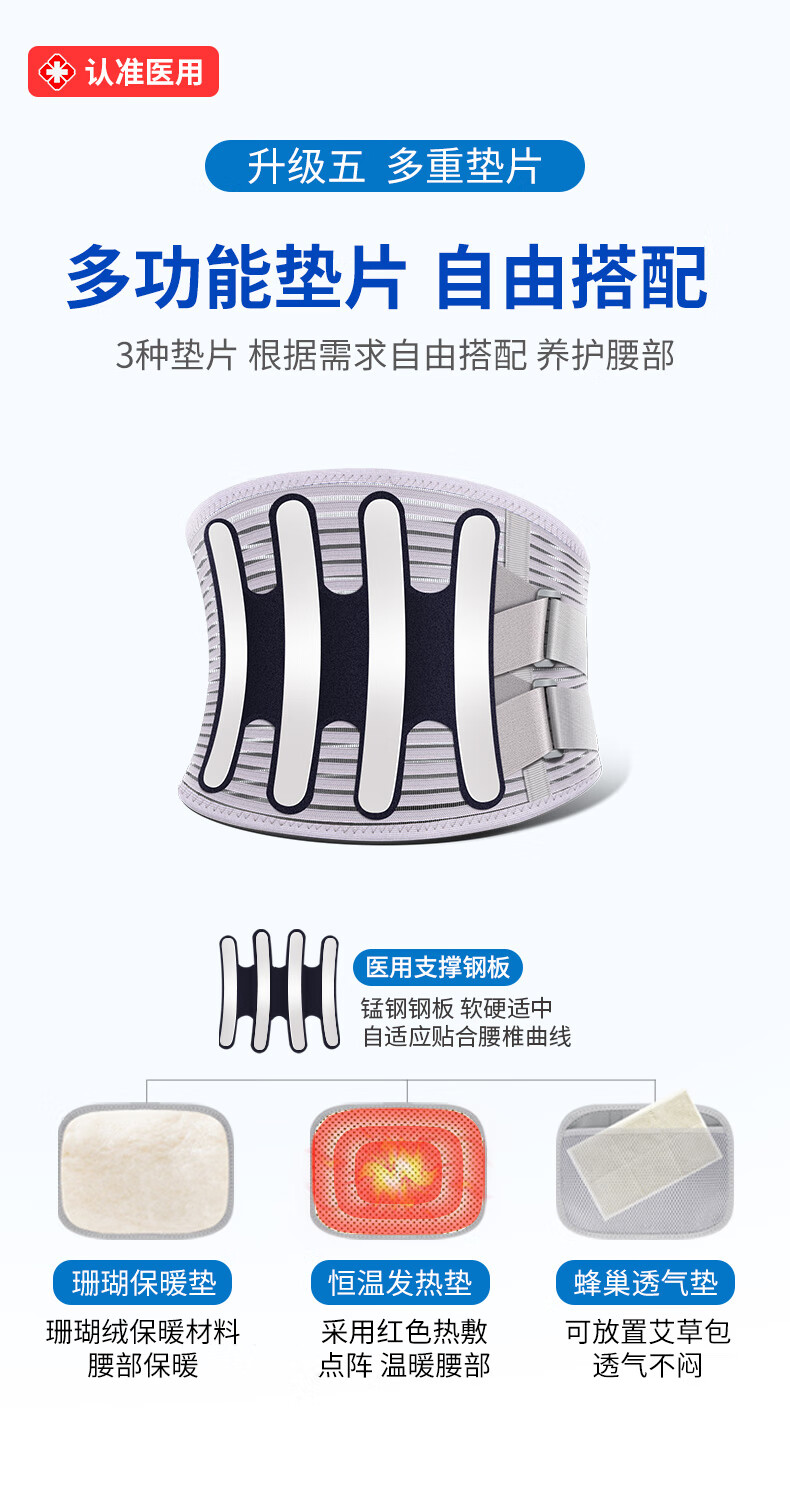 立姿(lizi)医用护腰带腰间盘突出腰肌劳损腰椎围托术后钢板腰部支撑护具V型L