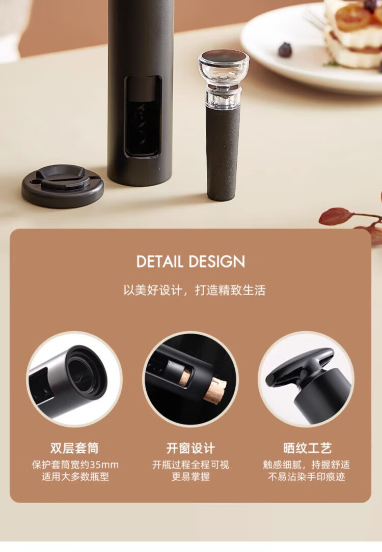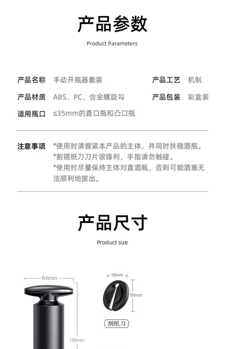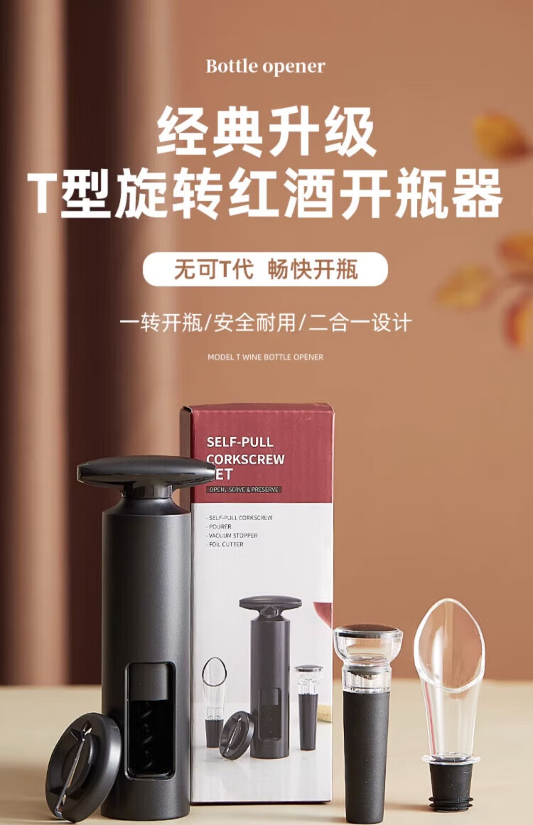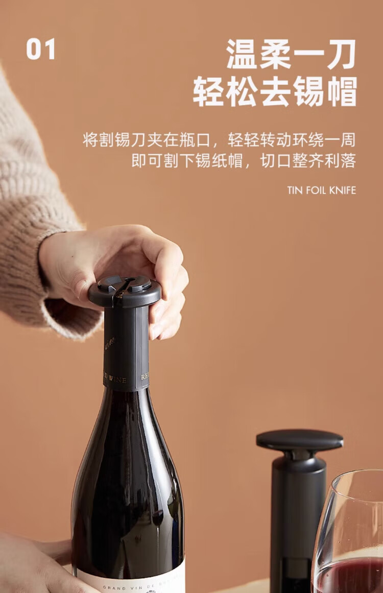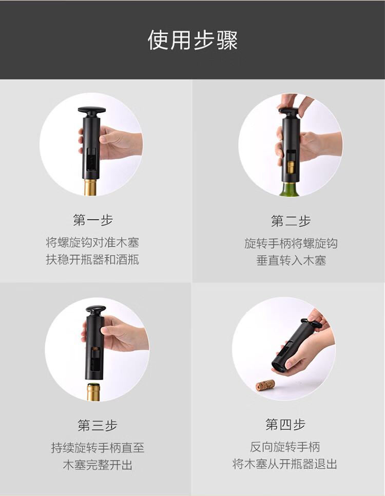 CKULH德国红酒开瓶器家用启酒器葡萄酒瓶塞起子神器网红手动开酒器酒具 安全气压红酒开瓶器【四件套】