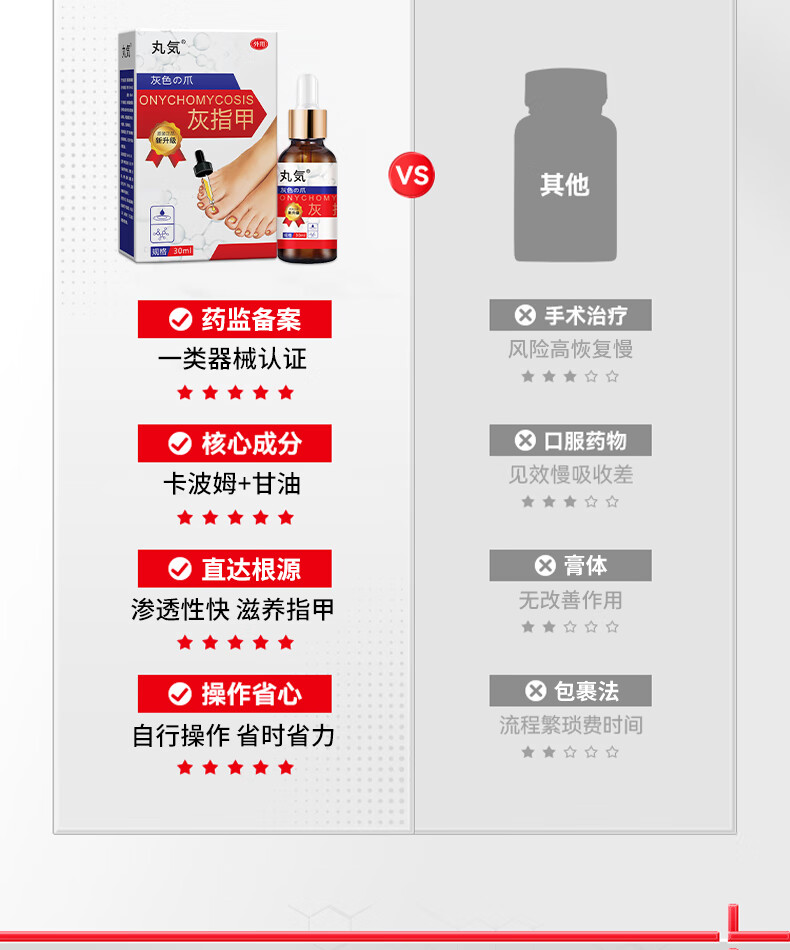 丸気灰指甲膏药指甲真菌感染灰甲净抑菌液医用黄甲灰甲坏甲专用正品 两瓶装