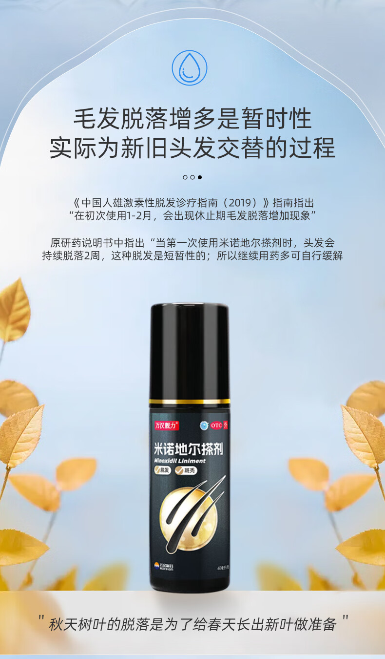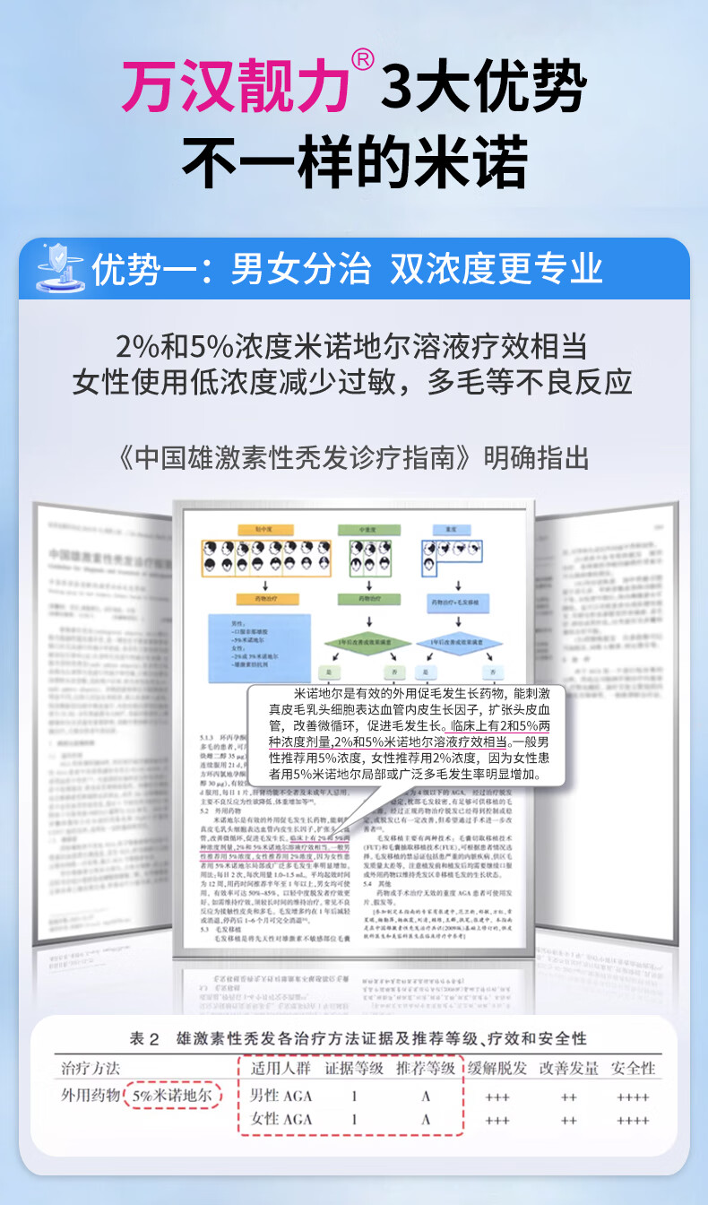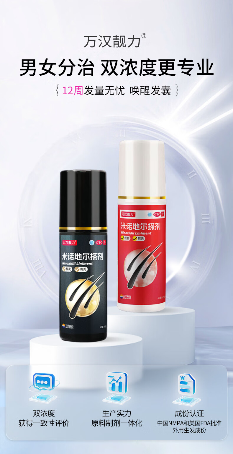 [万汉靓力] 2%米诺地尔搽剂 60ml*1瓶用于治疗脱发严重女专用防脱生发育发际线增液洗发水脱发白 【重度脱发体验款】60ml*1盒