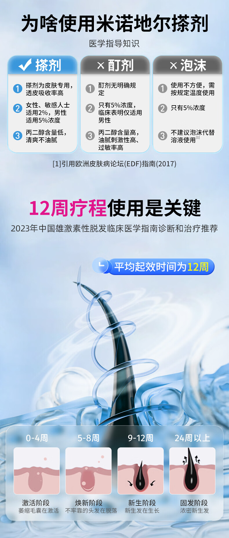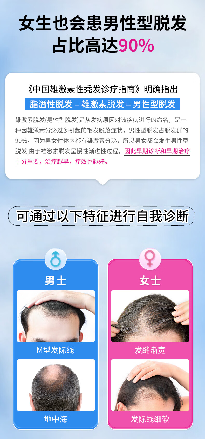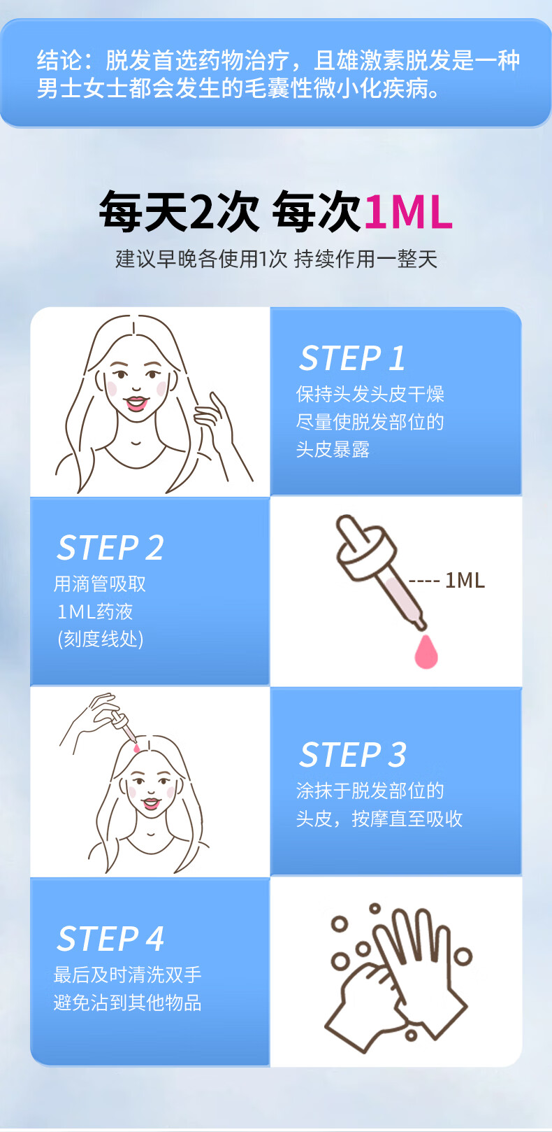 [万汉靓力] 2%米诺地尔搽剂 60ml*1瓶用于治疗脱发严重女专用防脱生发育发际线增液洗发水脱发白 【重度脱发体验款】60ml*1盒