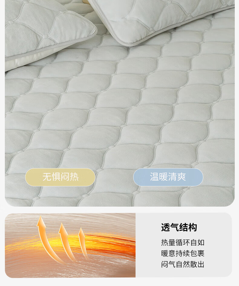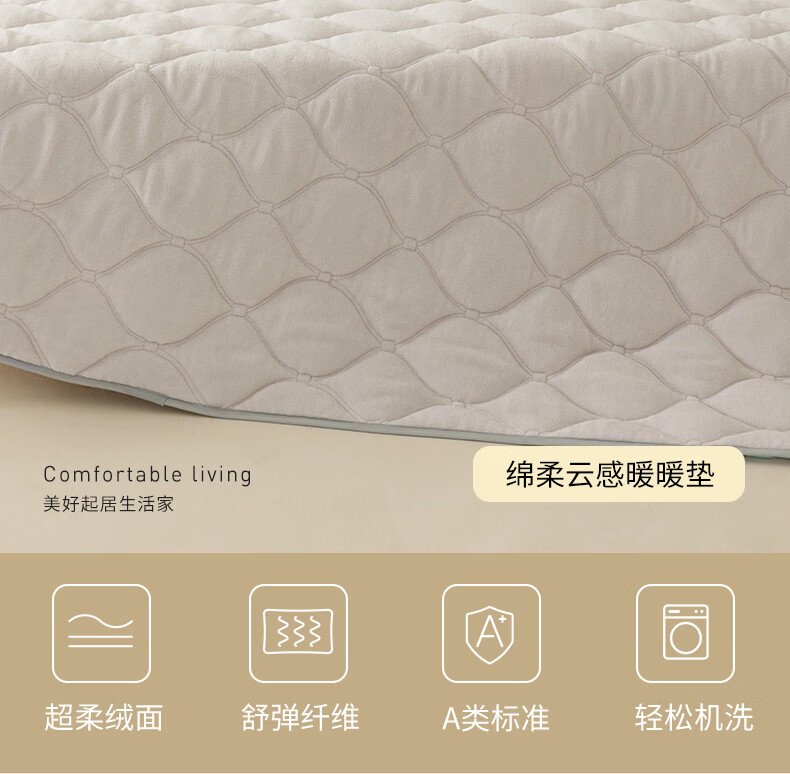 一默床垫发热垫床护垫褥软垫绵柔云感暖暖垫单双人冬天榻榻米床褥床垫 米驼丨母婴A类丨温暖蓄热 1.5M*2M绑带丨不含枕套