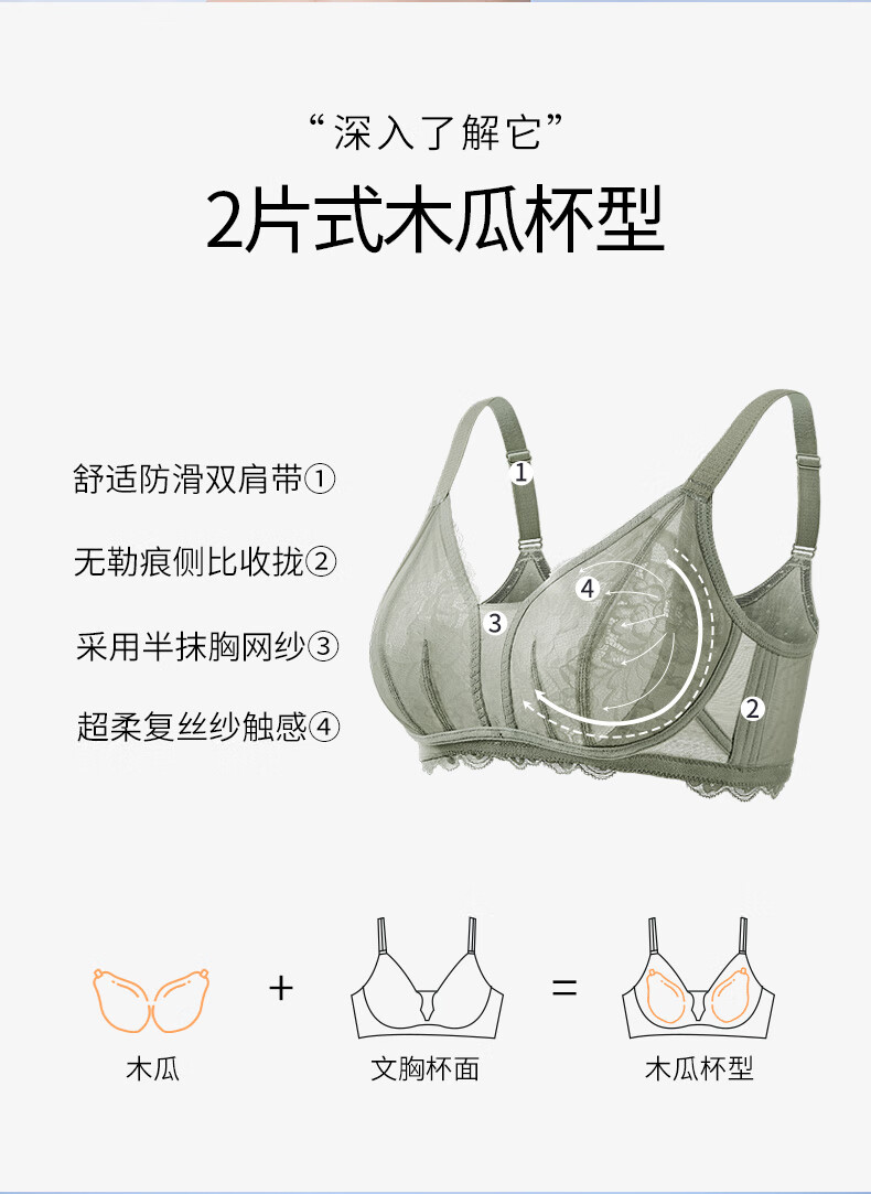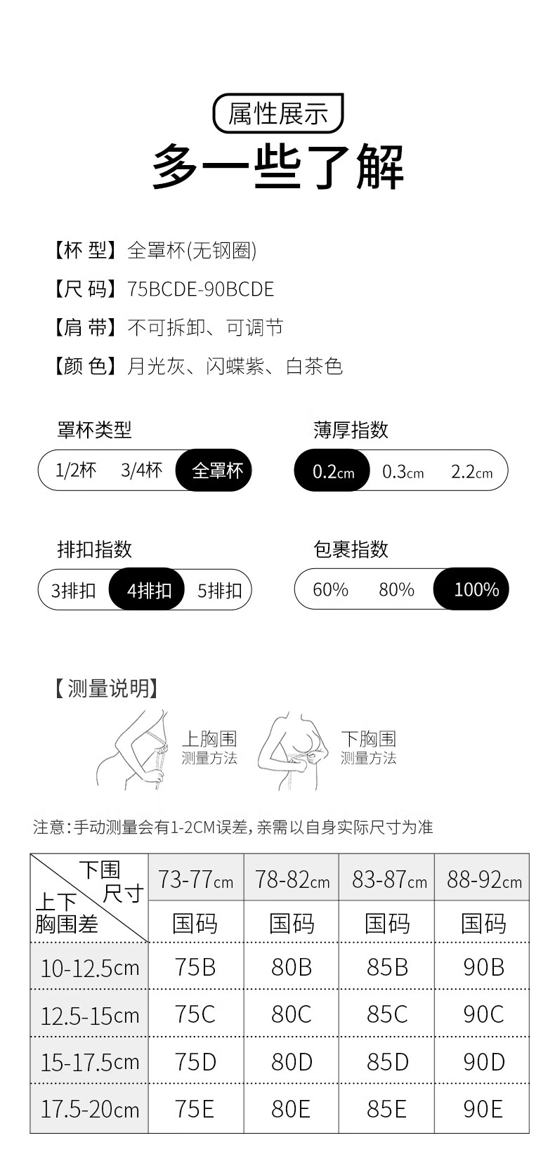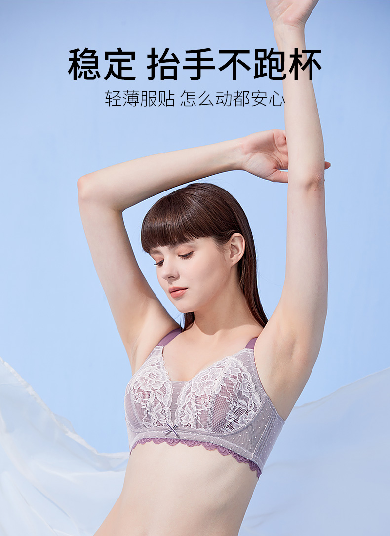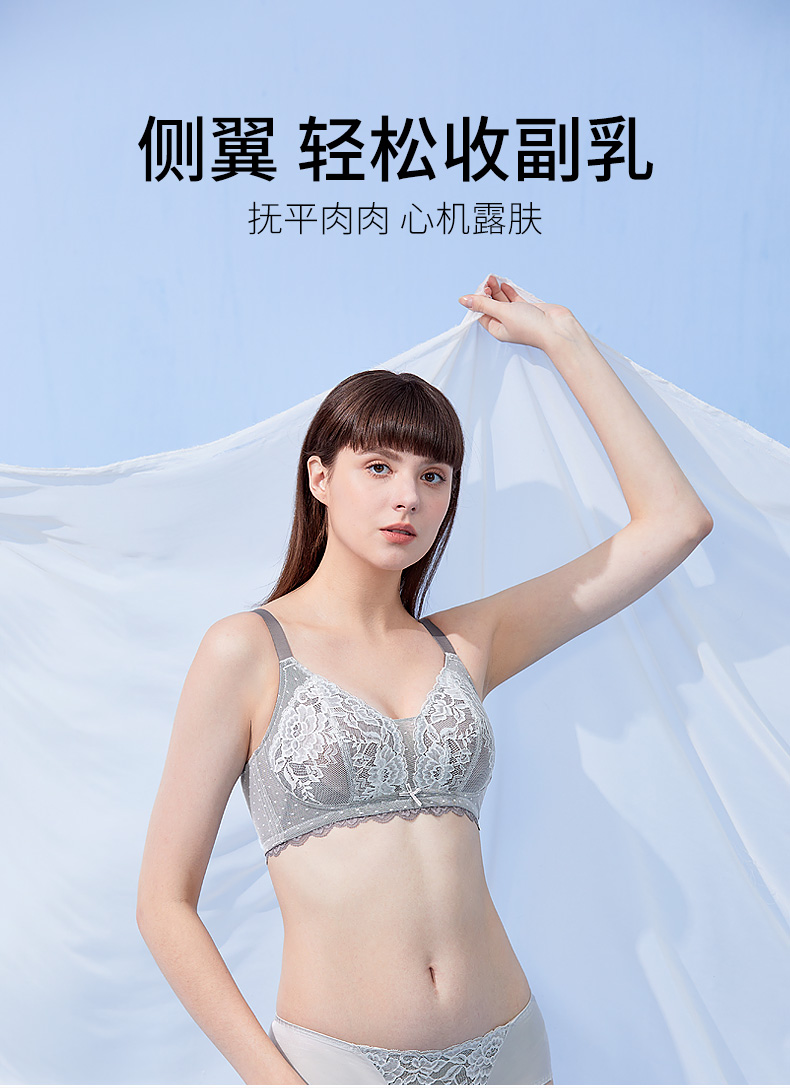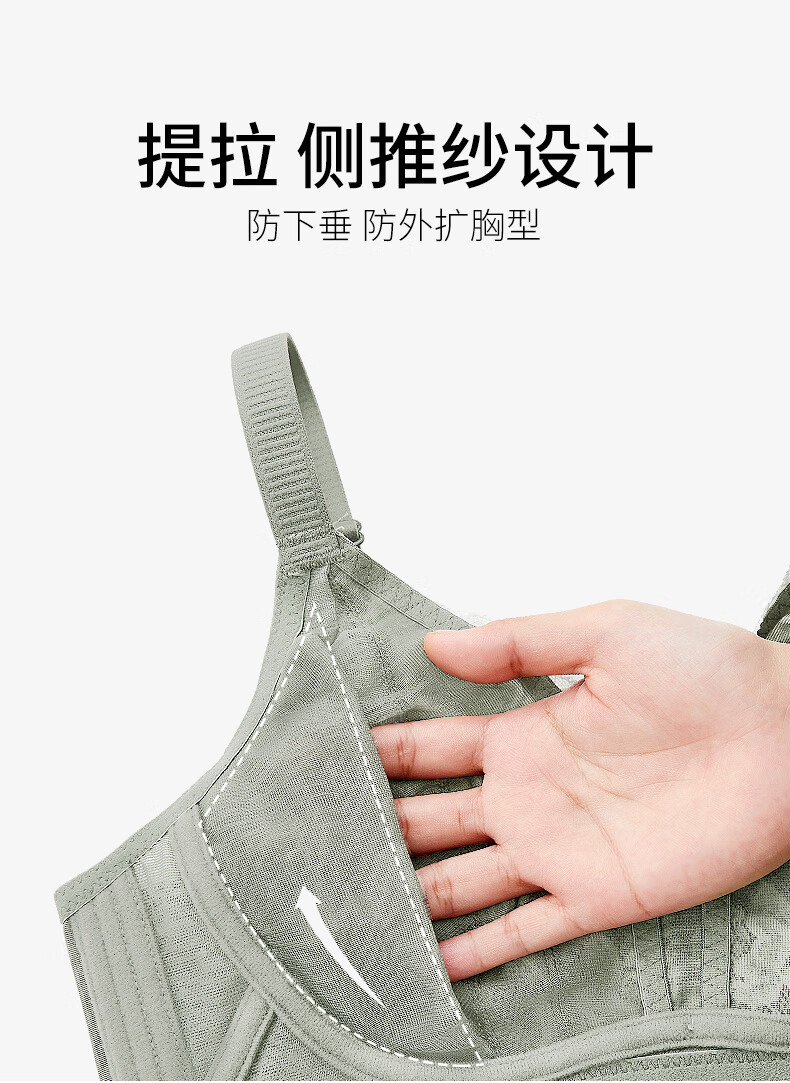 千奈美断码清仓无钢圈大胸显小内衣女薄款收副乳缩胸显瘦大码文胸罩 月光灰 85B