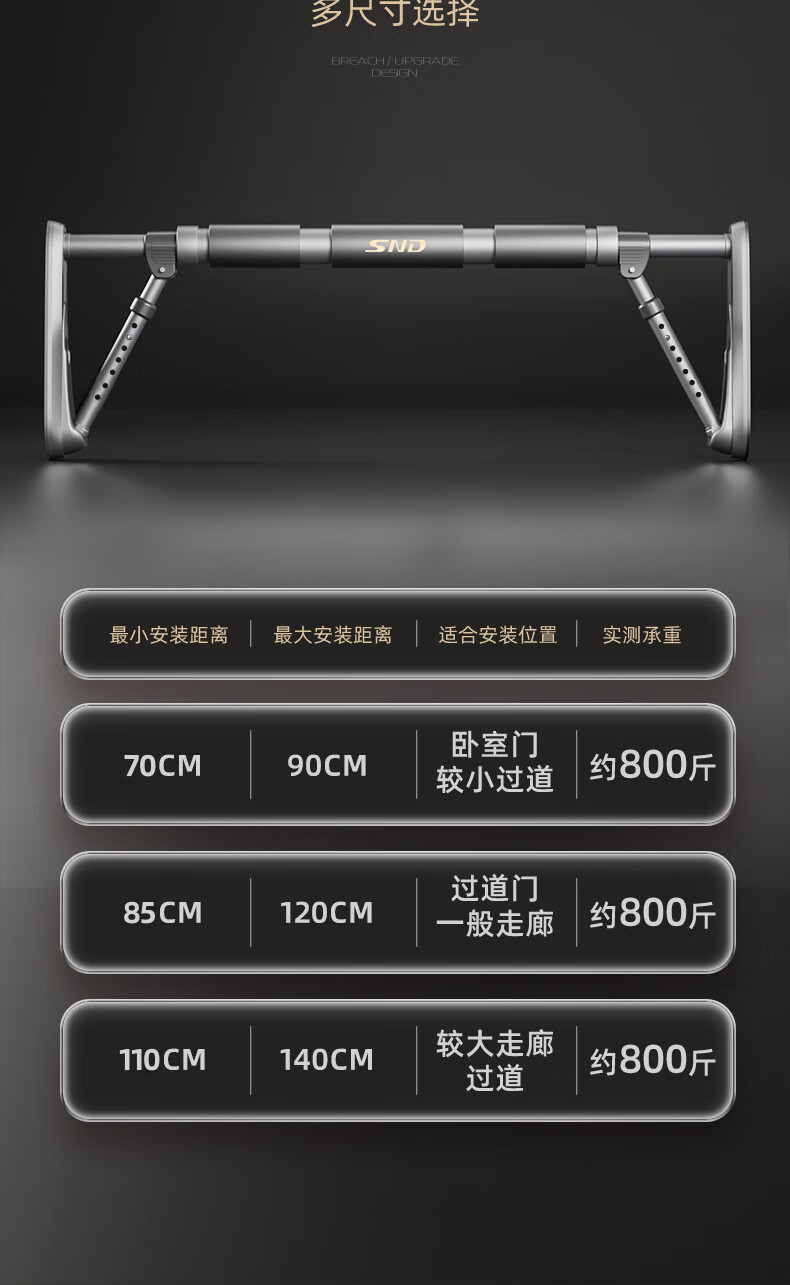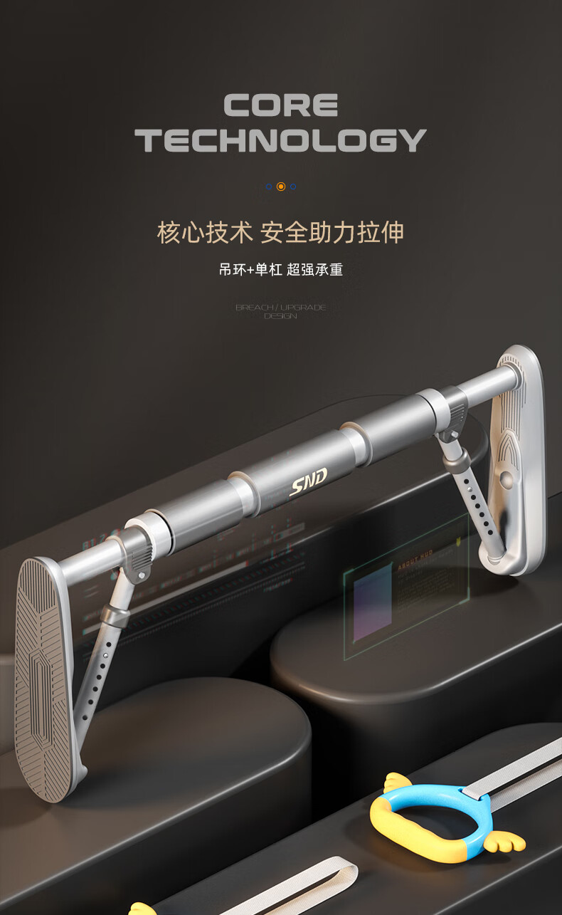 施耐德引体向上器家用单杠室内免打孔门上单杠健身器材带平衡仪 【单杠】安装距离85-110cm+吊环