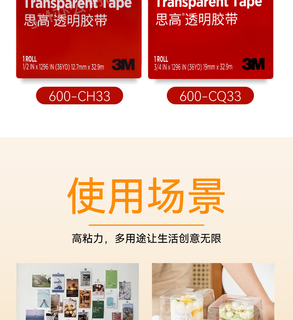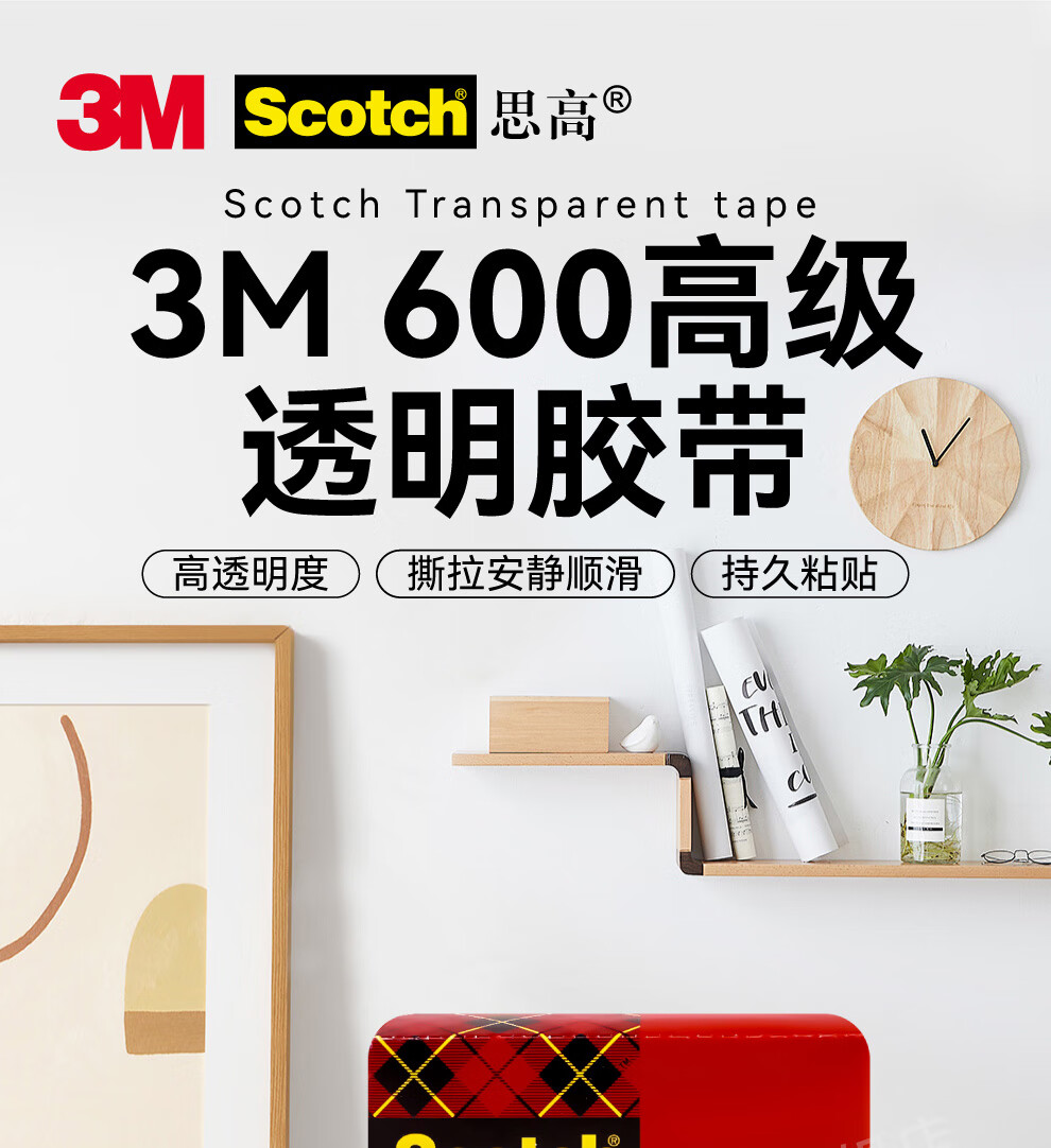 3M 思高 胶带 600高级透明胶带 办公用品 19mm×32.9m 600-CQ33